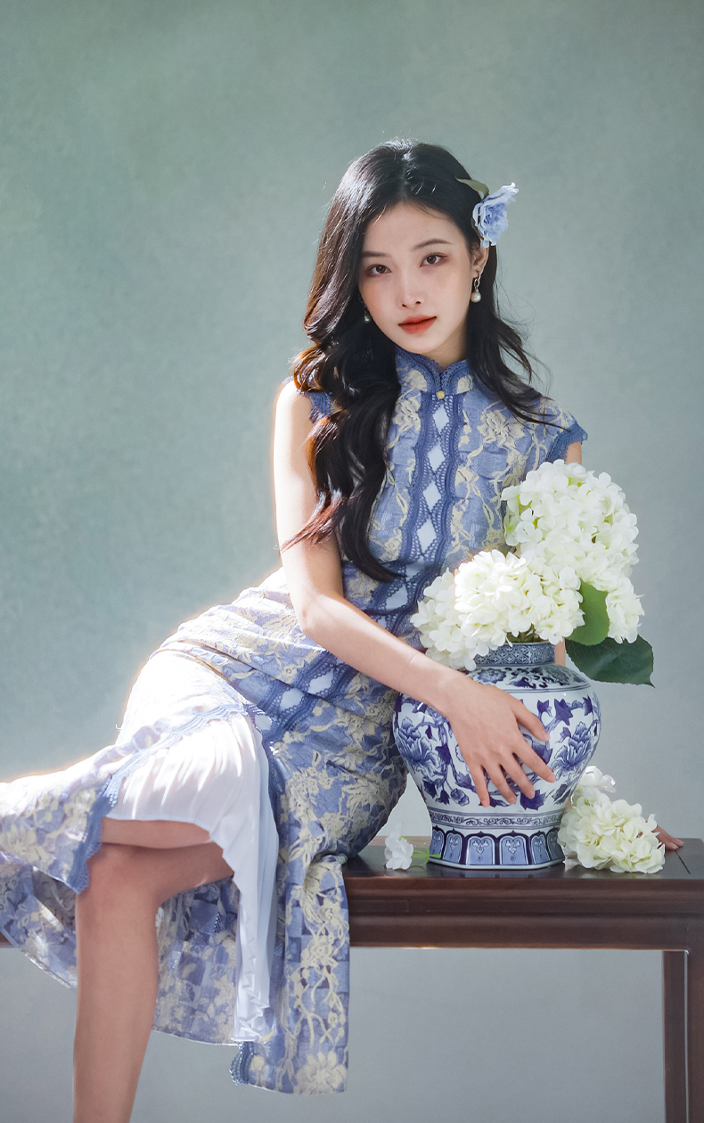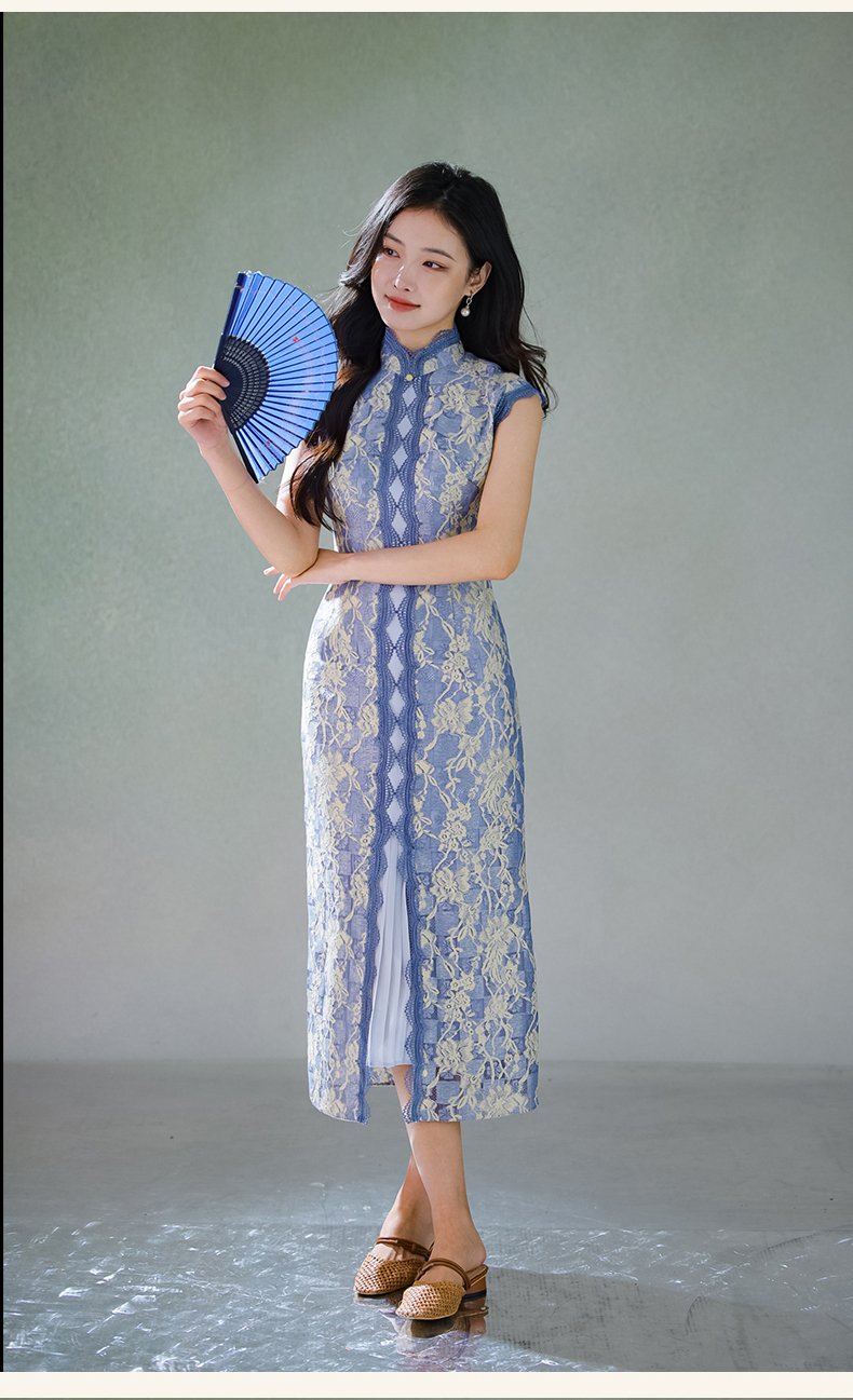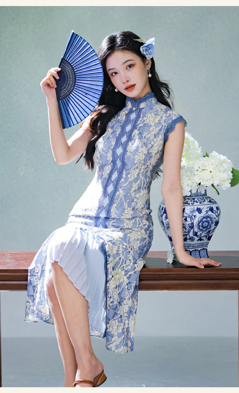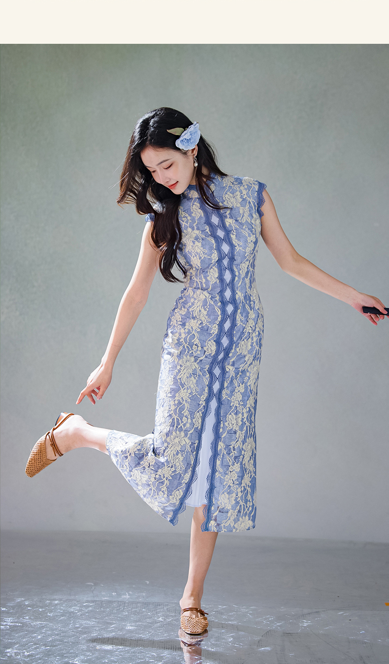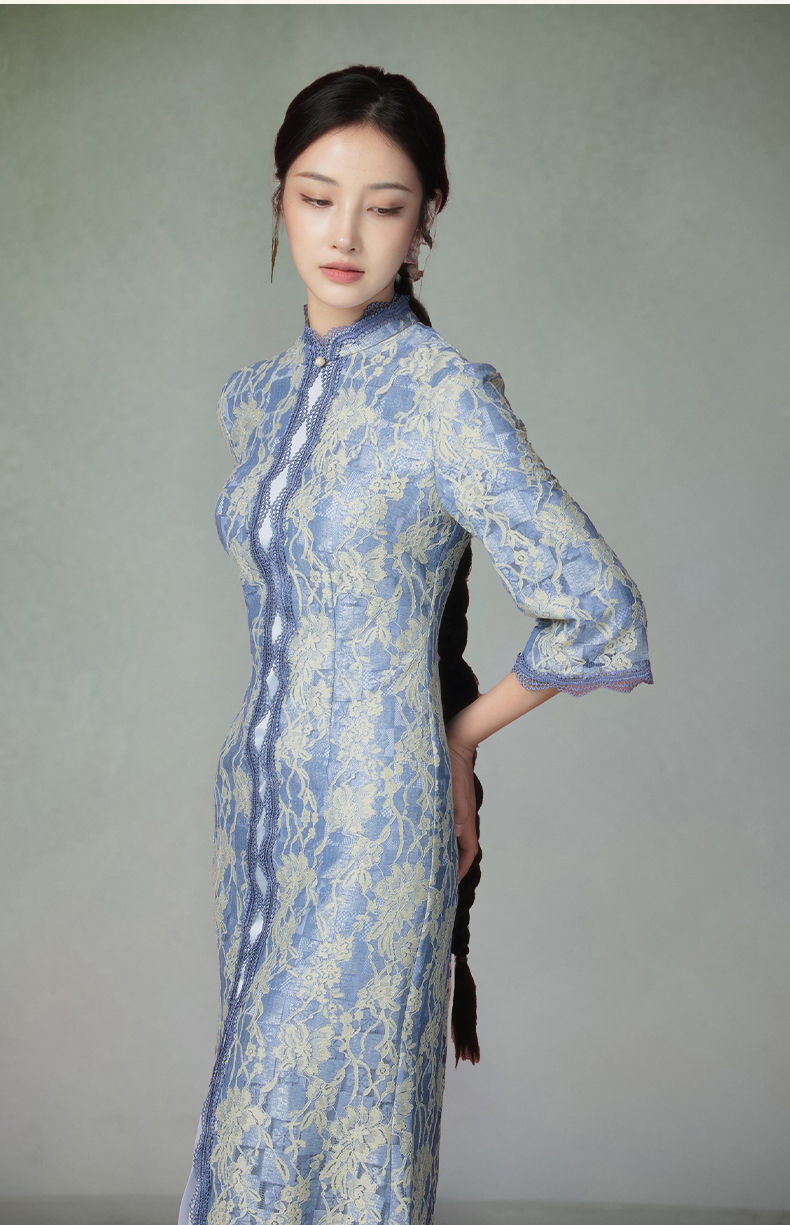 逸红颜蘅芷2025秋新款唯美浪漫宫廷复古蕾丝压褶改良鱼尾旗袍裙女