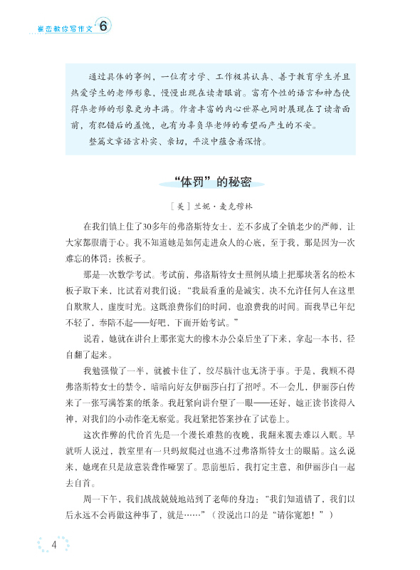 《崔峦教你写作文》内容丰富,贴近学生生活;训练点实用,设计科学,有梯度,成系统;选文经典,读写结合,指导性强。