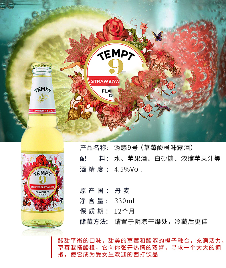 【保质期至2025.11.27】诱惑9号苹果味西打酒 330ml*1瓶