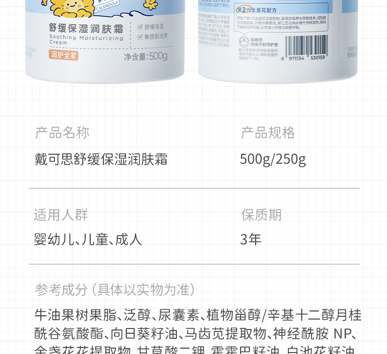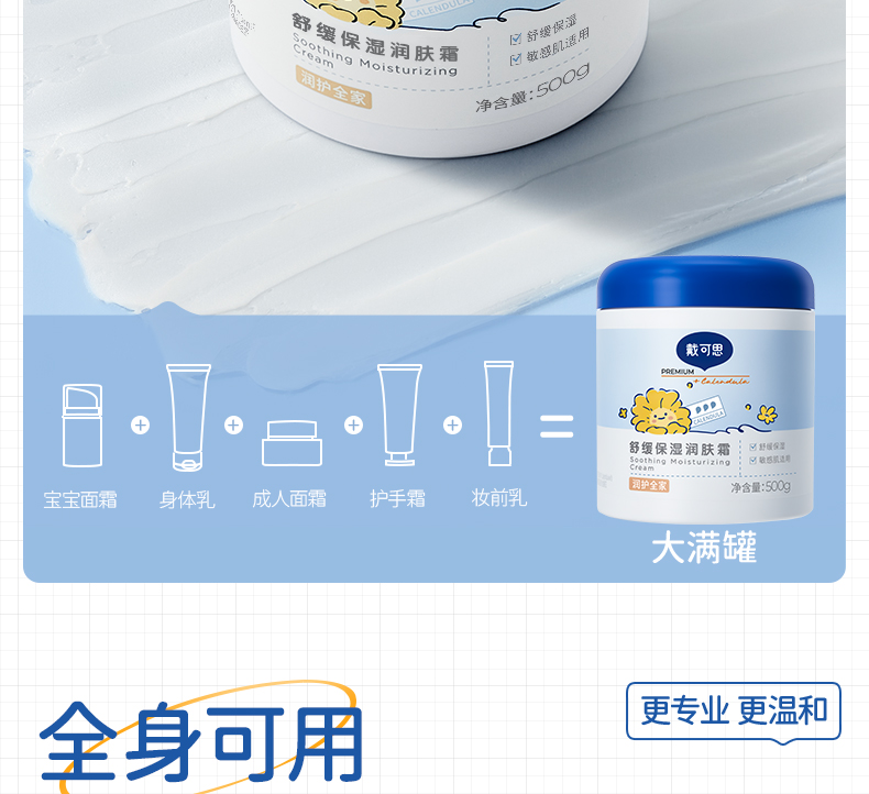 【新升级 500g加赠30g】戴可思舒缓保湿润肤霜大满贯霜