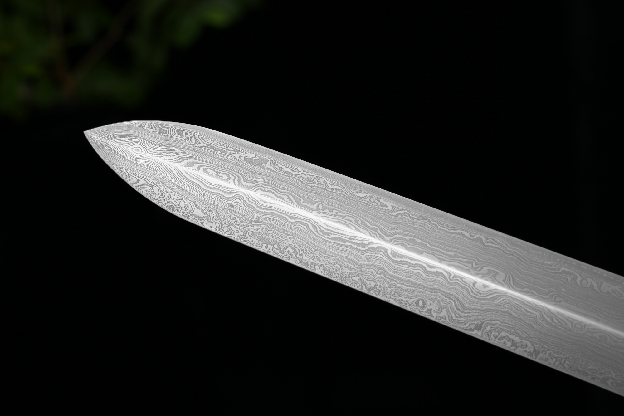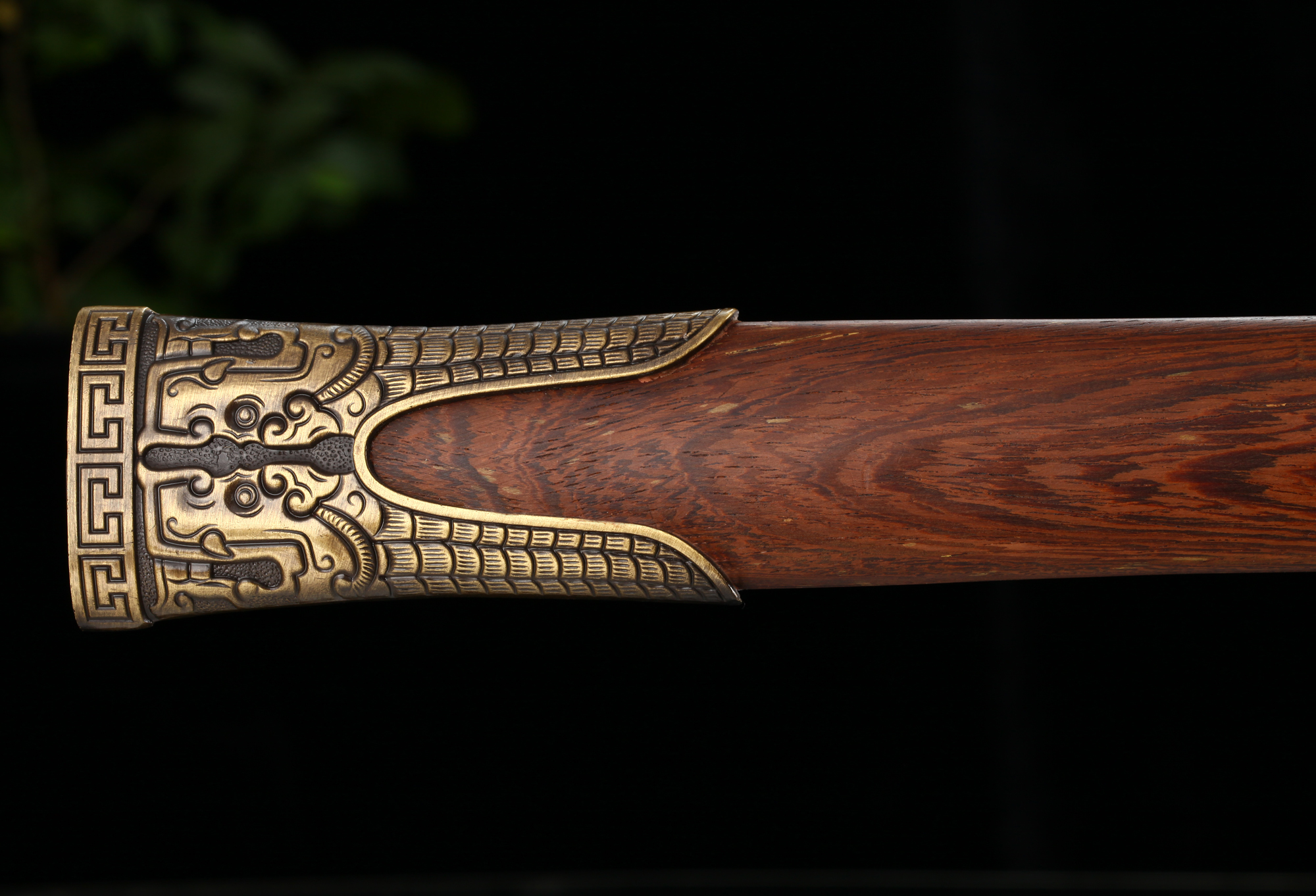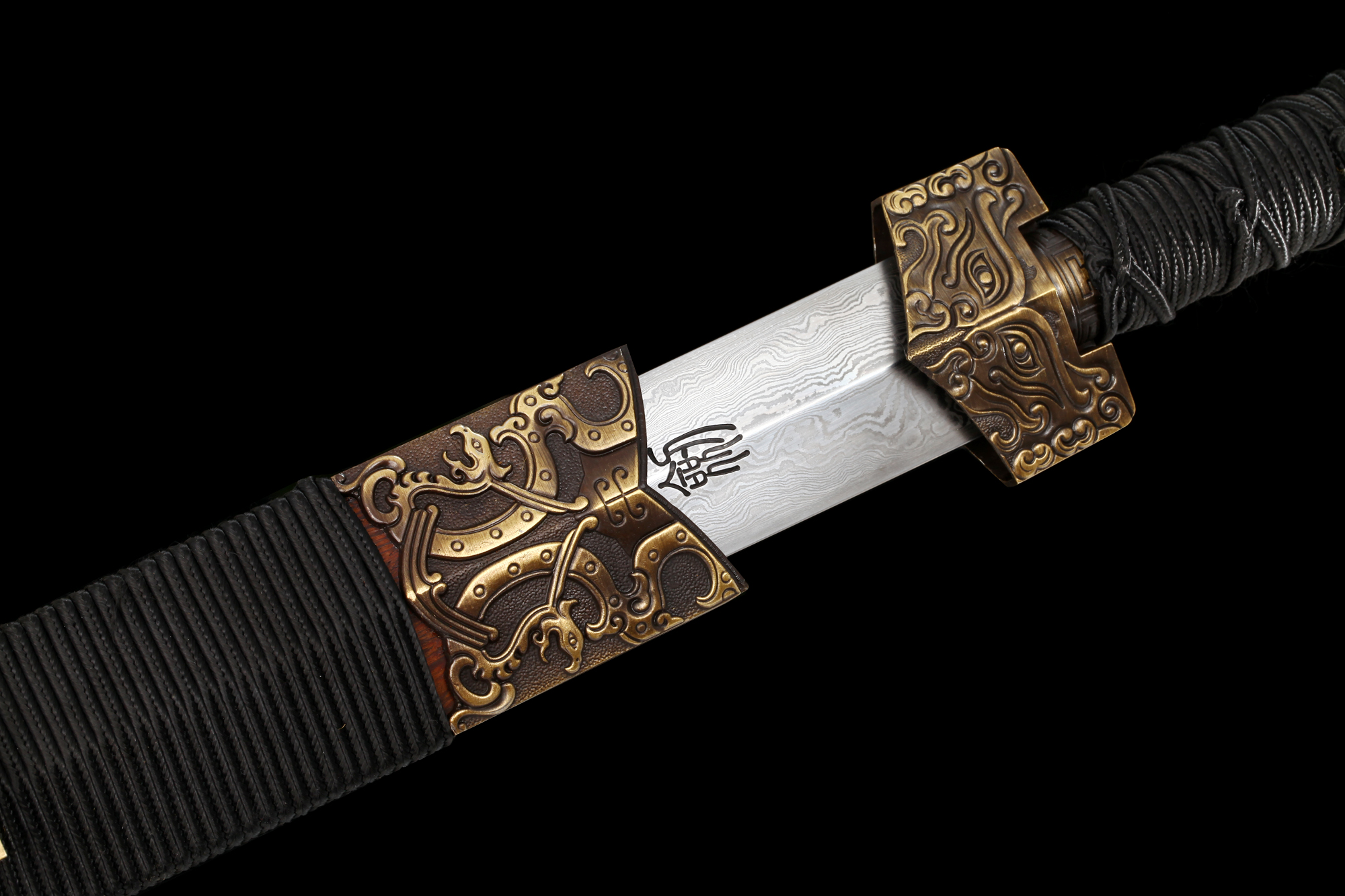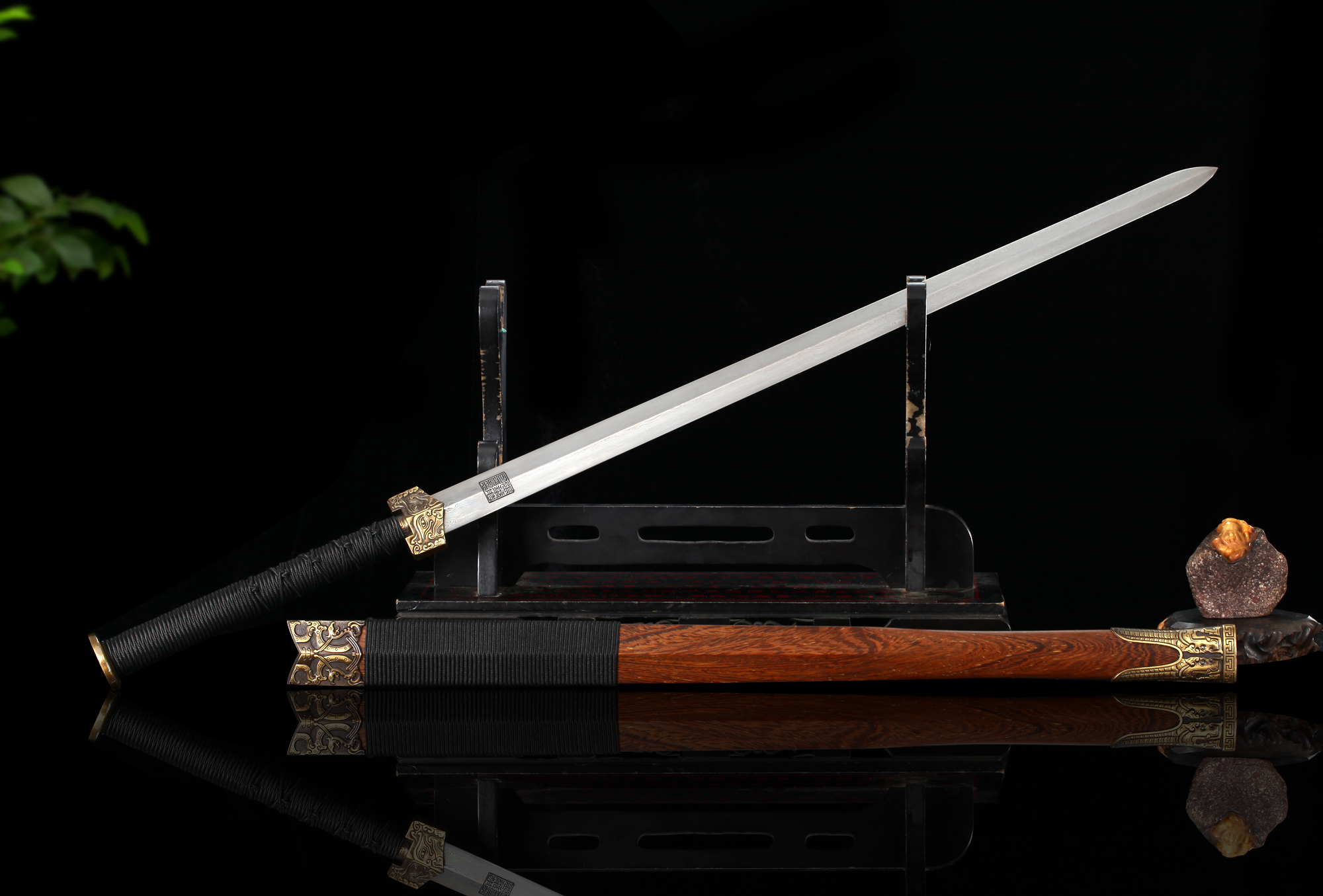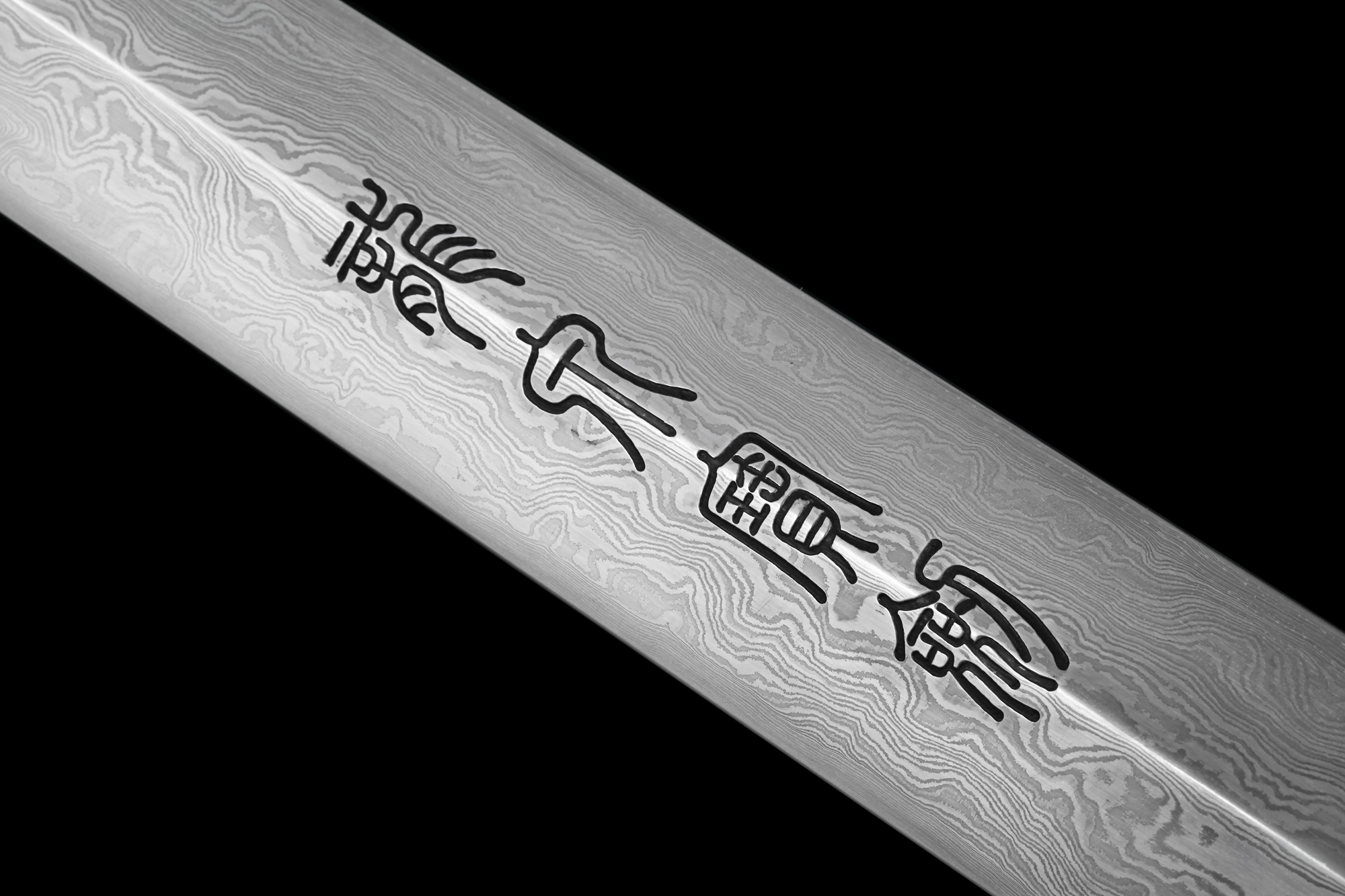 白虹唐刀 /唐剑 百炼折叠锻造花纹钢 覆土烧刃 精细研磨 黑檀木鞘 结实耐用 (未开刃)