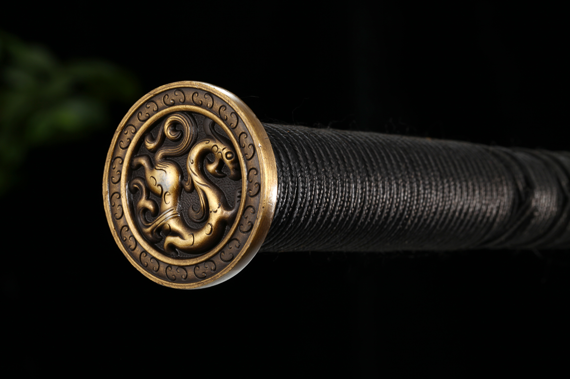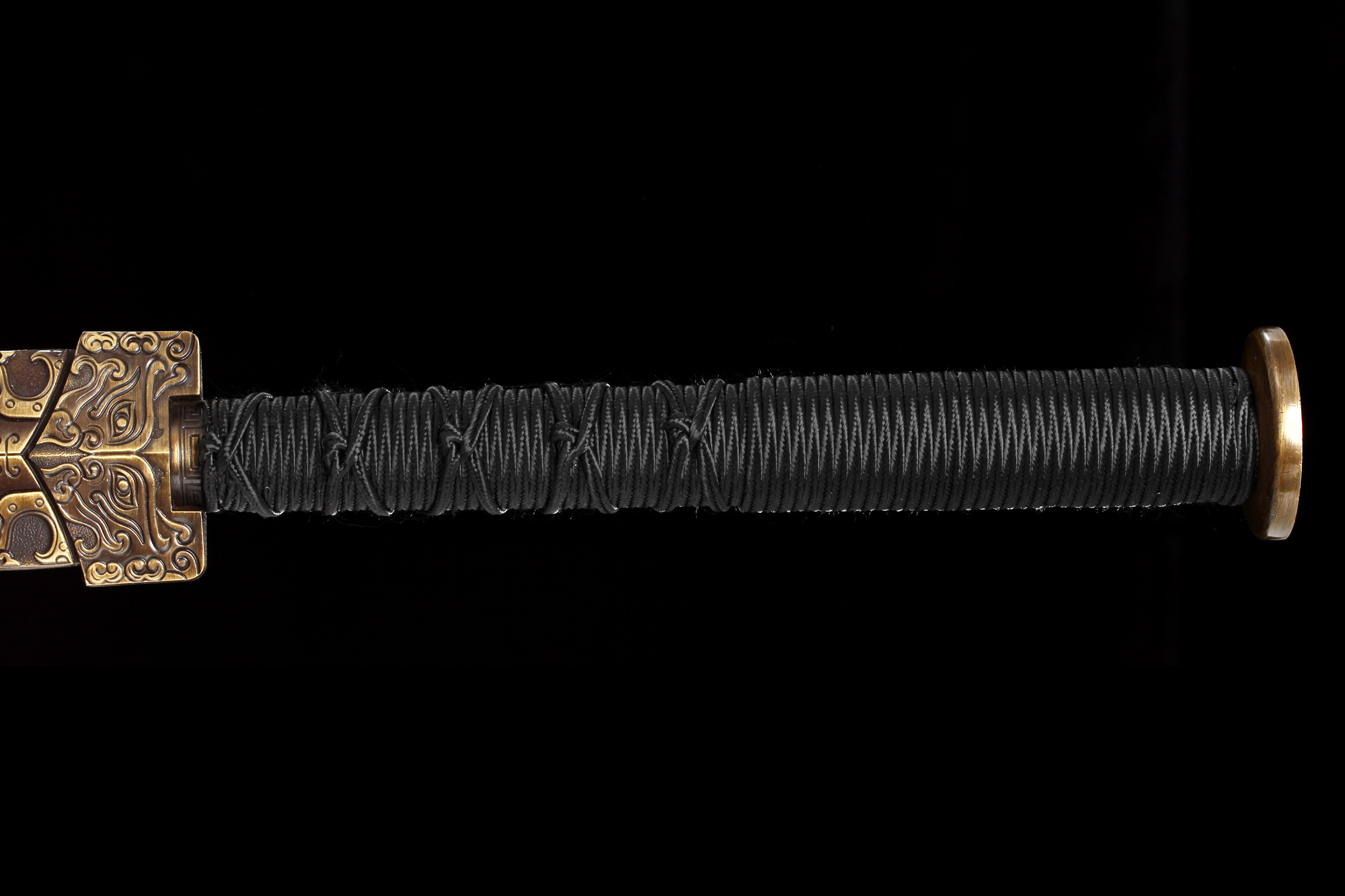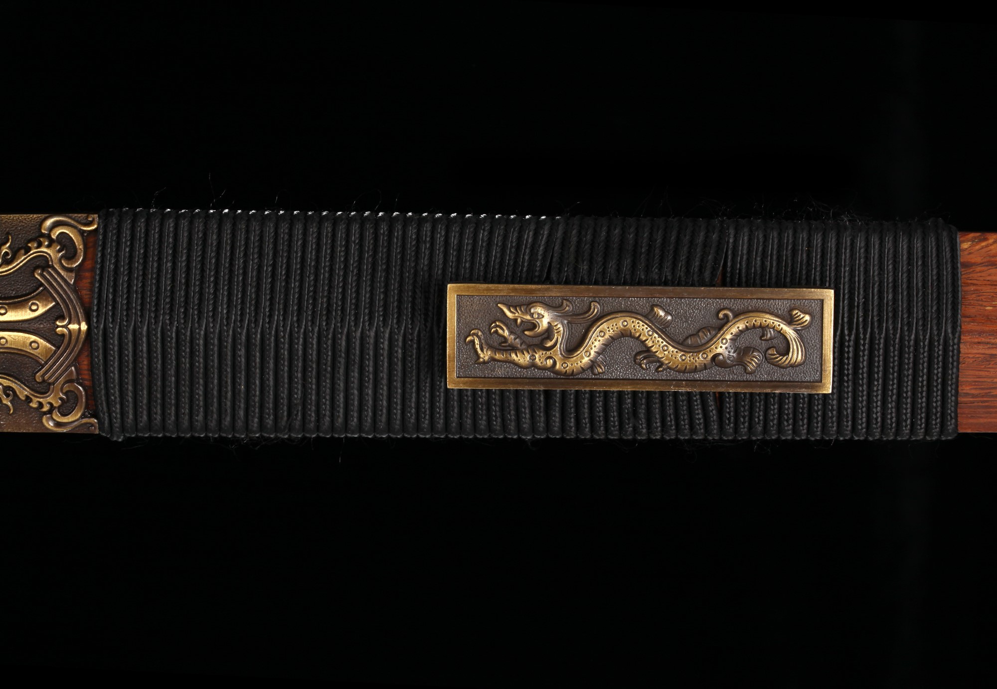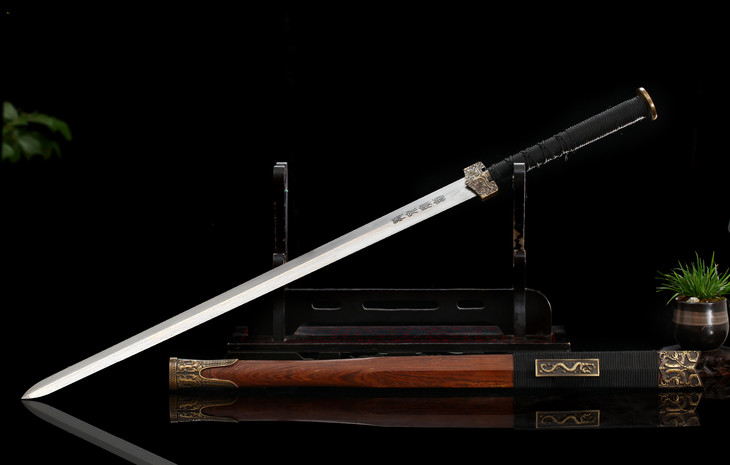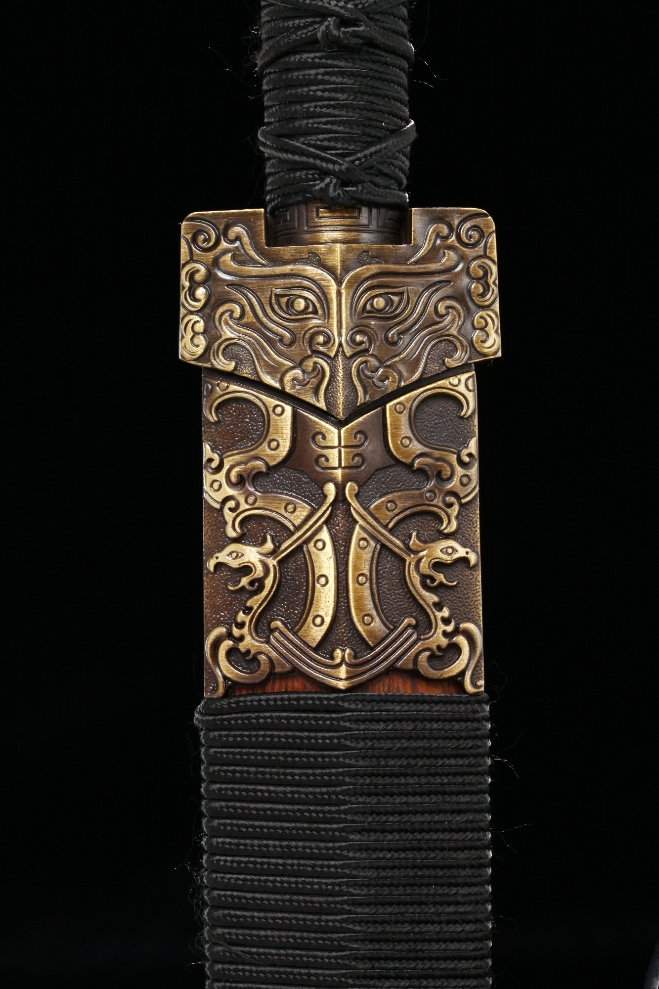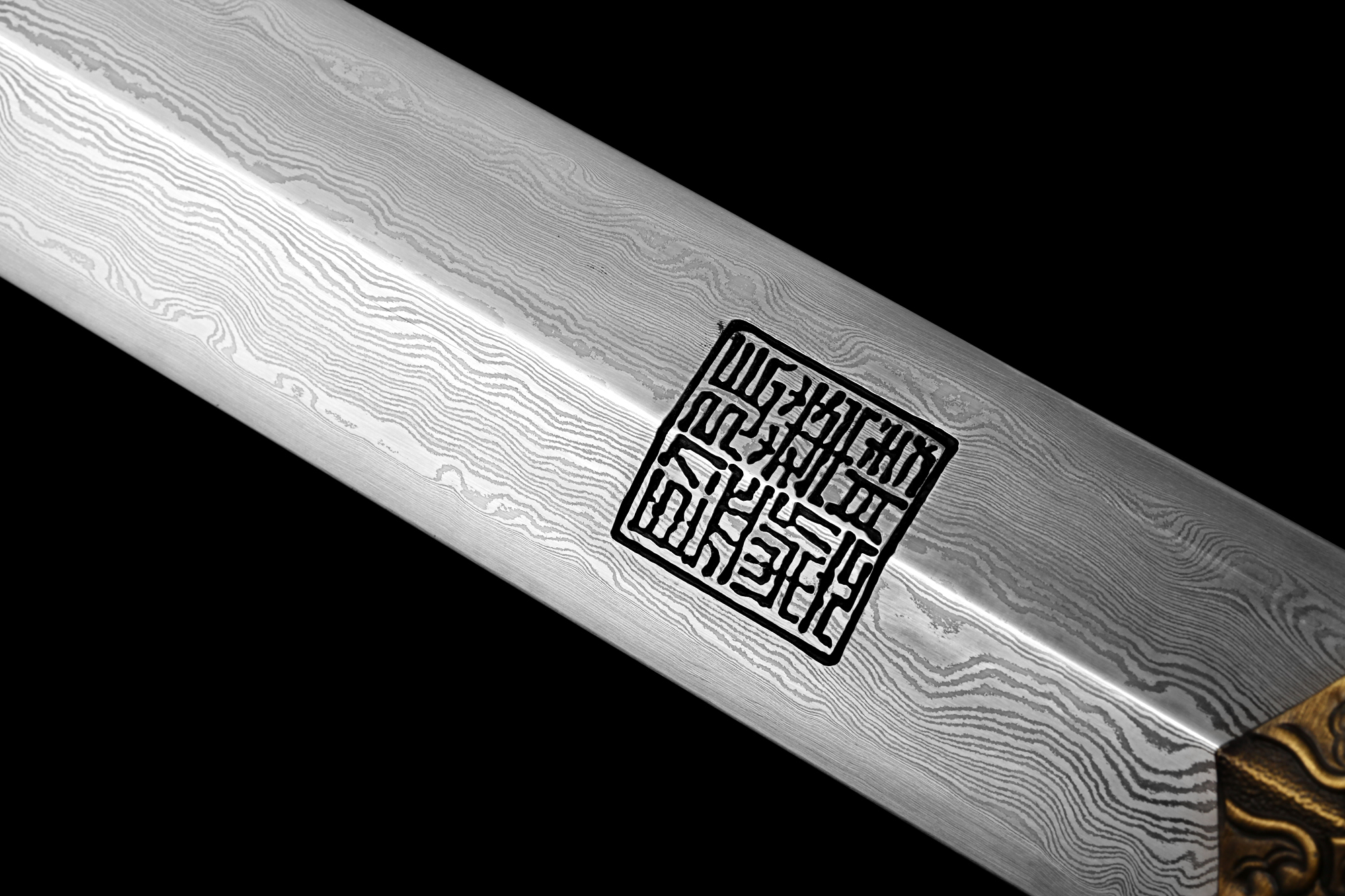 白虹唐刀 /唐剑 百炼折叠锻造花纹钢 覆土烧刃 精细研磨 黑檀木鞘 结实耐用 (未开刃)