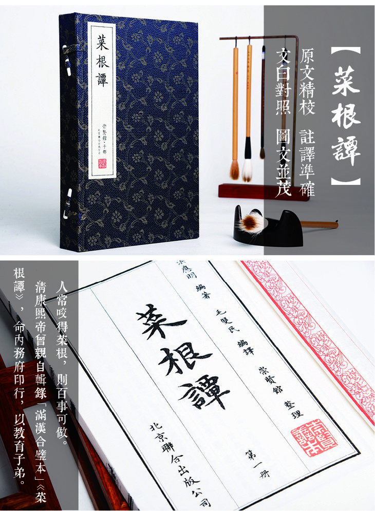 本书以上海图书馆藏明刻本为底本,参校其他善本。《菜根谭》是一部论述人生、修养、出世、出世的嘉言集,其思想融合儒释道。