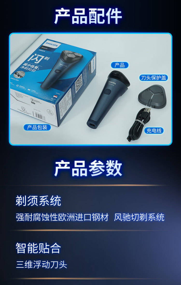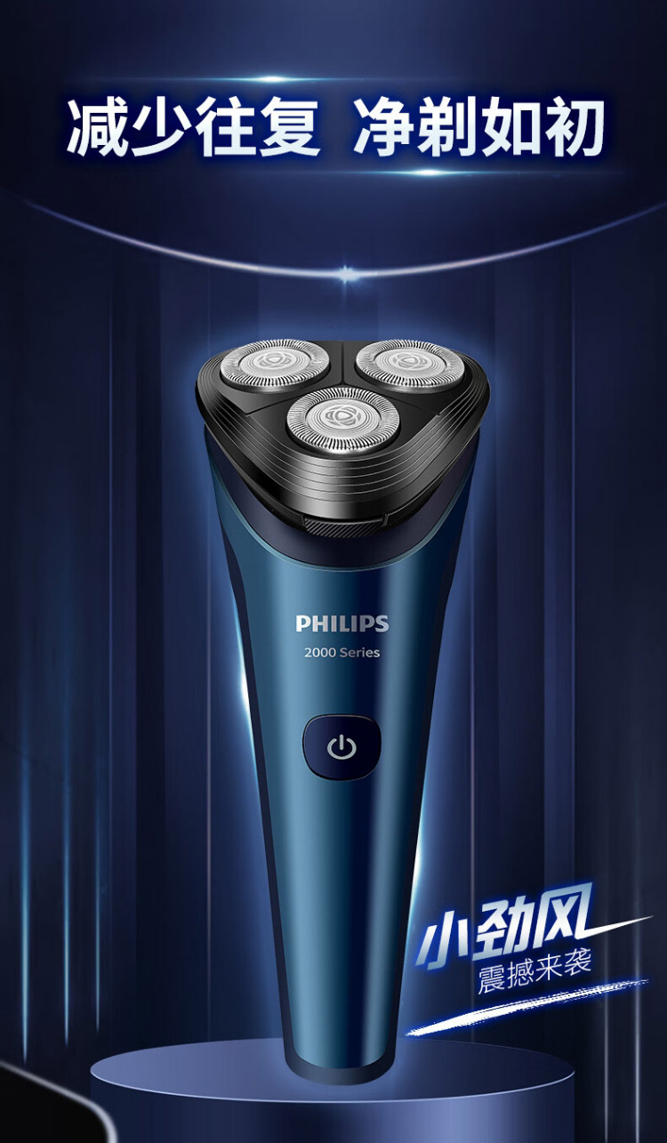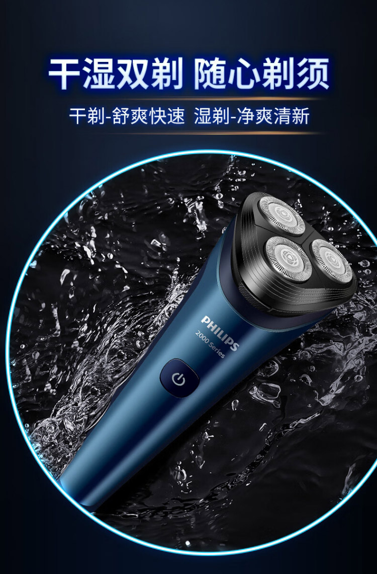 飞利浦PHILIPS剃须刀电动刮胡刀进口三刀头全身水洗1h快充50分钟续航闪剃男士礼物S2508