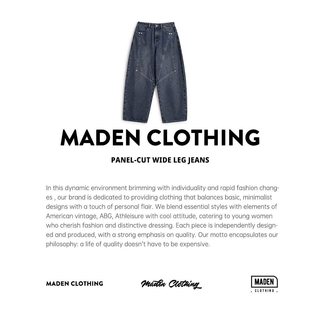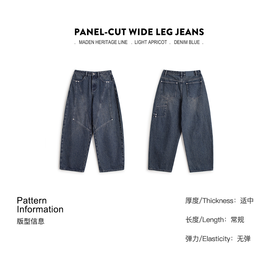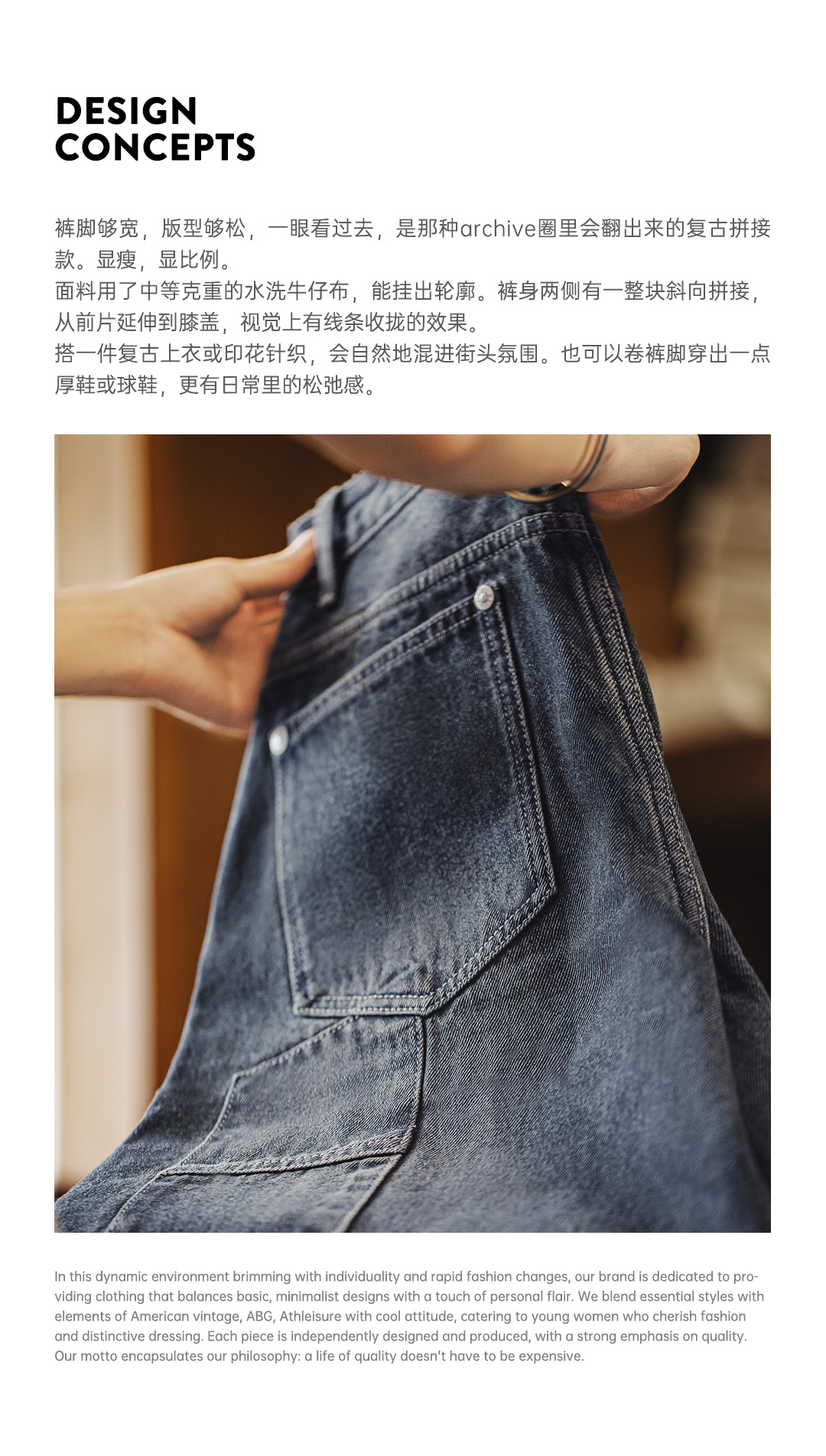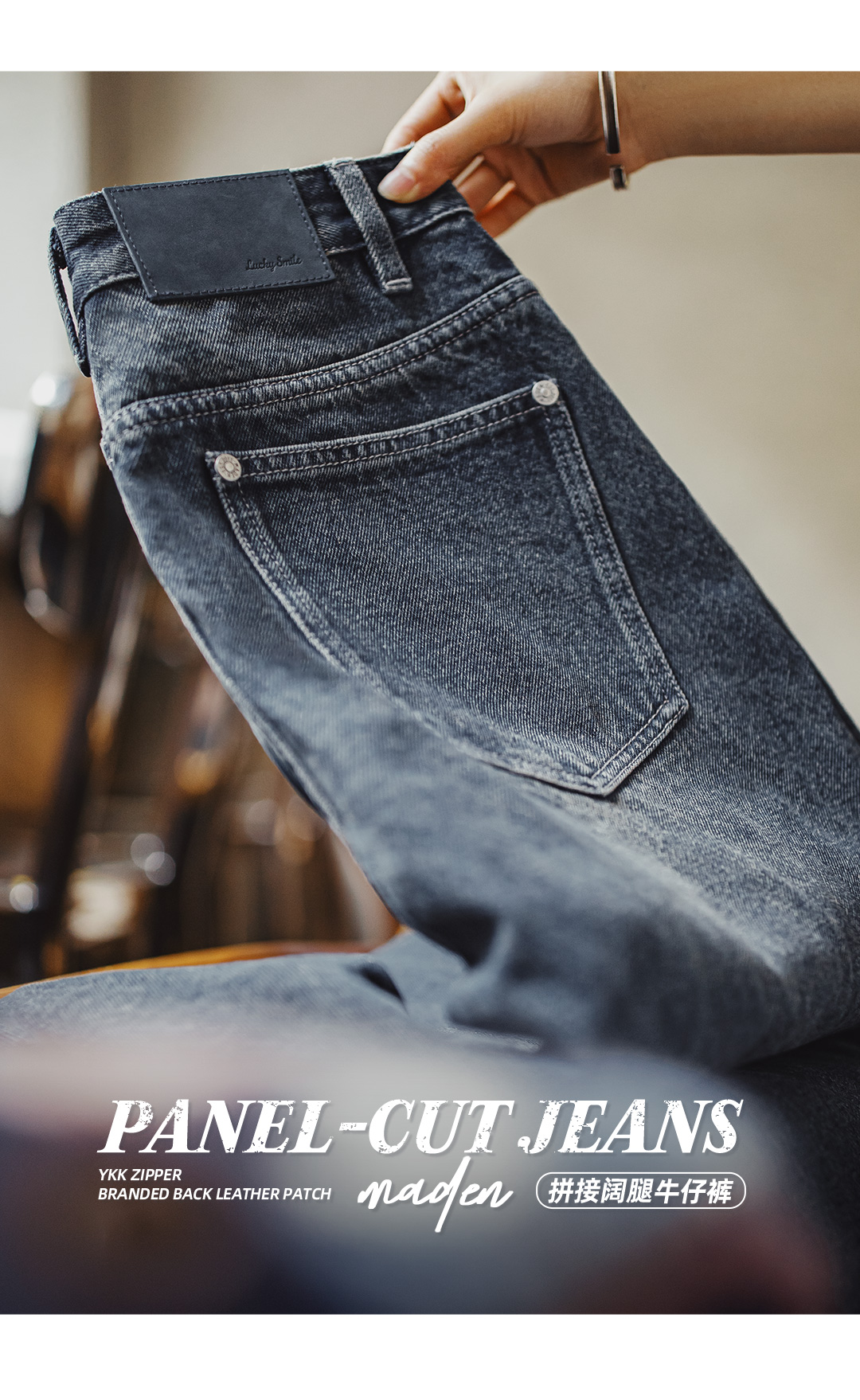 马登美式复古水洗拼接宽松阔腿显瘦香蕉镰弯刀工装牛仔裤子女士秋