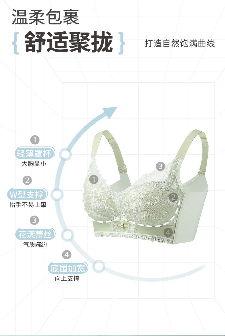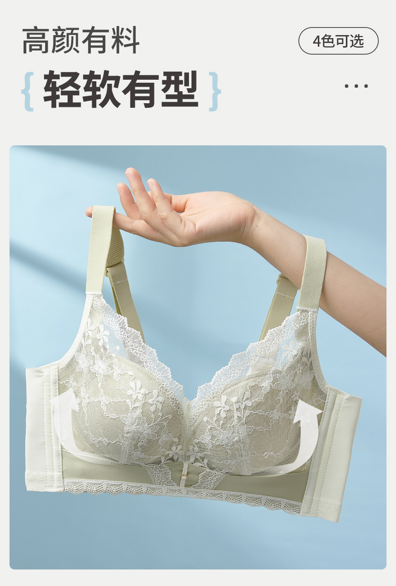 雅黛丽内衣女夏季薄款美背2024新款文胸收副乳防下垂调整型胸罩