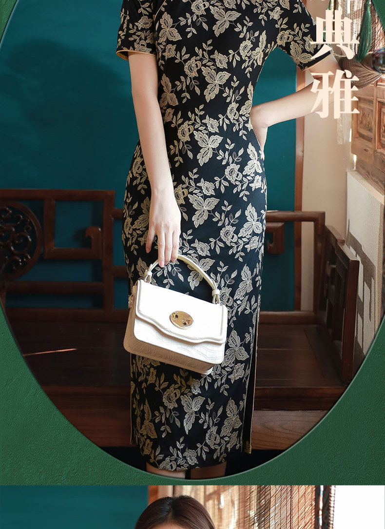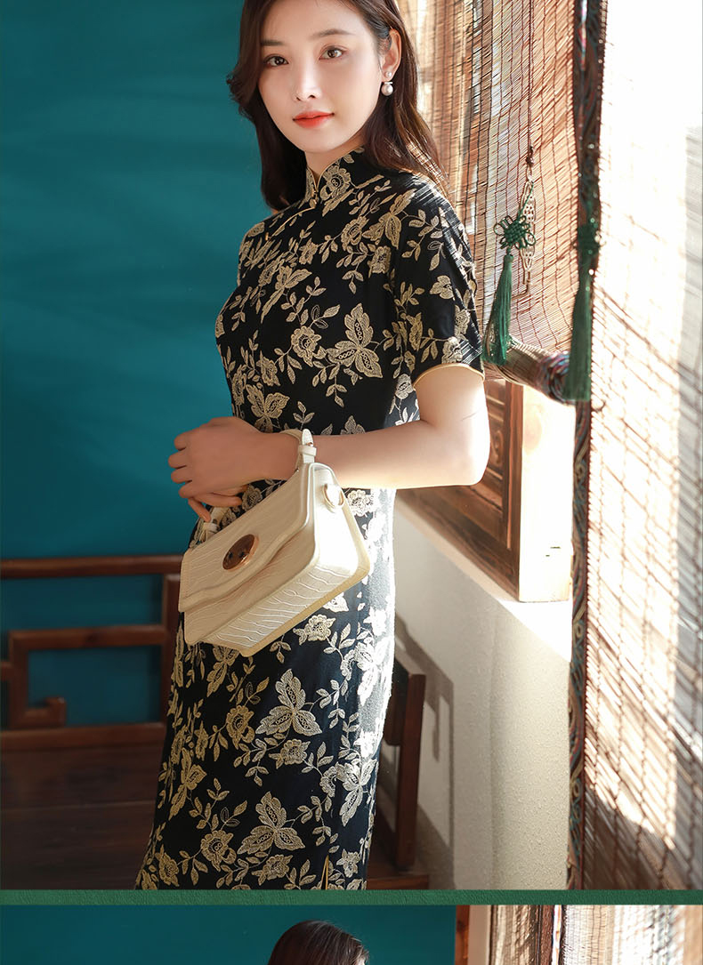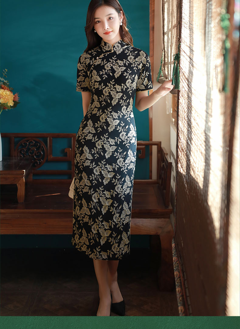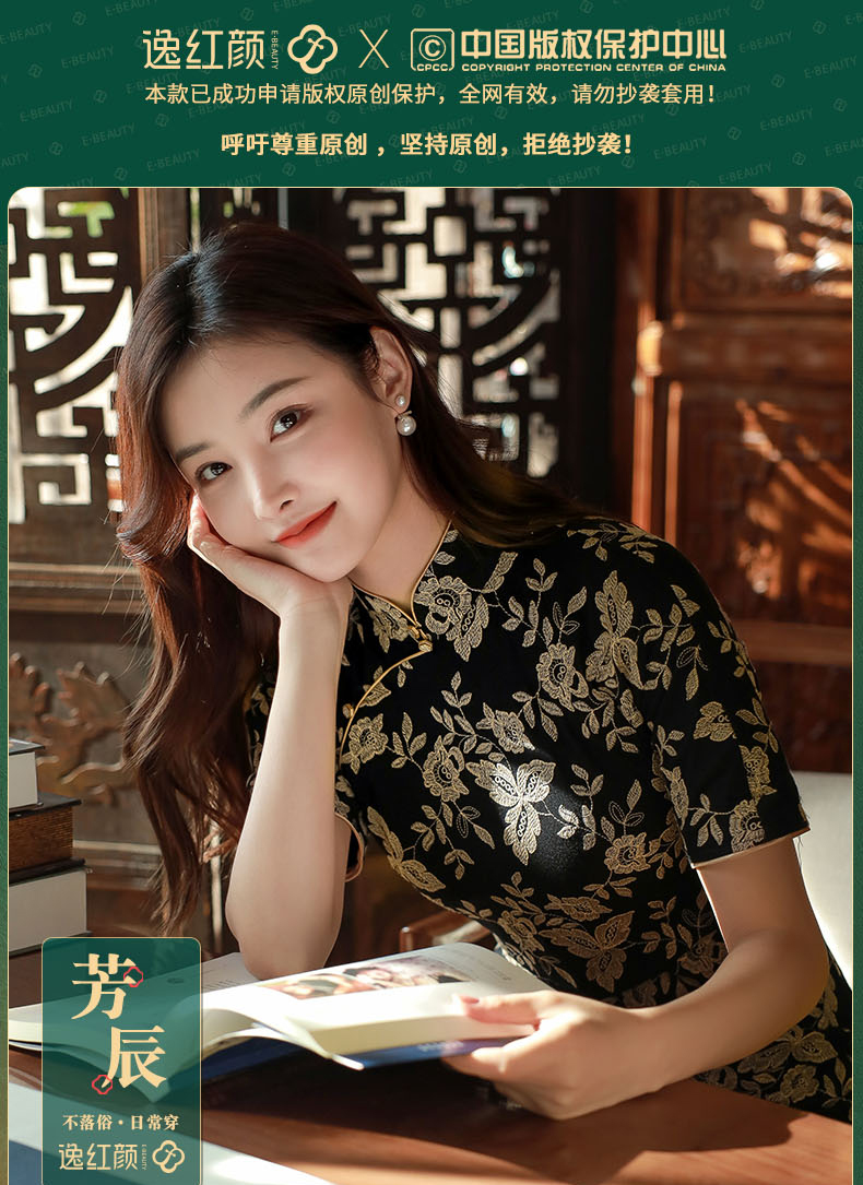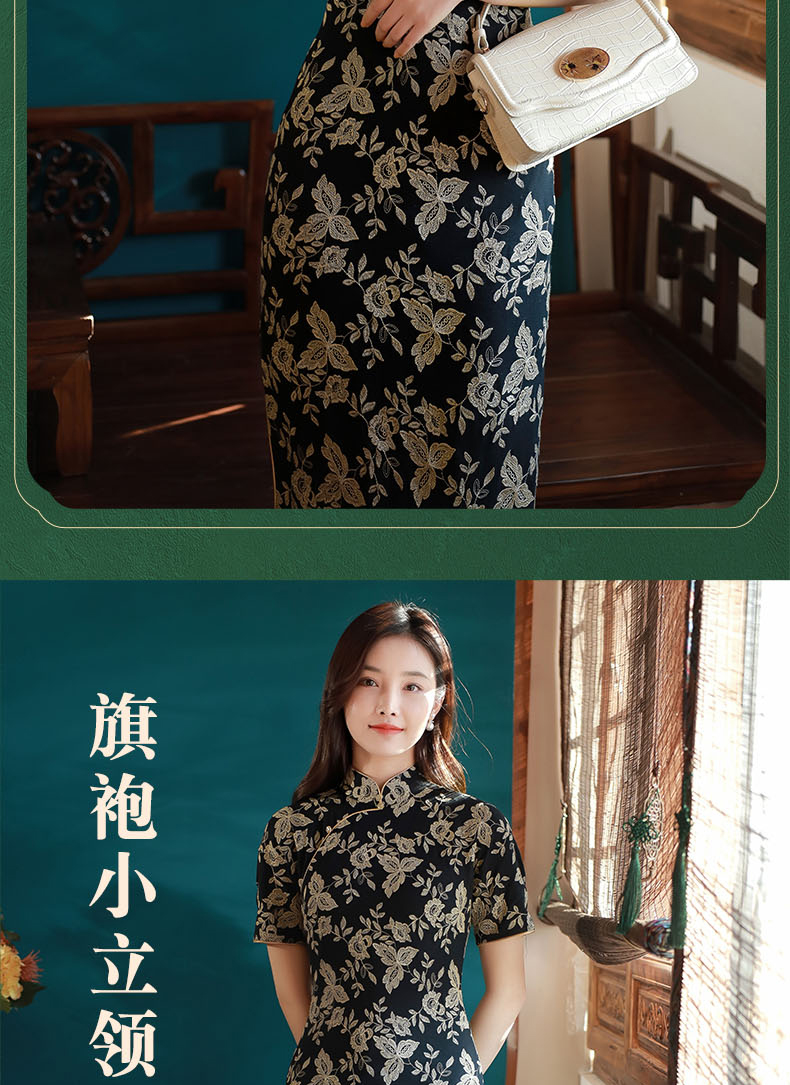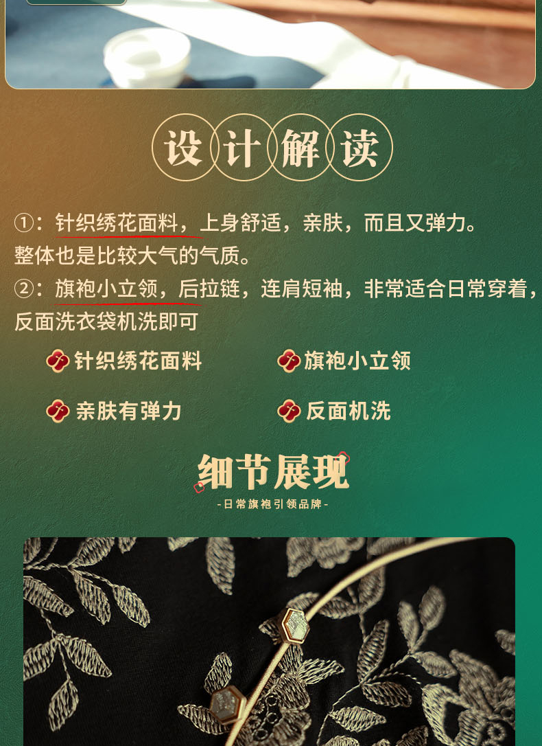 逸红颜针织旗袍女夏2022新款 芳辰 针织绣花复古修身气质立领女装