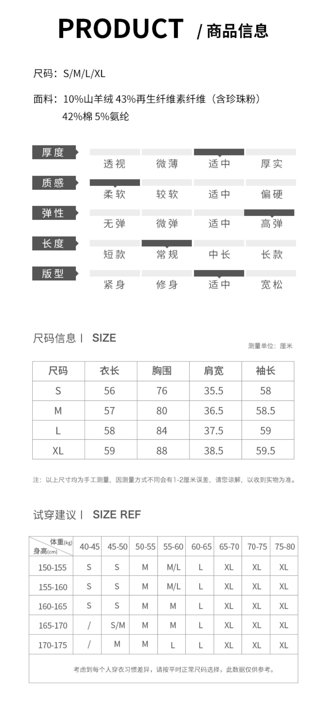 【SMASHADOW楔影珍珠山羊绒打底衫】打底界的“巅峰之作”钻石纤维--甄选10%白山羊绒(MaxMara同款奢侈面料),专利pearl cel珍珠纤维 滋养肌肤