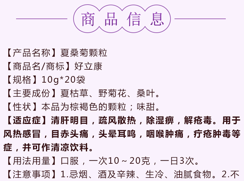 好立康 夏桑菊颗粒 10g*20袋/包 清肝明目 疏风散热 除湿痹解疮毒