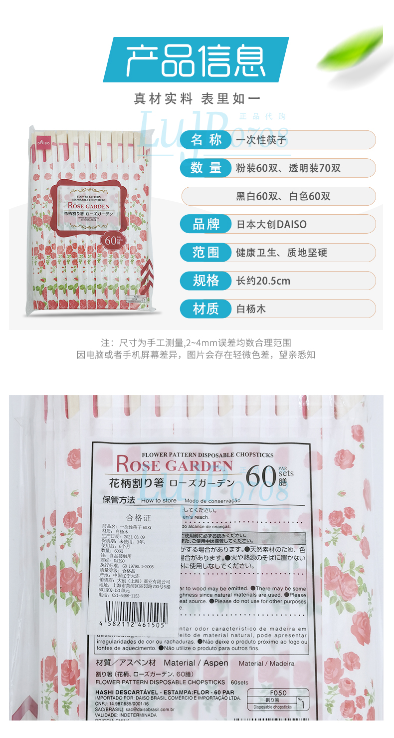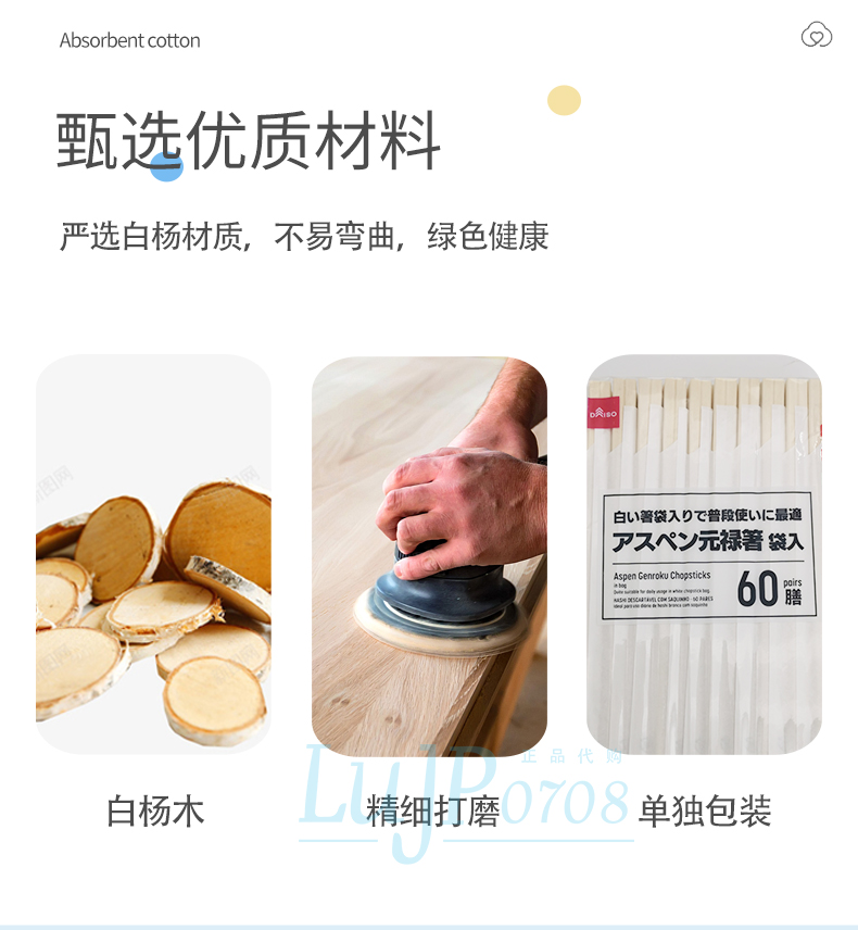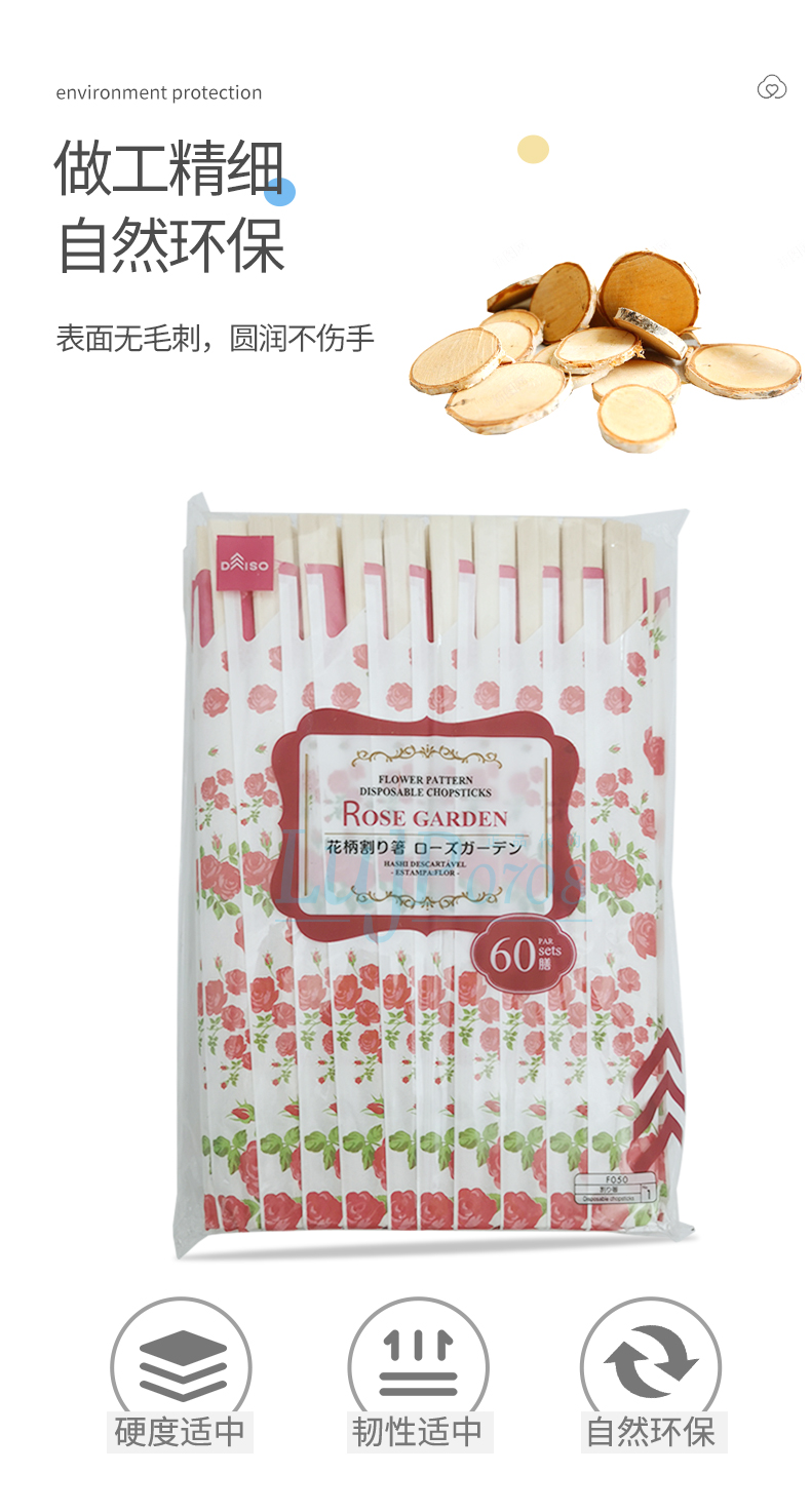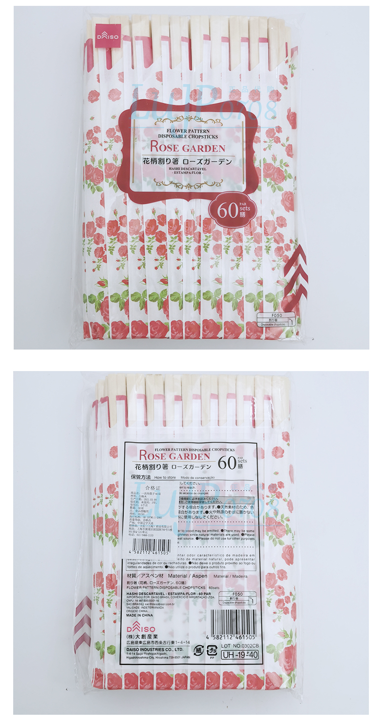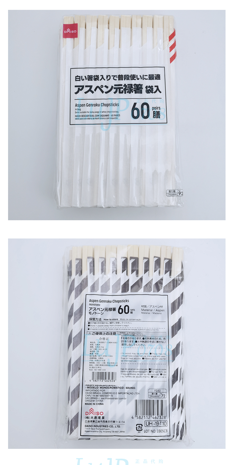 日本大创白杨木环保筷独立包装卫生筷灰白条纹60双/袋