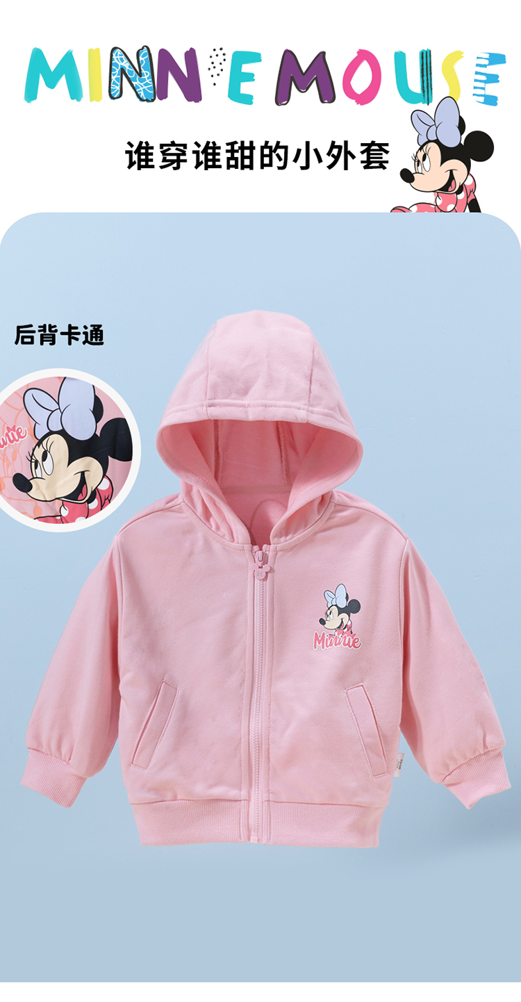 【商场同款】秋冬新款女童外套米妮印花上衣中大童百搭连帽开衫卫衣221DS0531