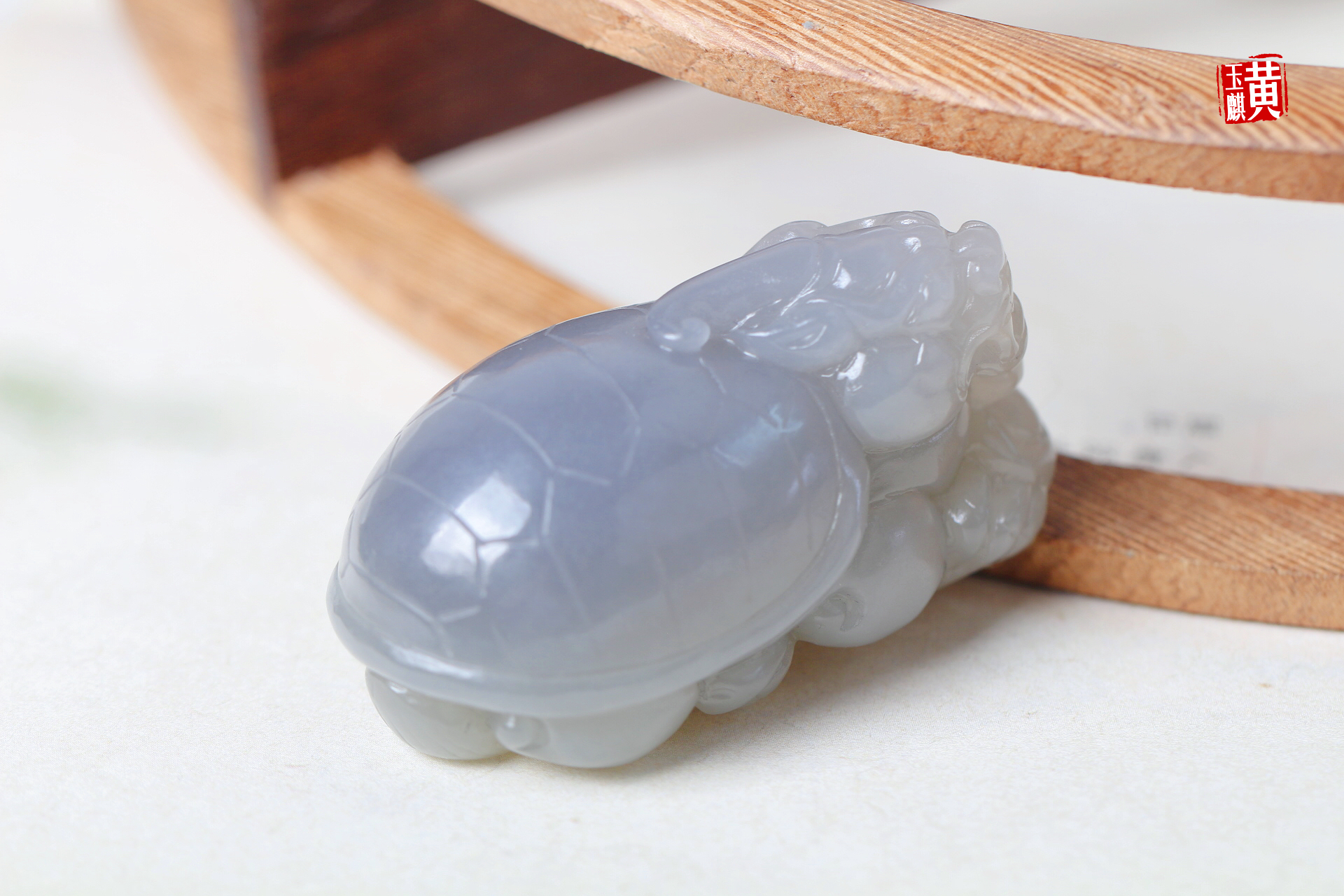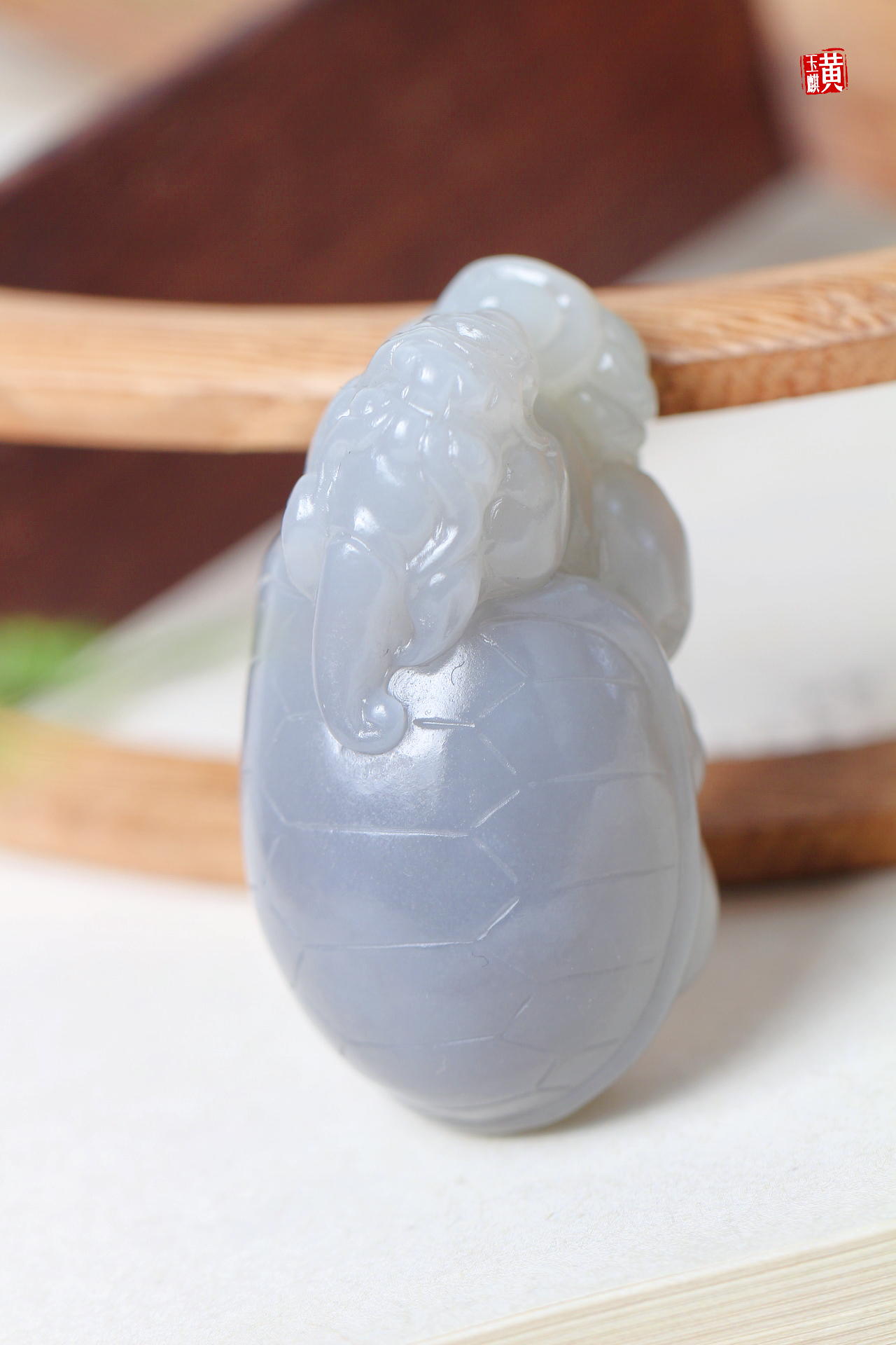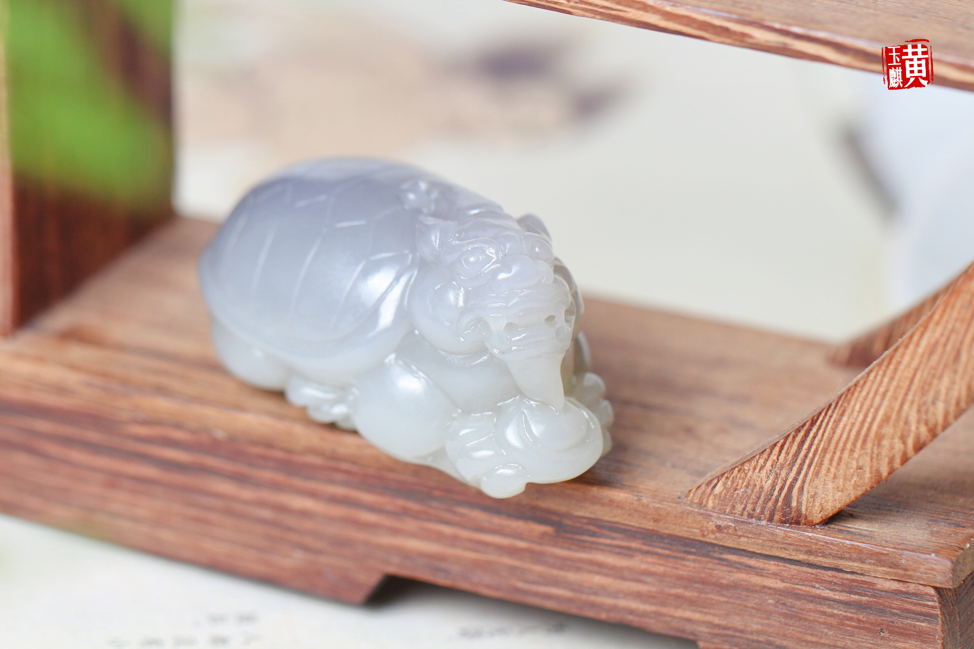和田烟紫玉财库龙龟,重121g,很大气的一尊龙龟, 玉质细腻油润,若烟若紫,深邃神秘,紫气东来,雕工精湛,龙龟主司财库,寓意财库充盈。