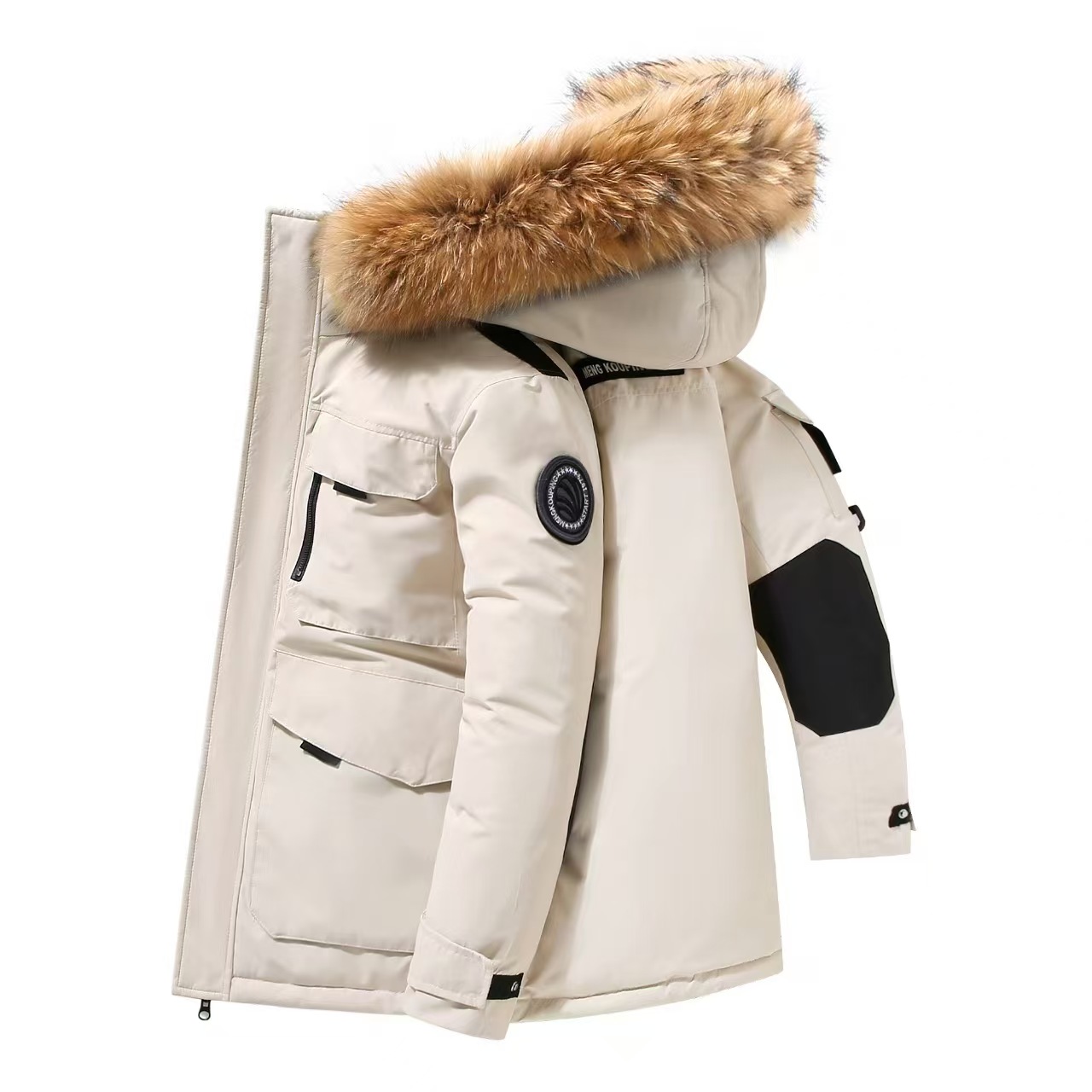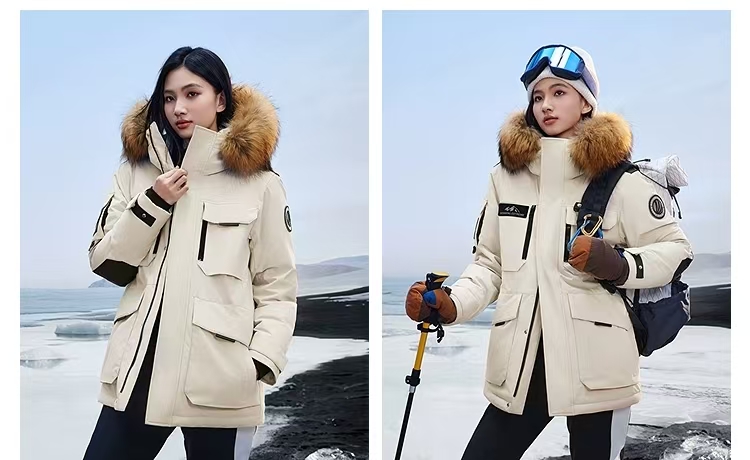 代工厂超大毛领+大朵朵鹅工装款,暖和还轻盈。一点不重不压身。在北方抗寒就要穿鹅绒。面料三防防污防水防刮~