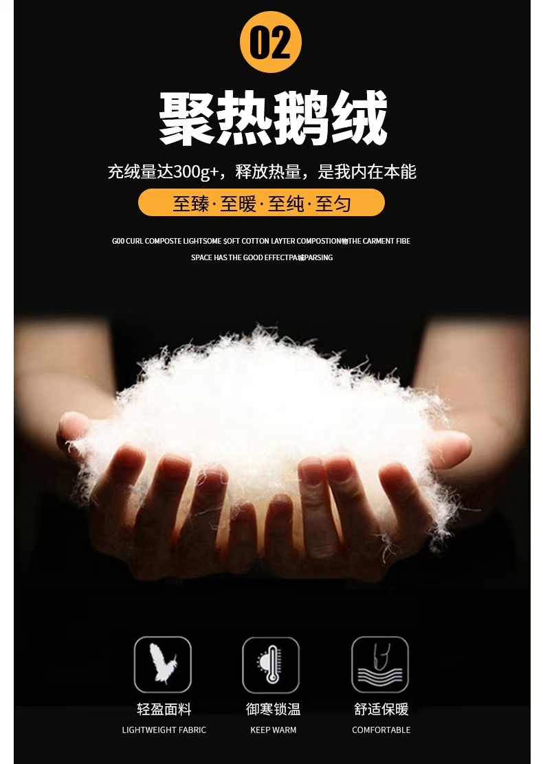 高品质的高密度梭织面料 防风抗冷!