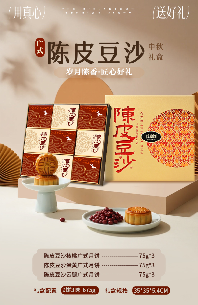 【陈皮豆沙】-温州桂新园品牌中秋伴手礼高档月饼礼盒