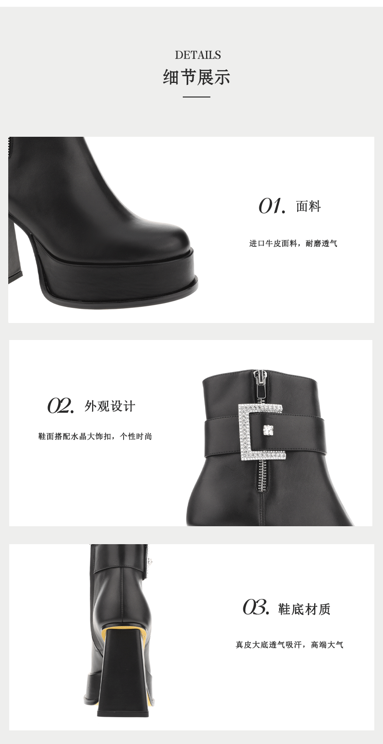 sheme新生系列进口牛皮水晶E扣个性时尚女士短靴可定制
