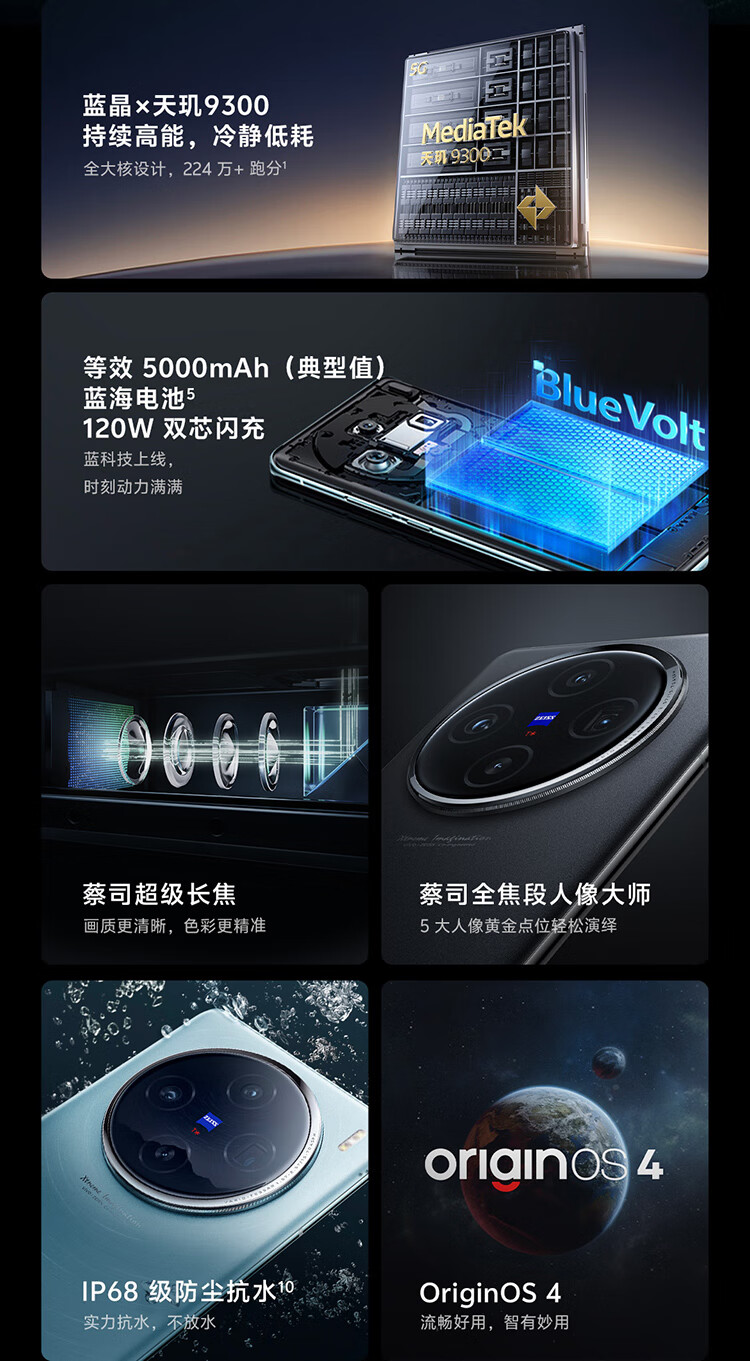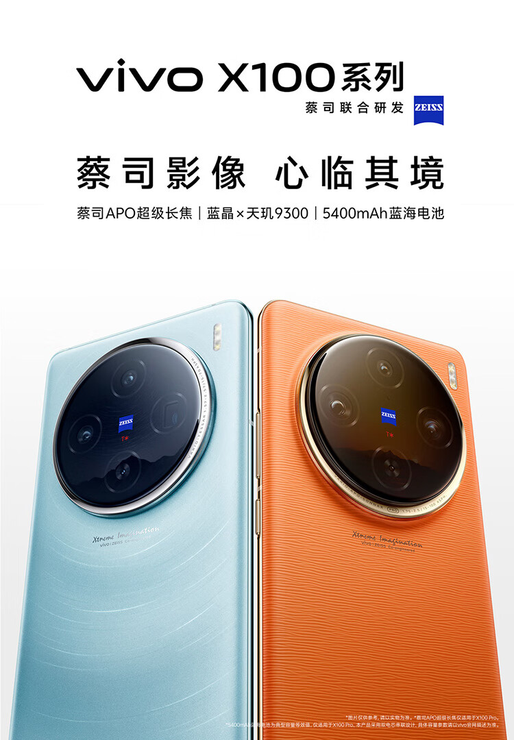 vivo X100 16GB+512GB 辰夜黑 蓝晶×天玑9300 5000mAh蓝海电池 蔡司超级长焦 120W双芯闪充 拍照 手机