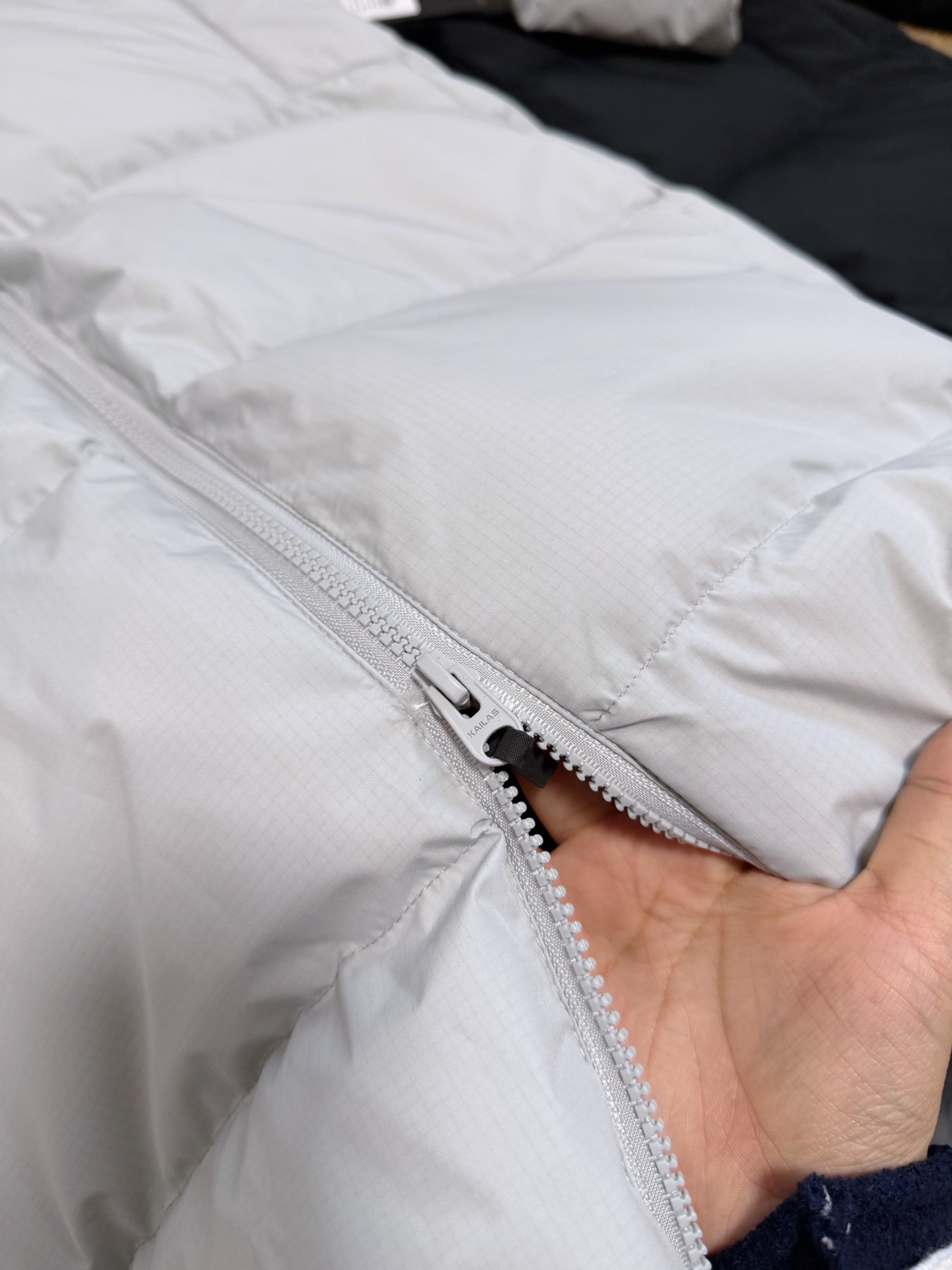⚠️原版钛肌泡仿生科技面料,轻盈透气防止钻绒!100%聚酯纤维高密度哑光布面,带有小格纹的肌理感,有韧性抗撕裂,致密防风!但又舒服不压身,也没有拘束感~泼水不易沾湿,冬天遇上雨雪天气也能抵挡,好打理。里料100%锦纶,布料超轻薄,细腻丝滑有光泽,降低摩擦,不粘毛,防钻绒;凯le石情侣同款中性长款羽绒服
