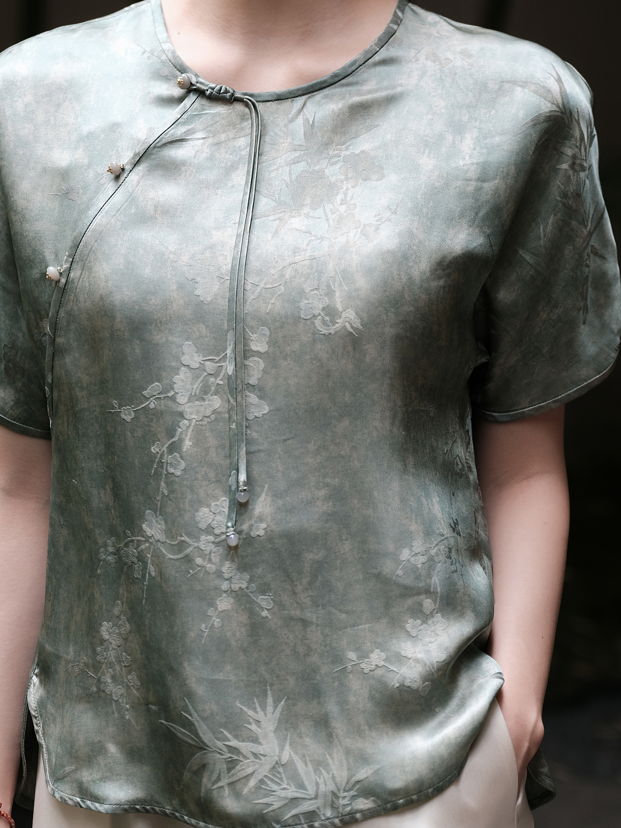 盛唐婧| 新中式真丝炒色斜襟领上衣