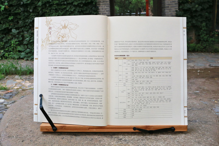 康晓静、赵世伟编著的《梦里仙葩尘世芳华<红楼梦>植物大观》对《红楼梦》中植物的研究借鉴了民族植物学的分类方法——以研究人与植物相互作用关系为重点,探讨人类对植物的利用途径和情感寄托。根据人们对植物利用的不同层面以及植物在小说中出现的用途、所归属的文化现象,将小说中出现的植物分为“现实生活中的植物”“民俗信仰中的植物”“诗词歌赋中的植物”和“描摹修辞中的植物”四大类别,其下再细分若干类别,便于我们全面了解《红楼梦》中的植物。