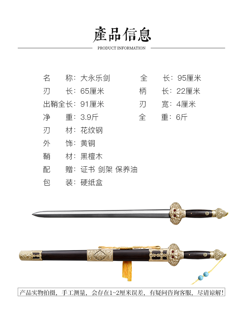 大永乐剑 花纹钢宝剑 清式宝剑 龙泉沈广隆一体宝剑 未开刃