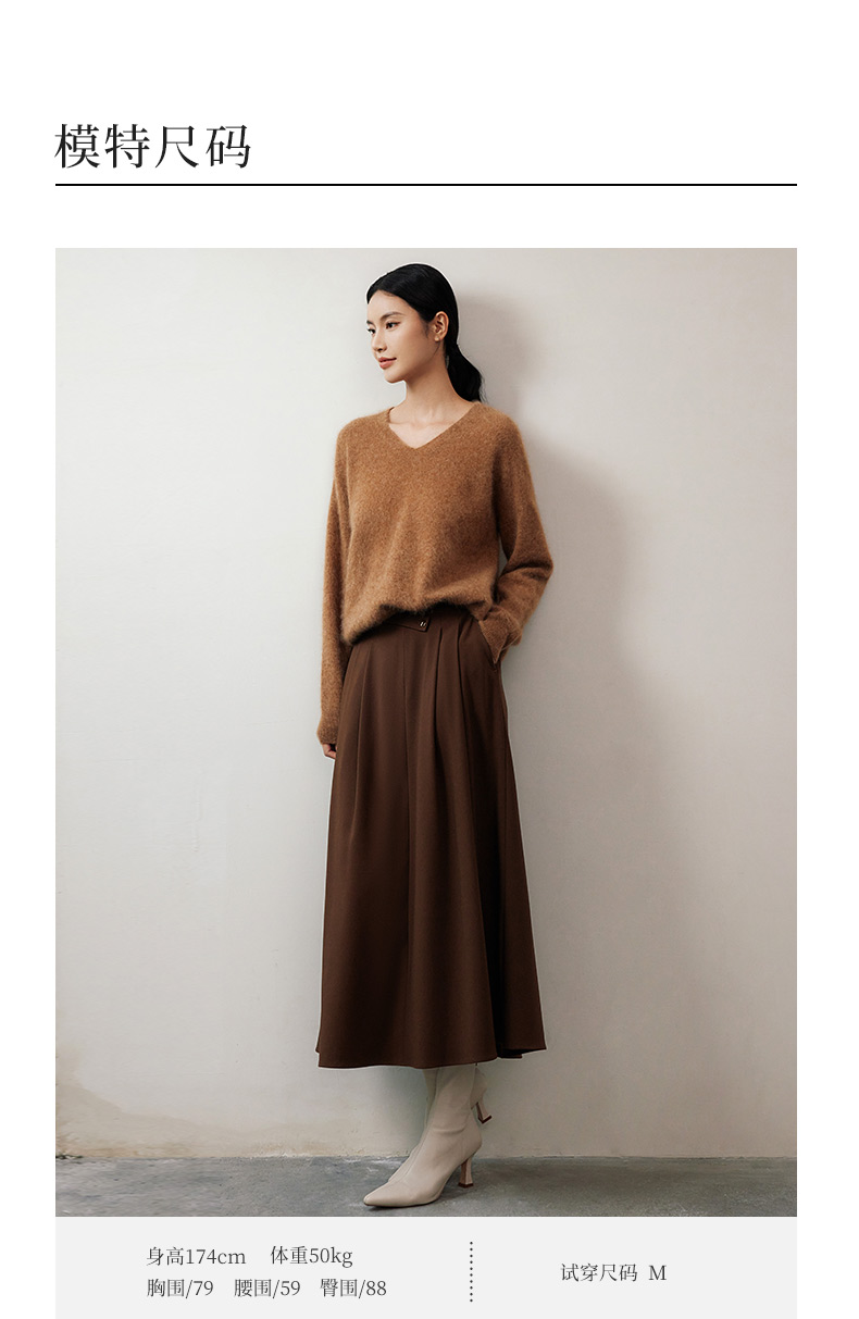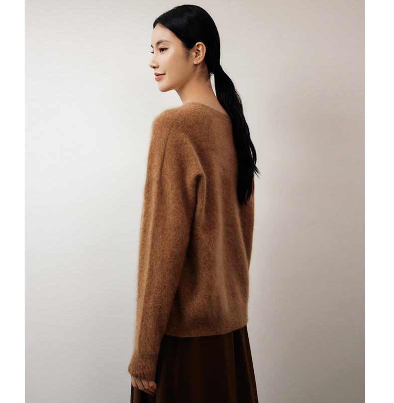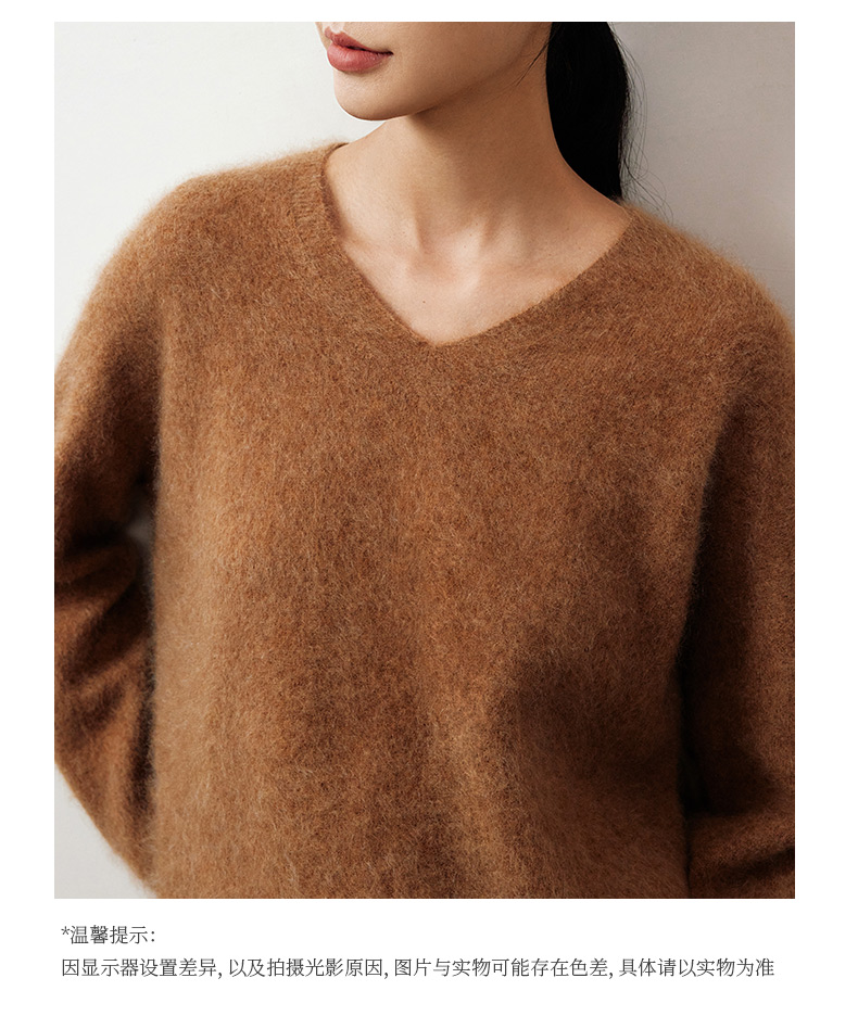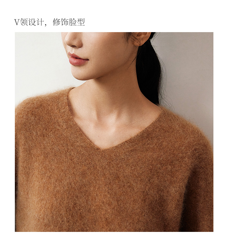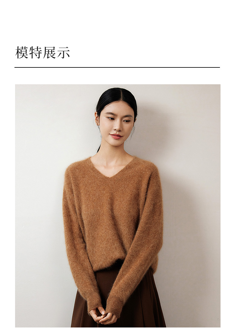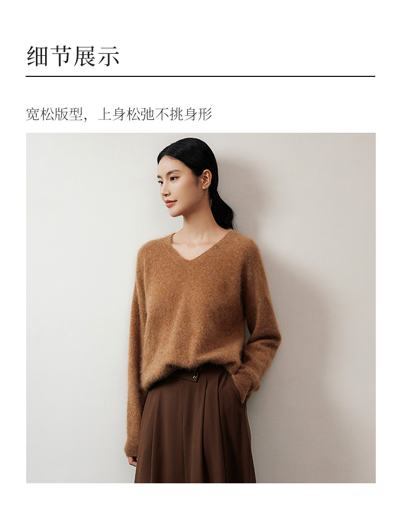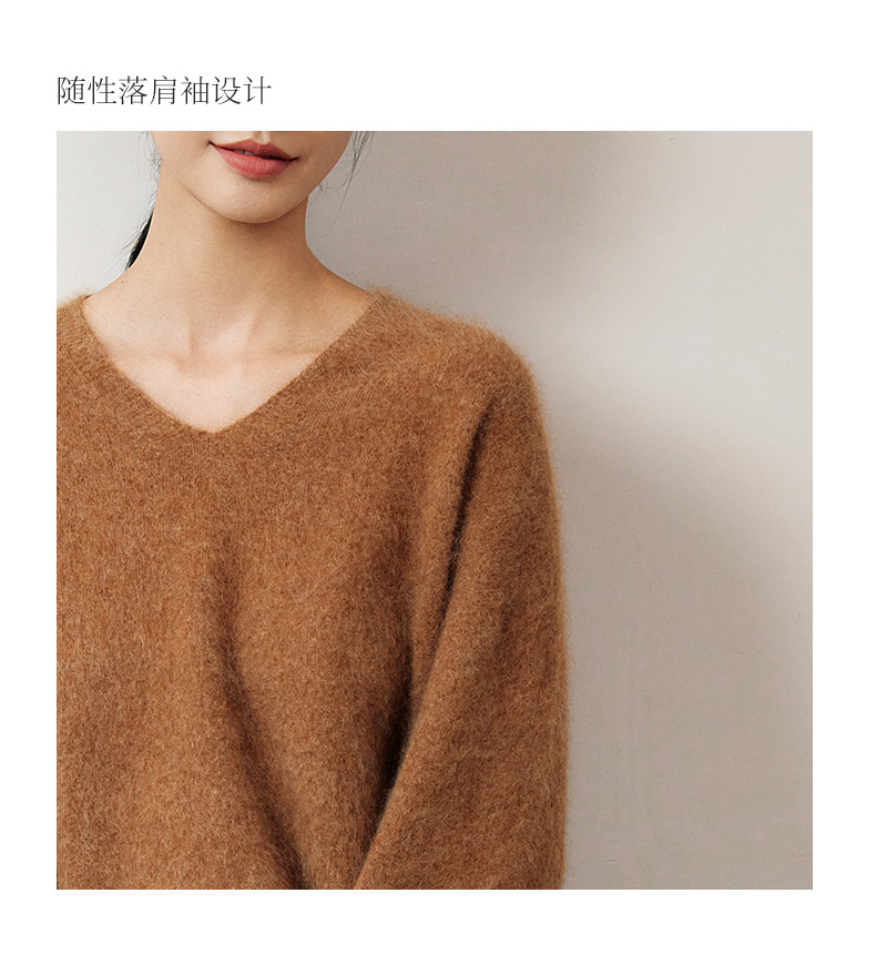 玳莎拉毛100%羊绒V领针织衫女秋冬新款宽松落肩袖羊毛衫上衣 ED33301