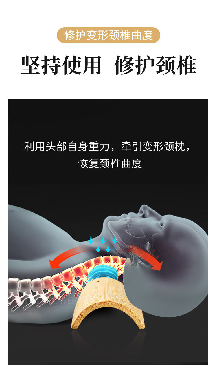 竹枕成人颈椎修复保健竹子硬枕头护颈腰枕护腰拉伸反弓矫正牵引枕