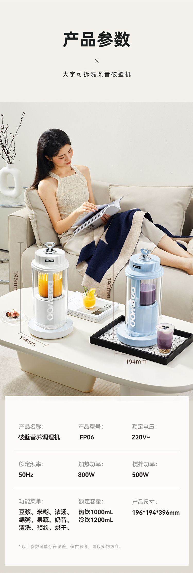 大宇可拆洗柔音破壁机家用米糊机加热豆浆机多功能FP06