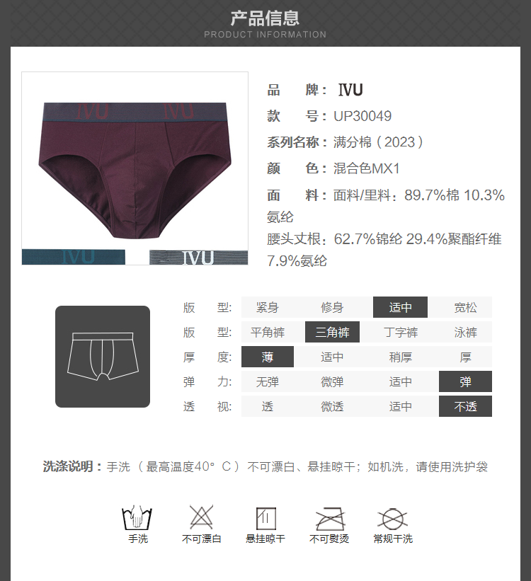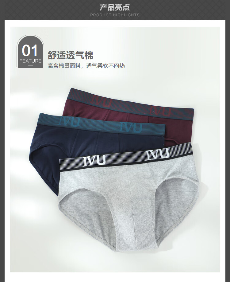 【3F】安莉芳IVU男士薄款棉质内裤舒适透气中腰三角裤3条装UP30049