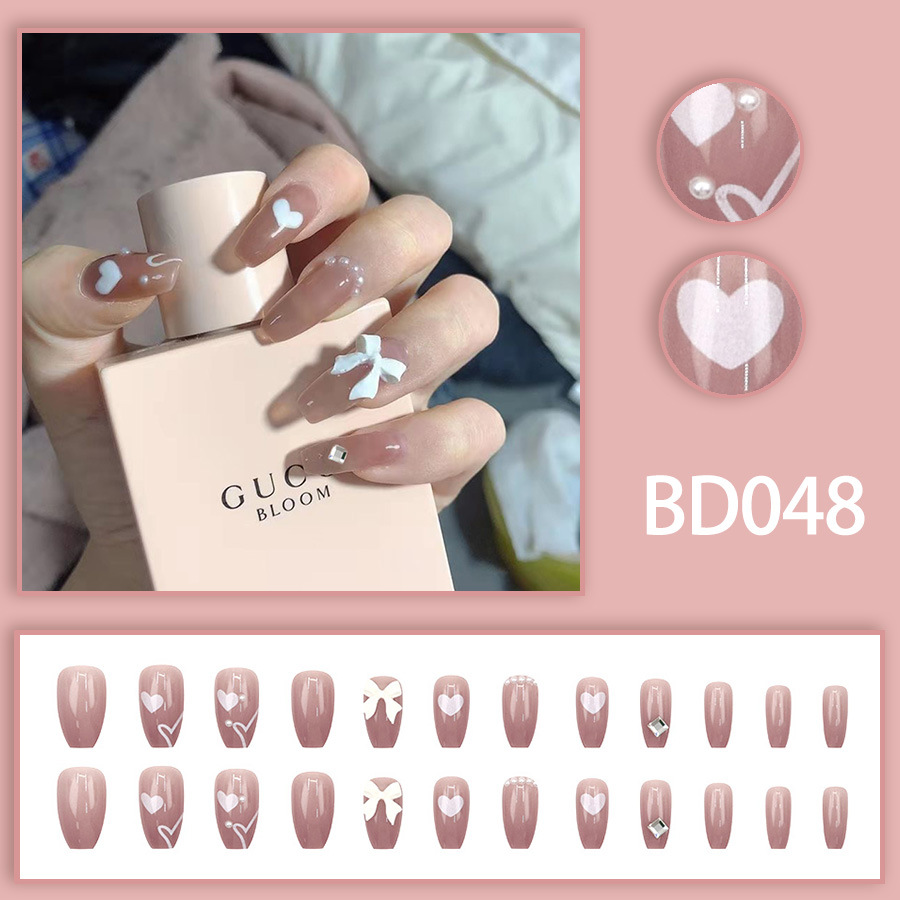穿戴甲简约跳色冰透红棕美甲 假指甲 渐变显白气质BD048穿戴甲24片/盒
