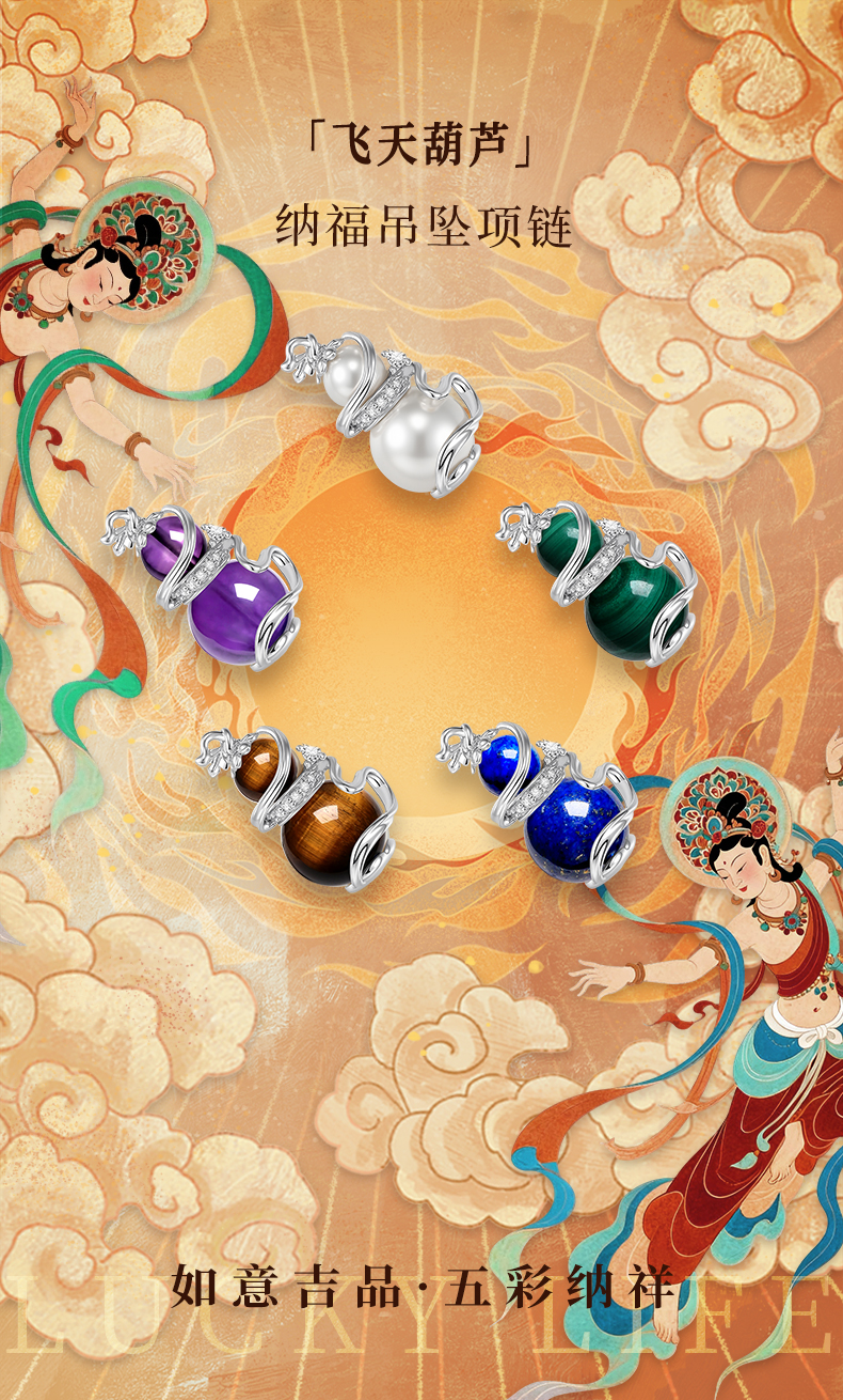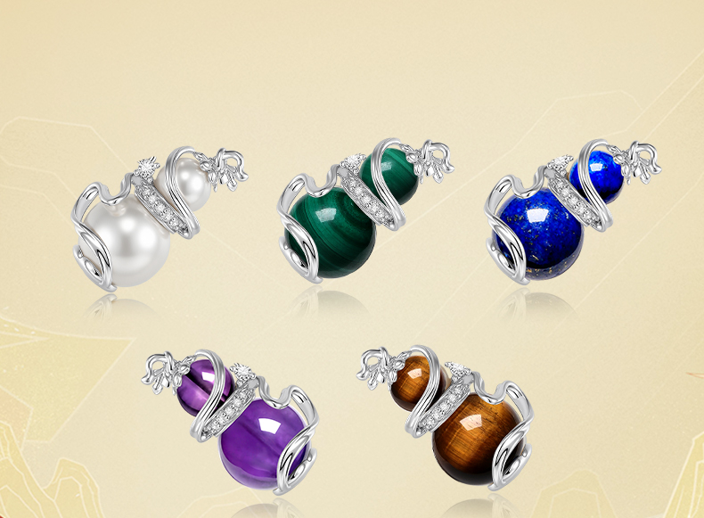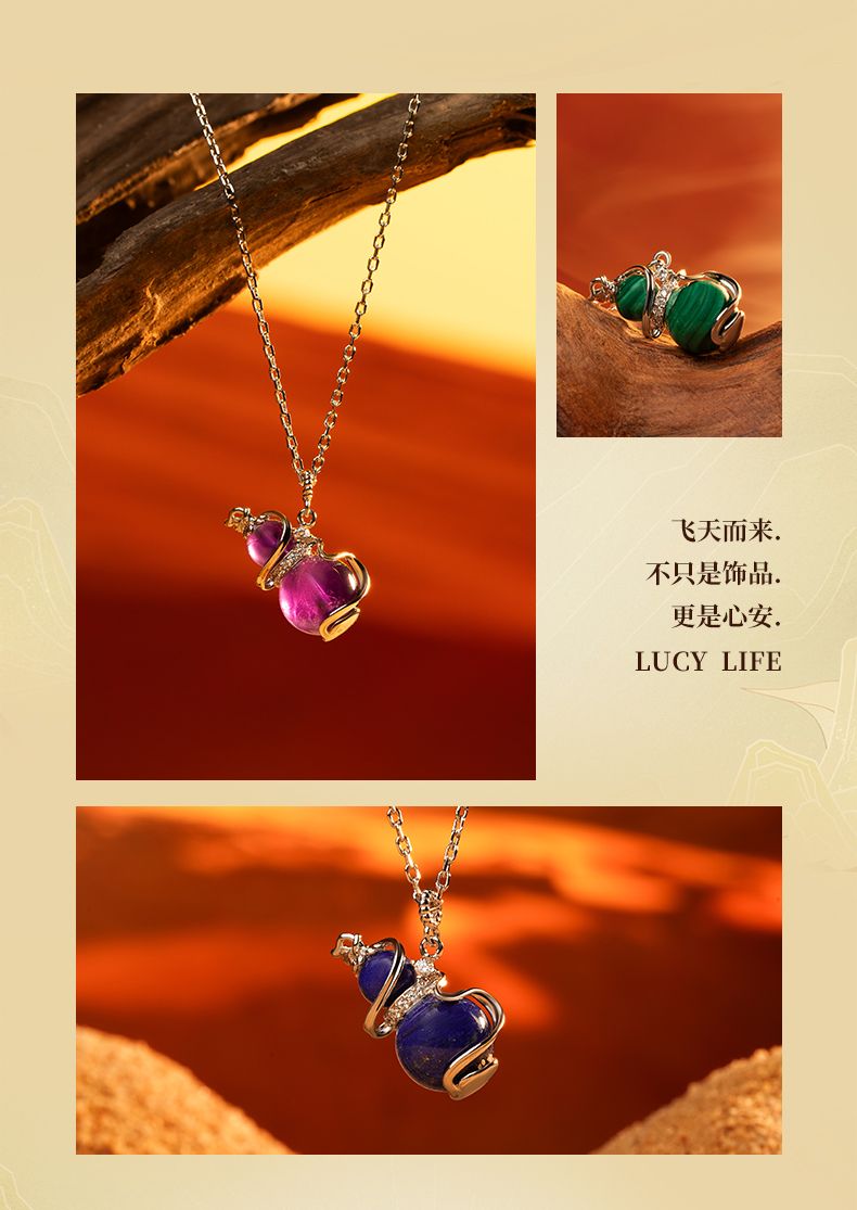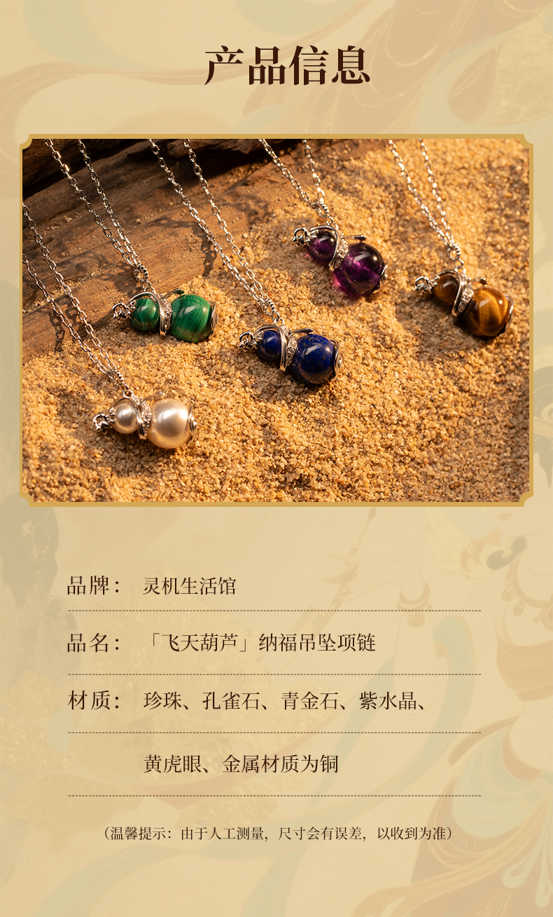 灵机麦玲玲「飞天葫芦」纳福吊坠项链紫水晶珍珠青金石孔雀石