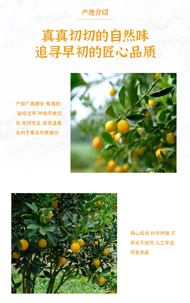 【脆蜜金柑】 产自广西融安, 第三代金桔品种, 皮脆香甜,果实金黄亮丽饱满,不涩不麻,几乎无籽/少籽,无需去皮直接吃