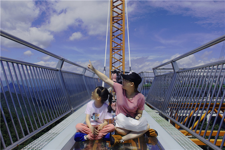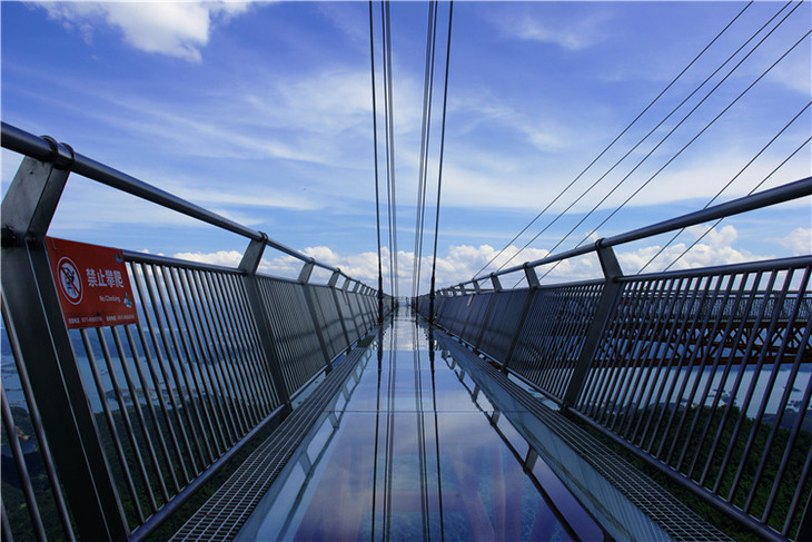 走在通透的玻璃桥面上