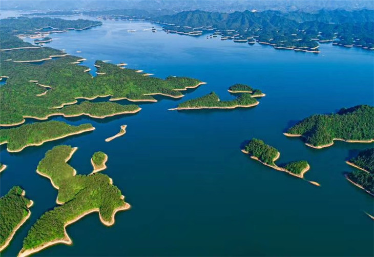 放眼望去,翠绿山林映衬漫漫湖水