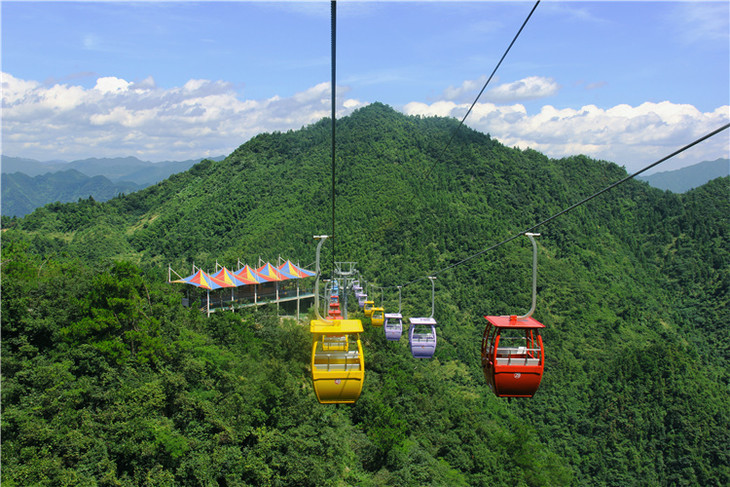 在索道中360度欣赏球山村甚至千岛湖的美景