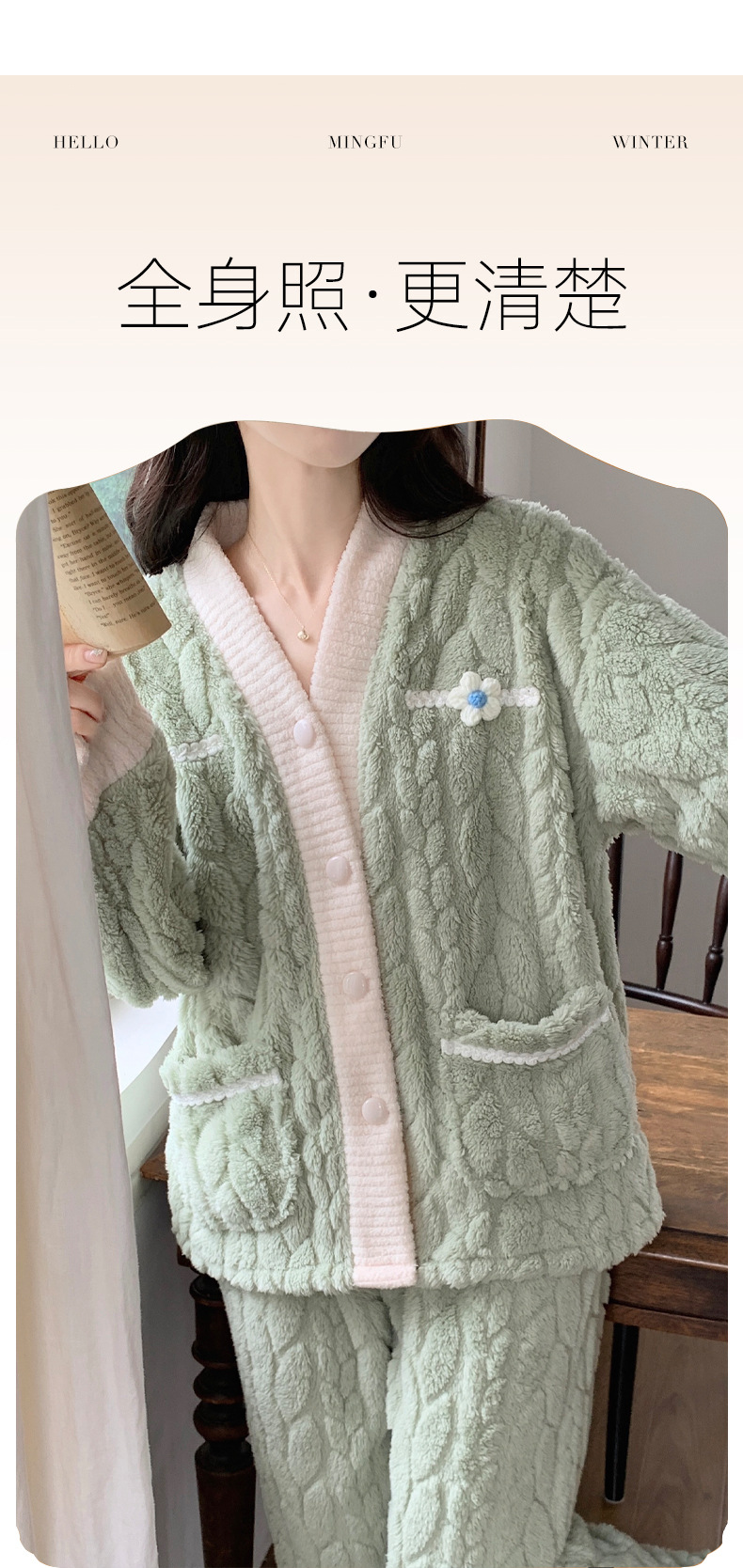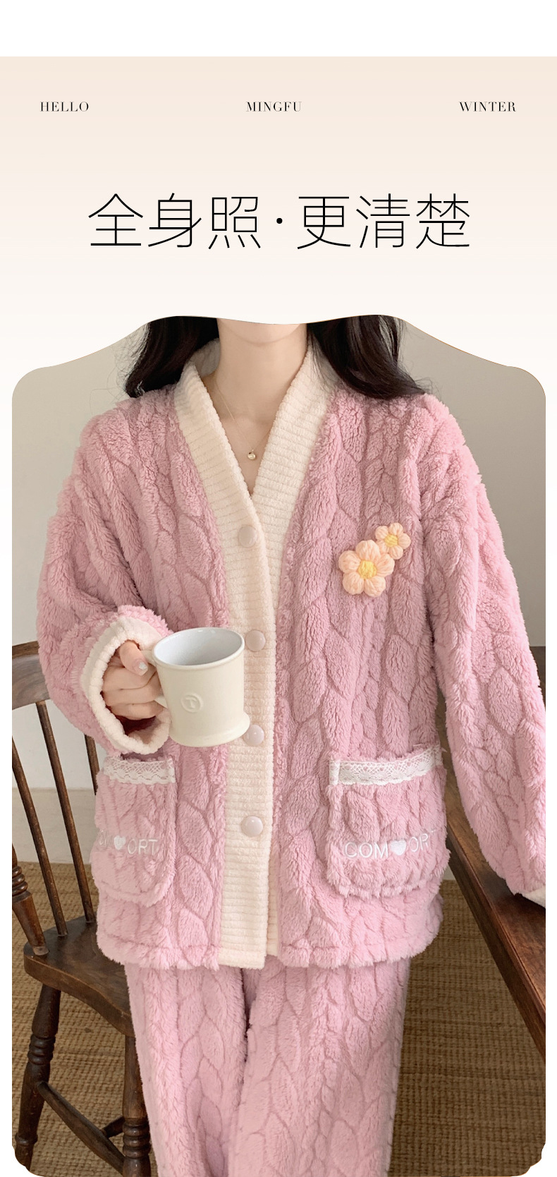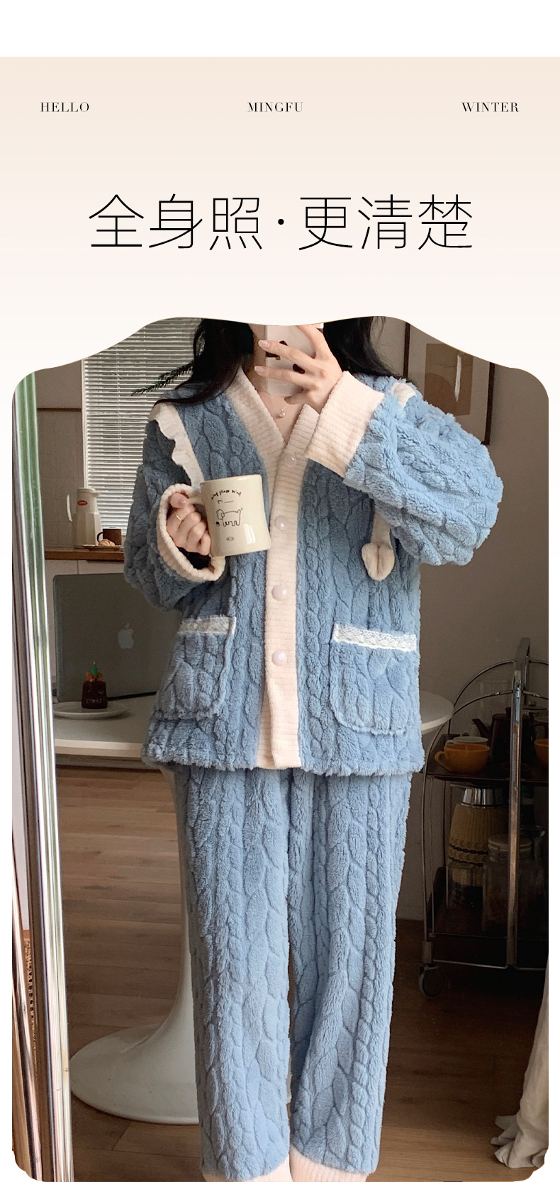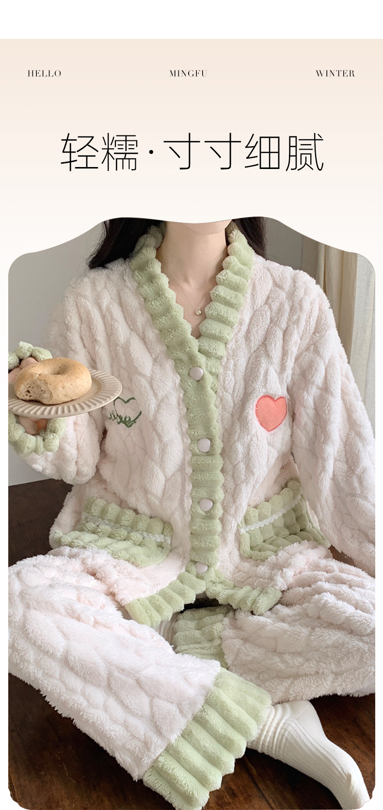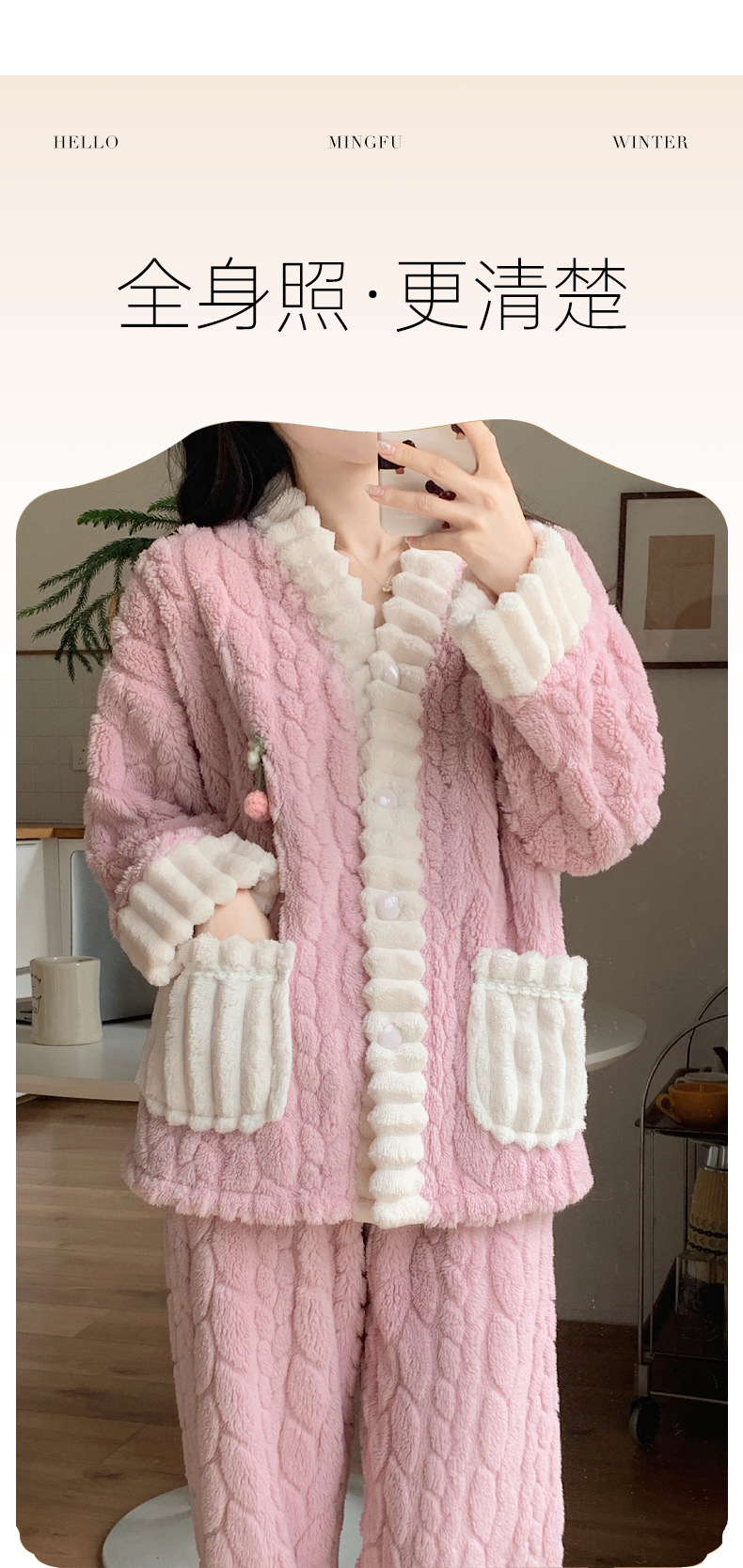 珊瑚绒睡衣女冬季新款加绒加厚保暖甜美法兰绒可外穿家居服套装_qyh