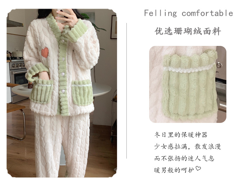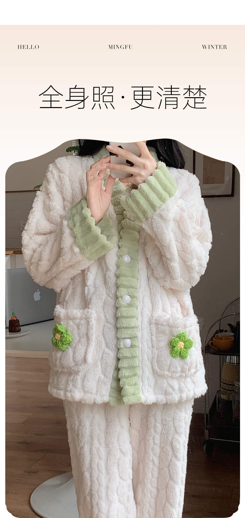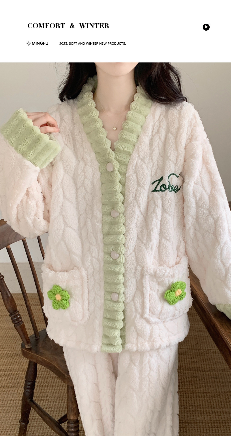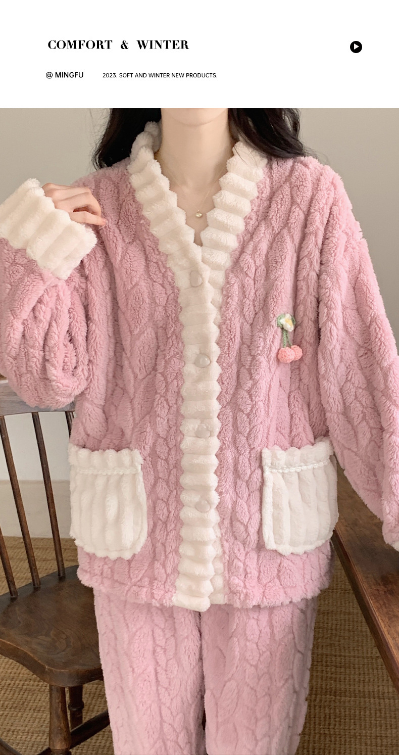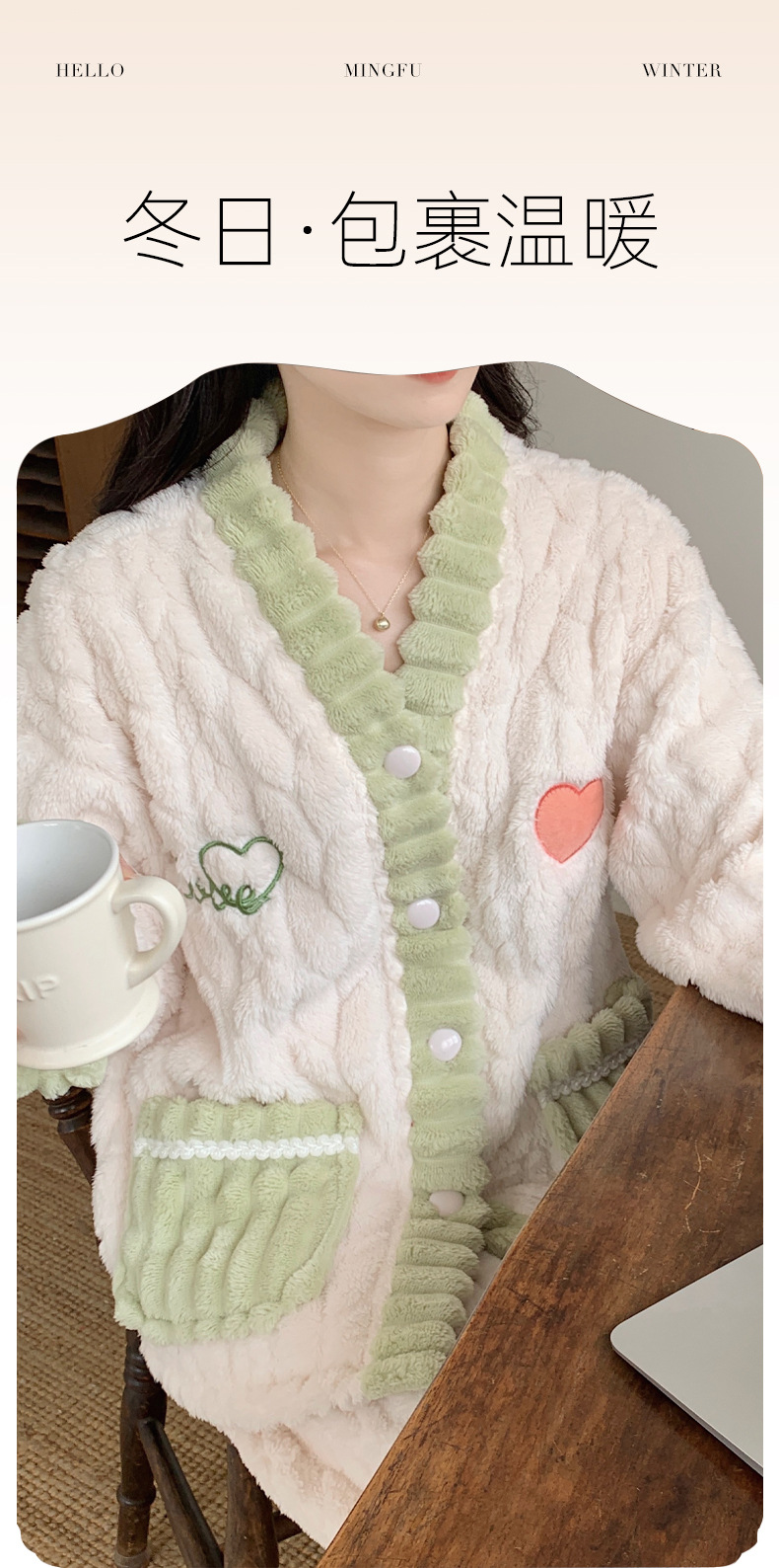 珊瑚绒睡衣女冬季新款加绒加厚保暖甜美法兰绒可外穿家居服套装_qyh