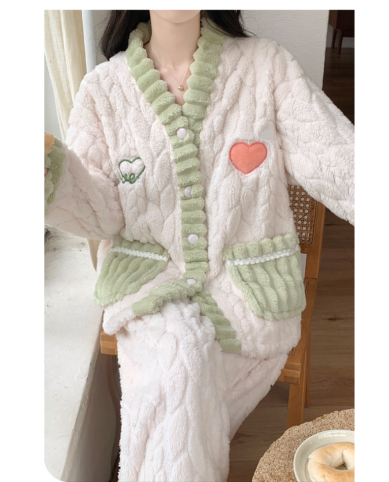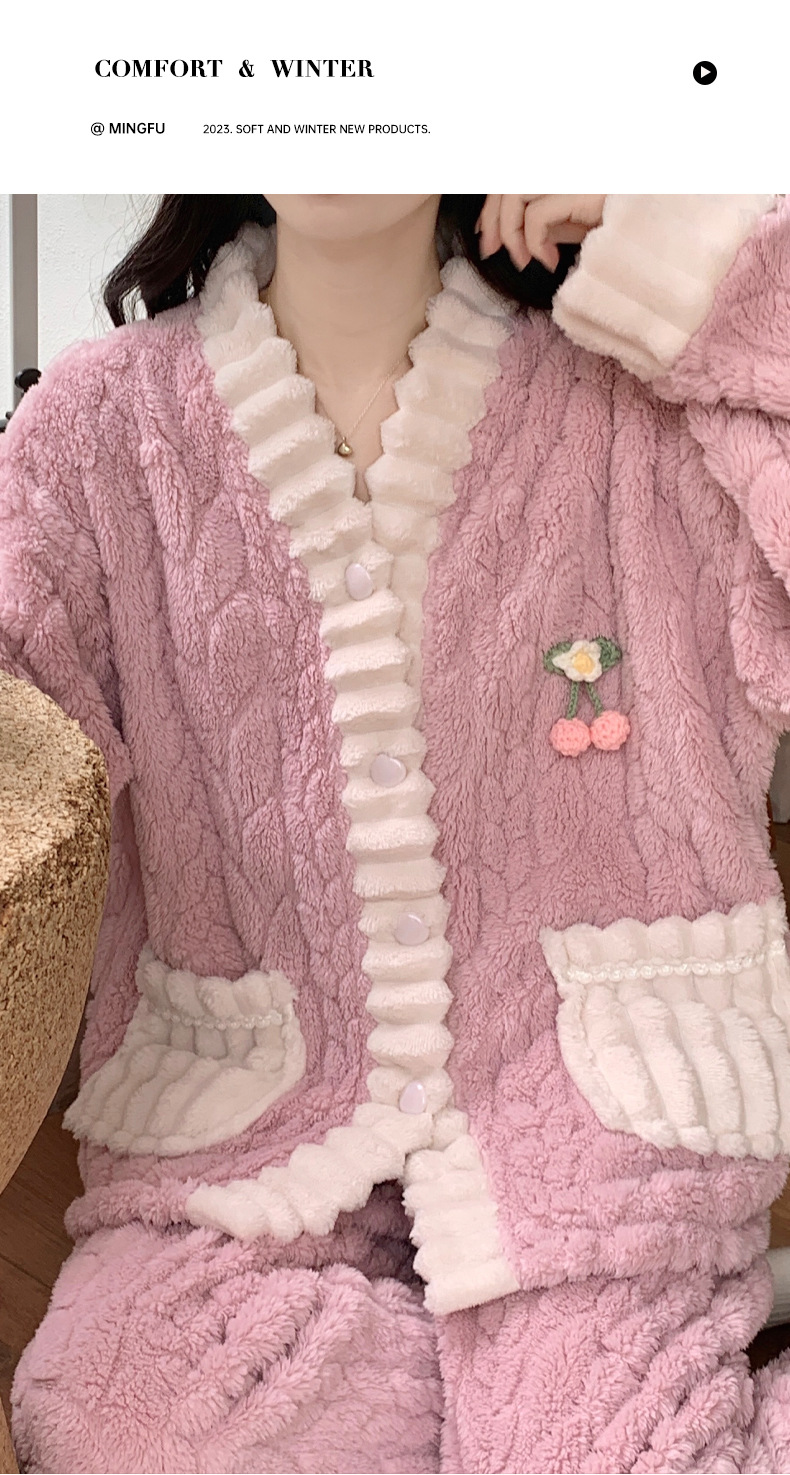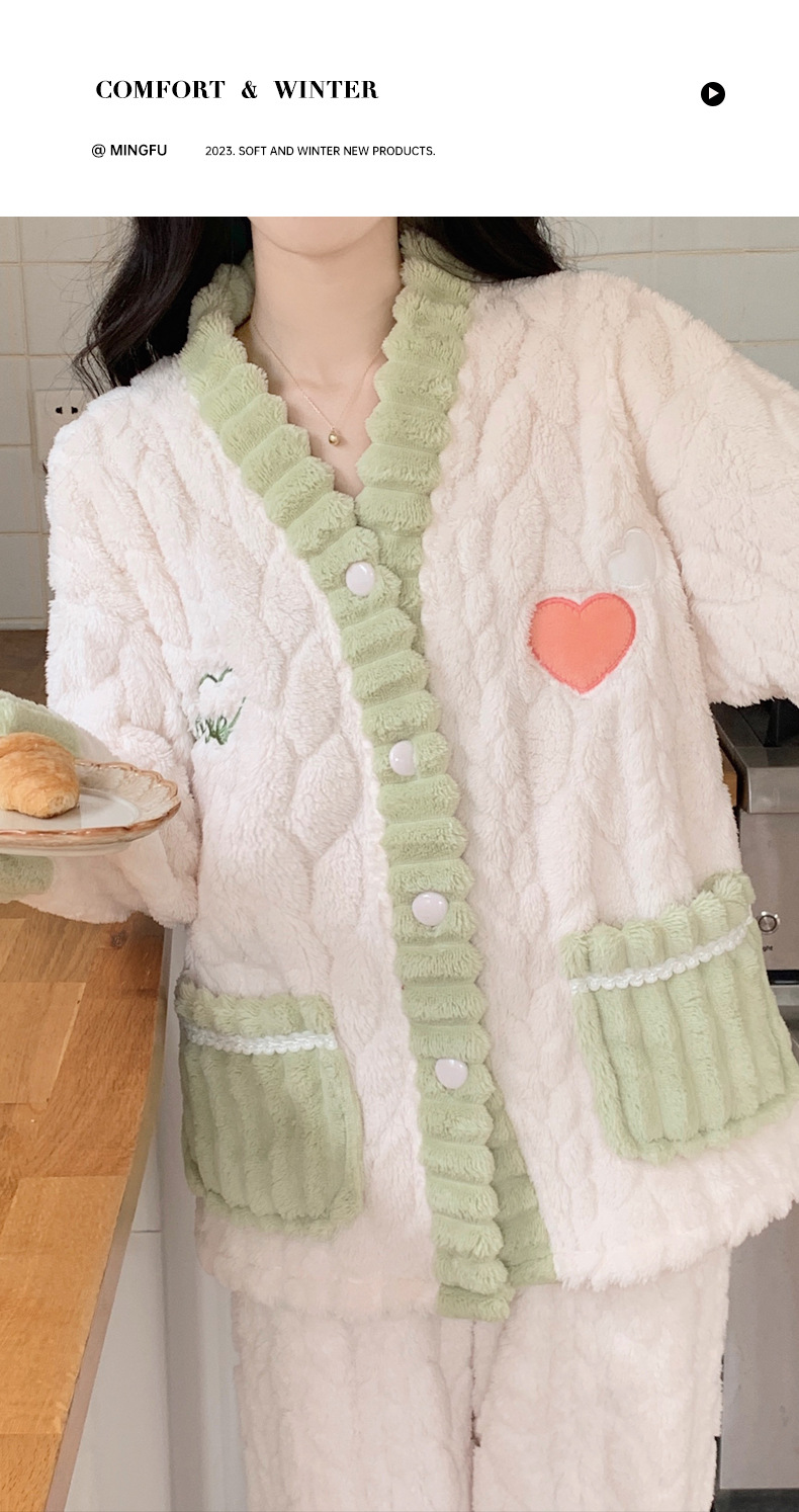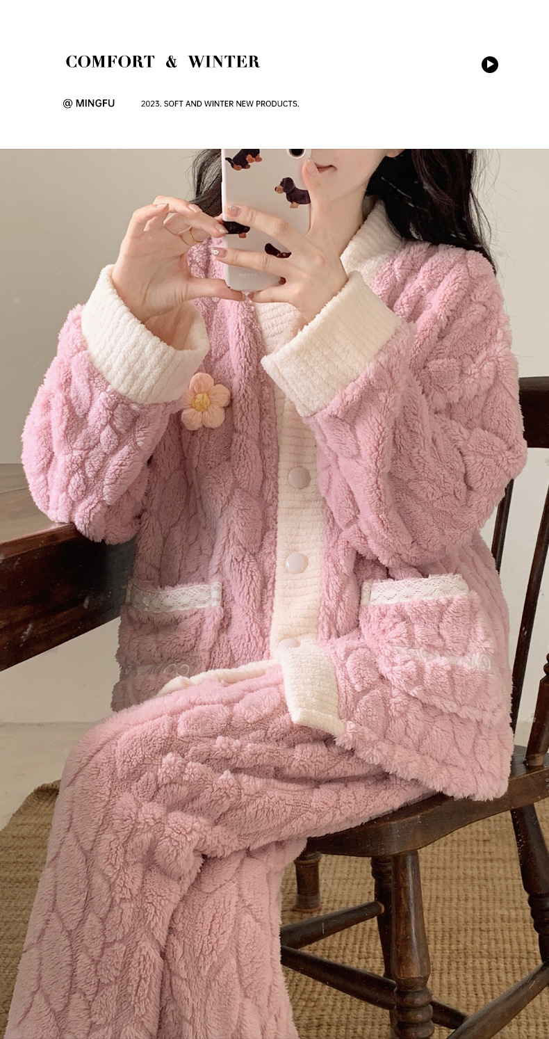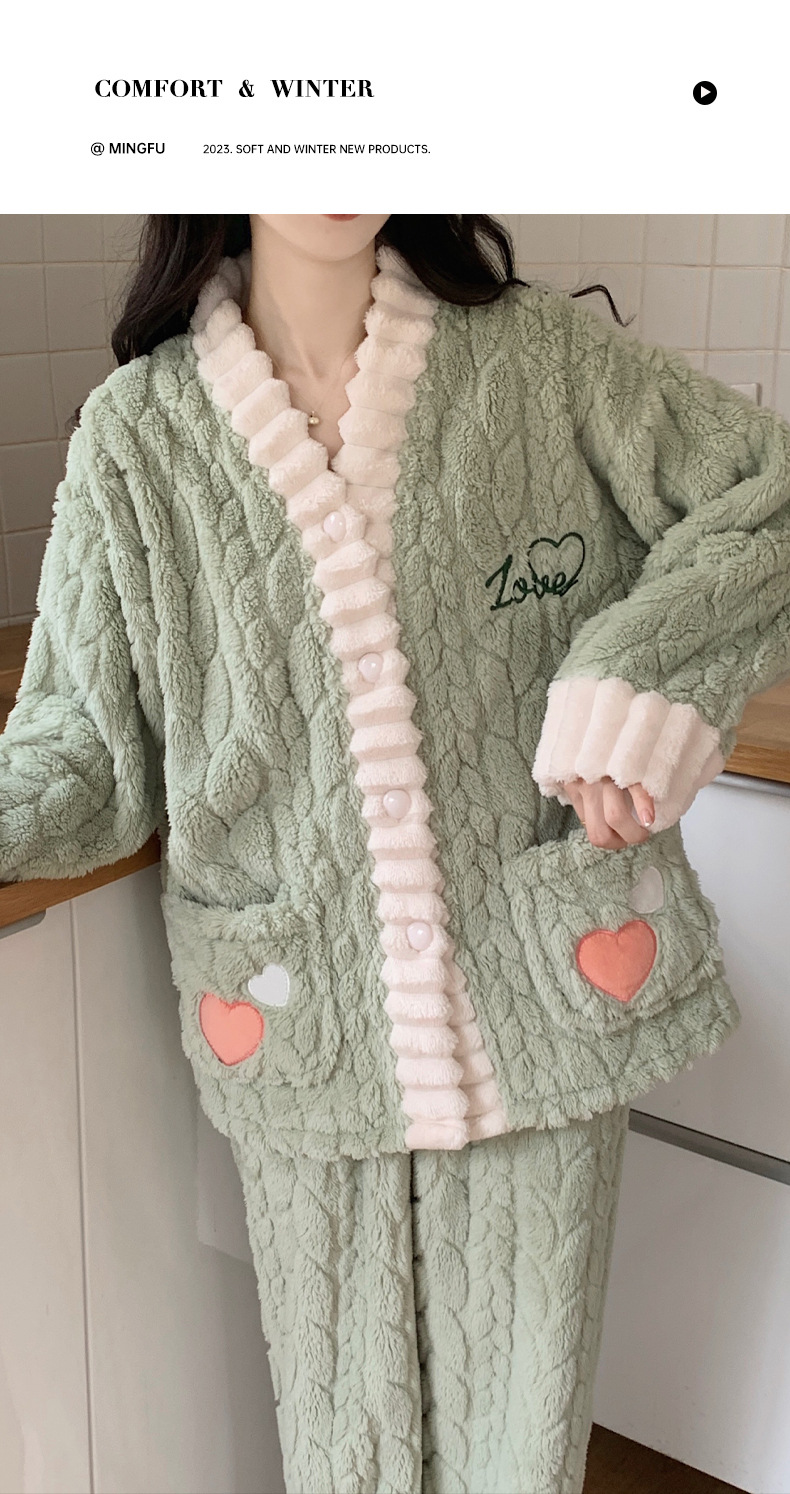 珊瑚绒睡衣女冬季新款加绒加厚保暖甜美法兰绒可外穿家居服套装_qyh