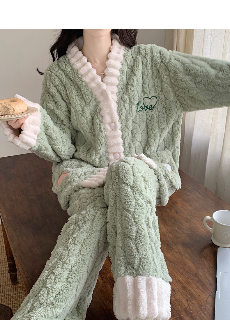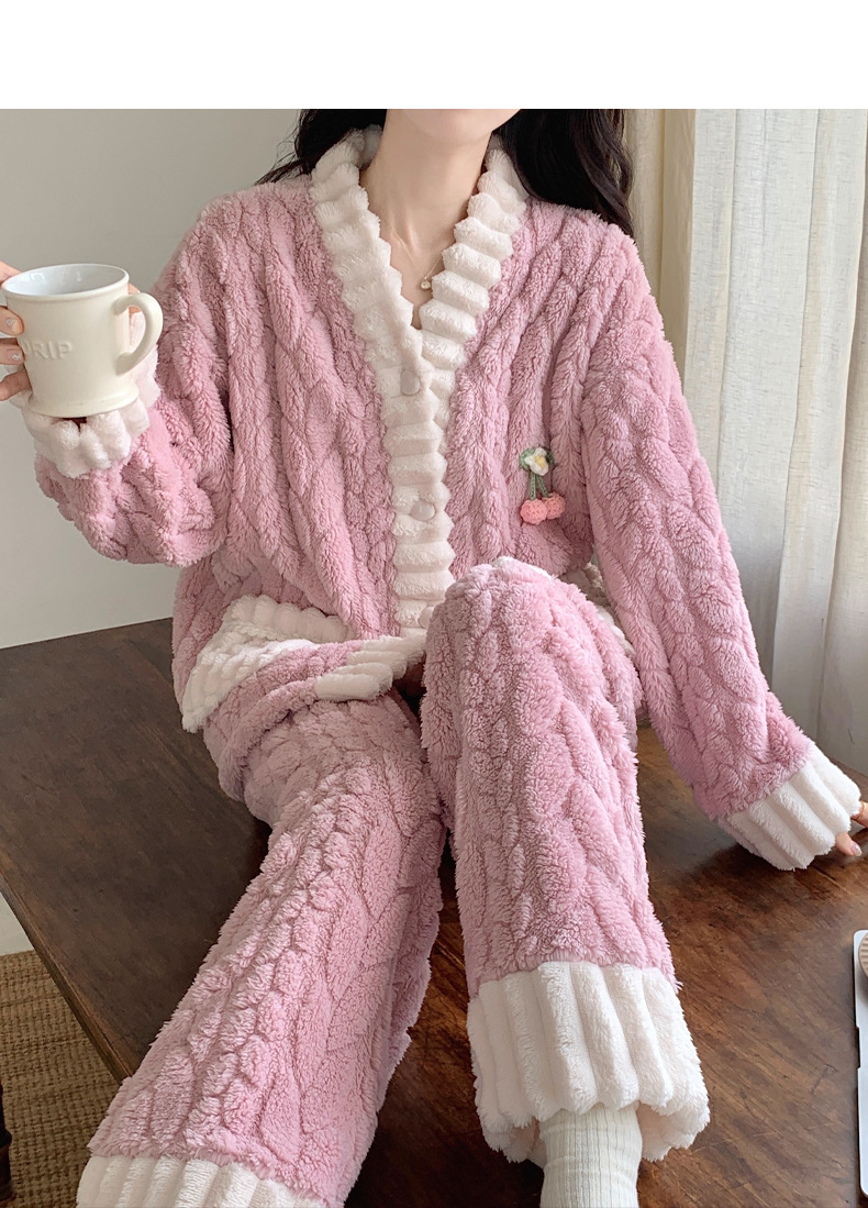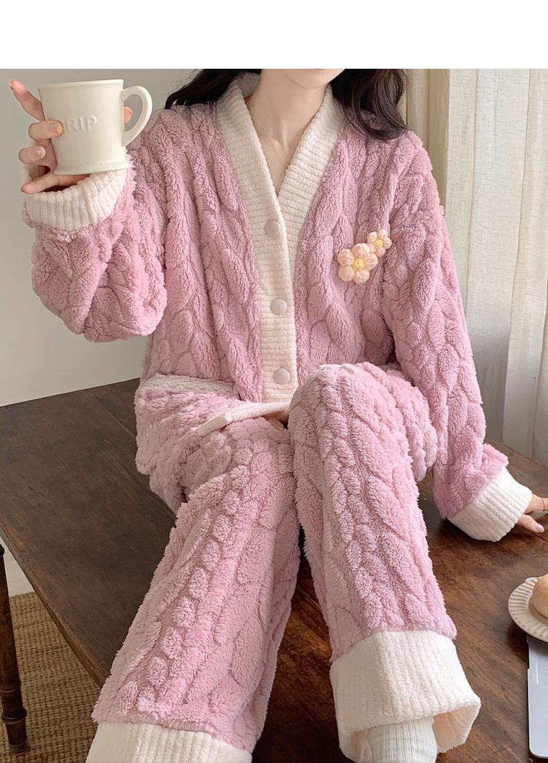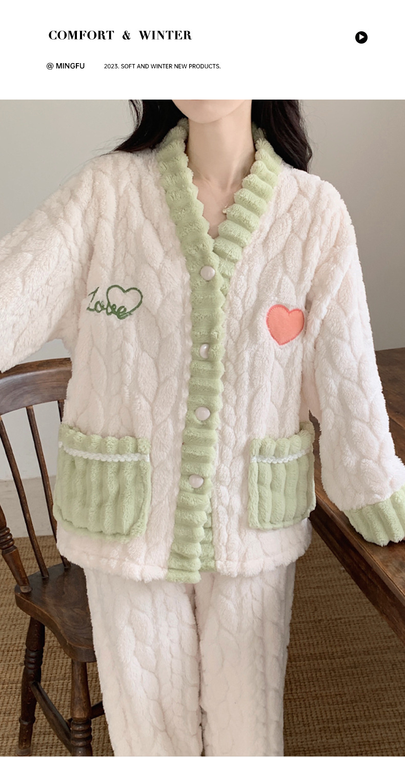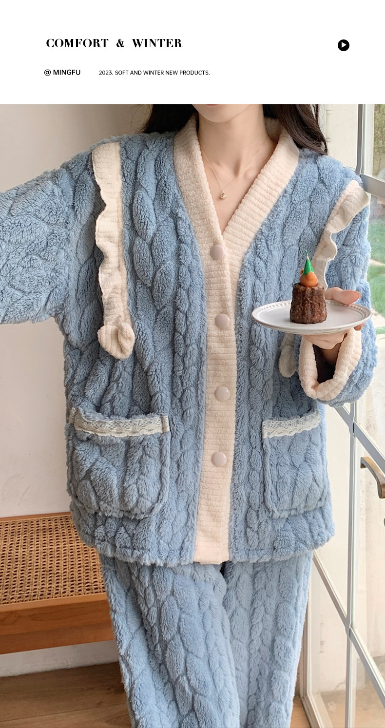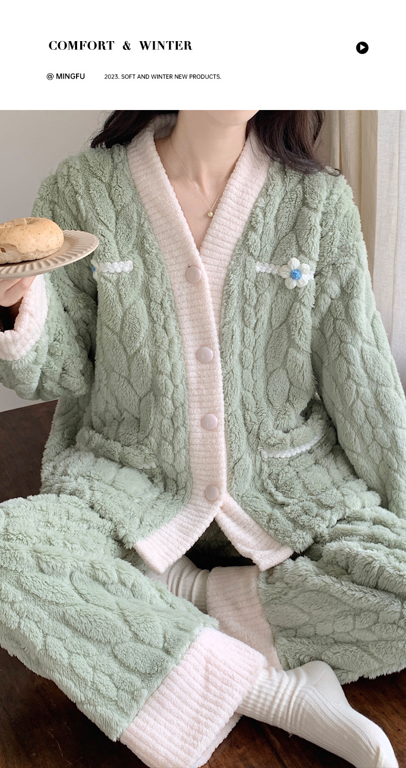 珊瑚绒睡衣女冬季新款加绒加厚保暖甜美法兰绒可外穿家居服套装_qyh
