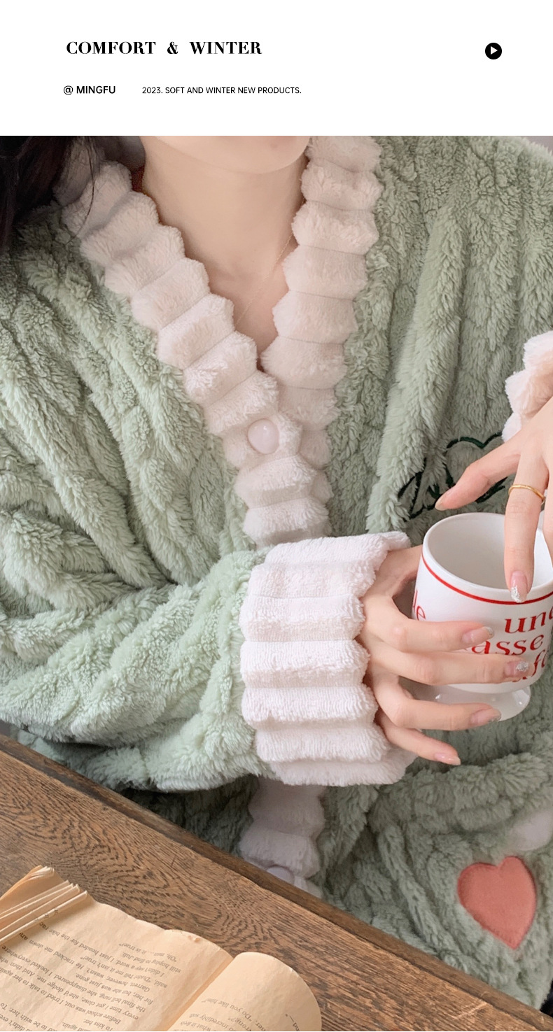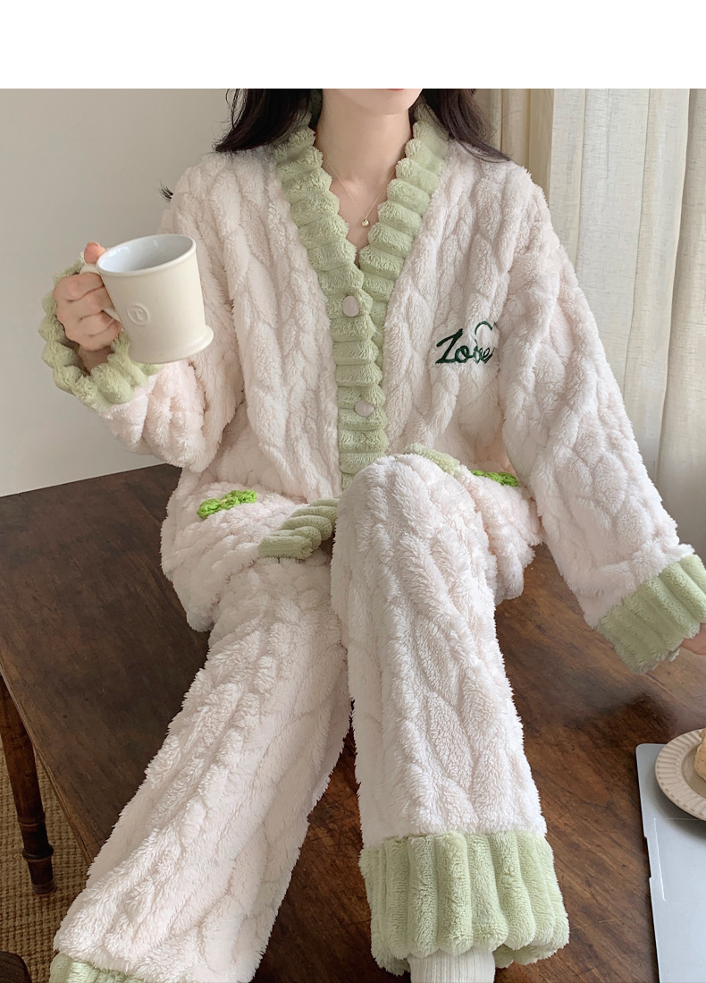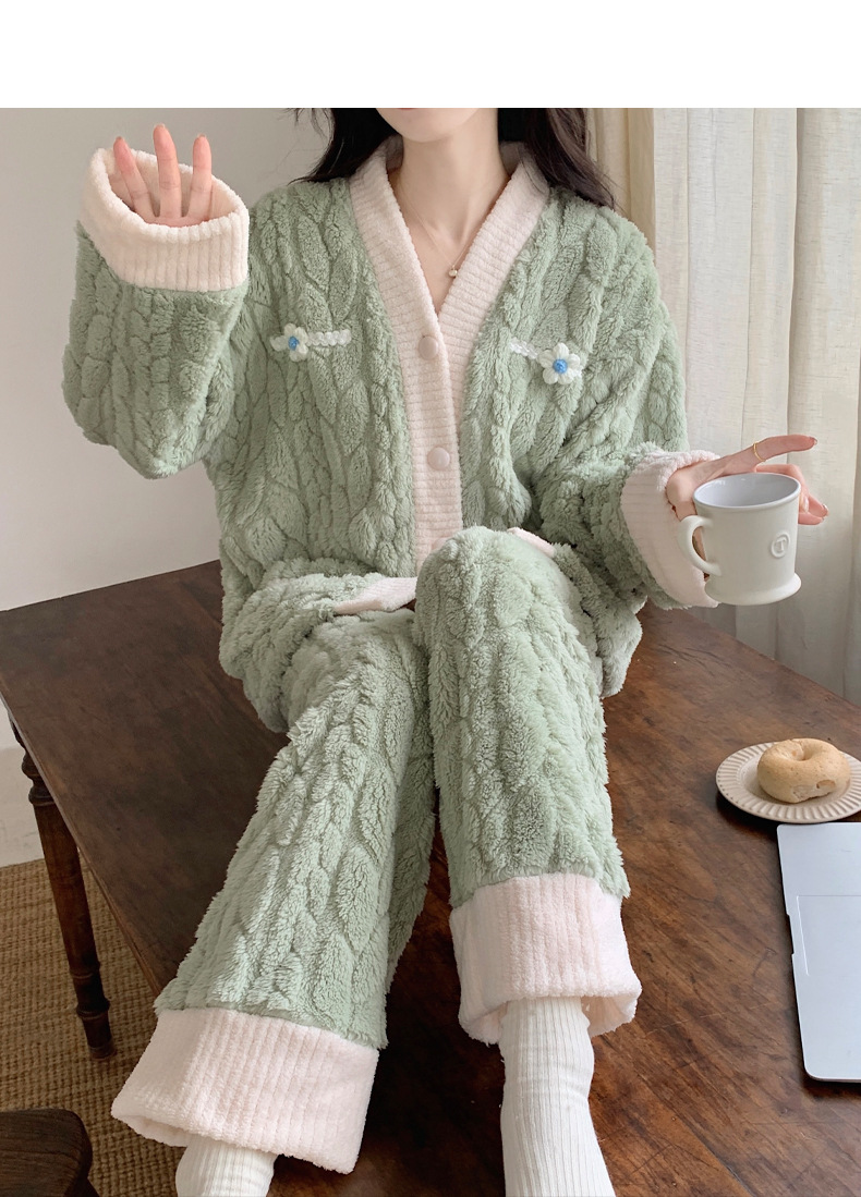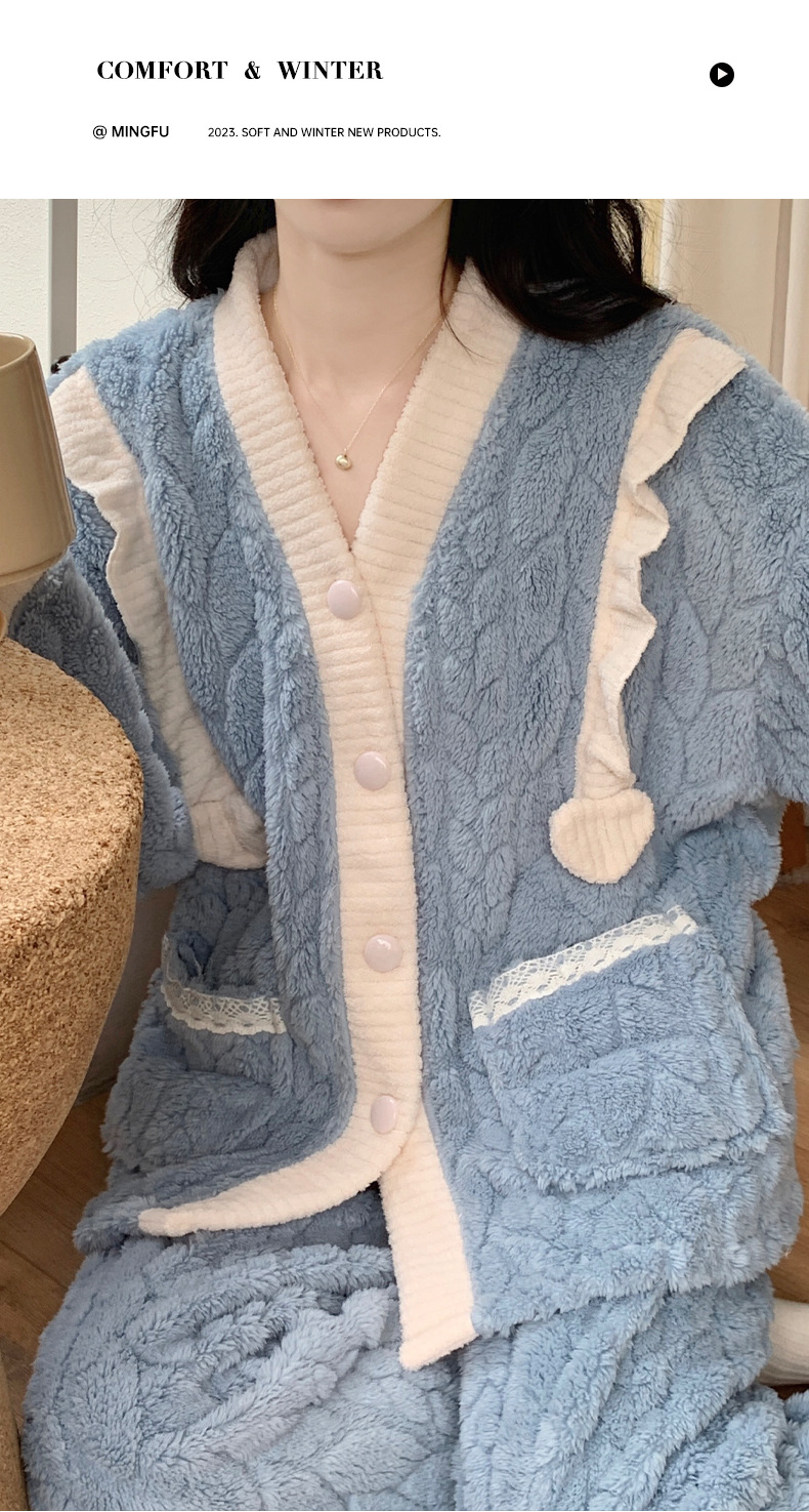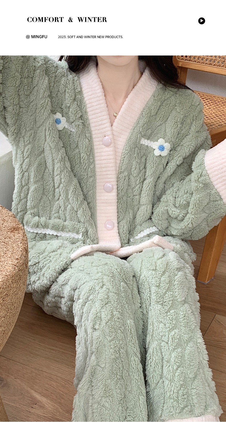 珊瑚绒睡衣女冬季新款加绒加厚保暖甜美法兰绒可外穿家居服套装_qyh