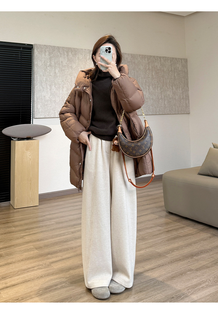 整个面料很垂,面料是含羊毛的,软糯舒适又不失挺括有型!