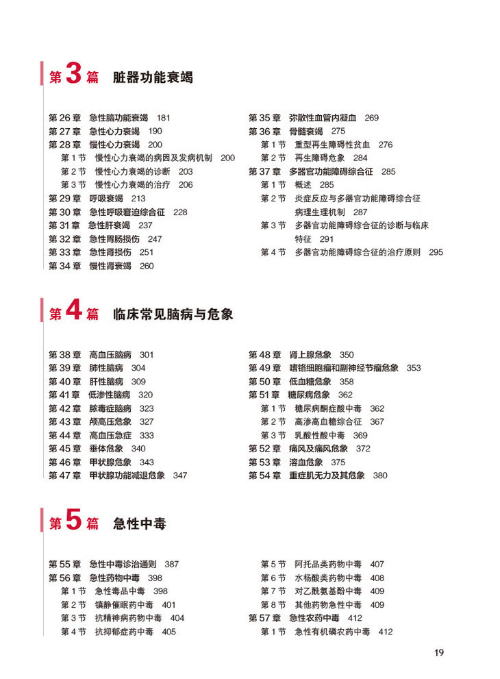 全书共分18篇170章。分别叙述了常见内科急症症状的诊断思路与处理原则,休克、脏器功能衰竭、临床常见脑病与危象、急性中毒、水电解质代谢紊乱与酸碱平衡失调,内科各系统疾病急诊的病因与发病机制、诊断与治疗措施,中医与急危重症诊治等。并详细地介绍了急危重症常用诊疗技术和急危重症常用药物。