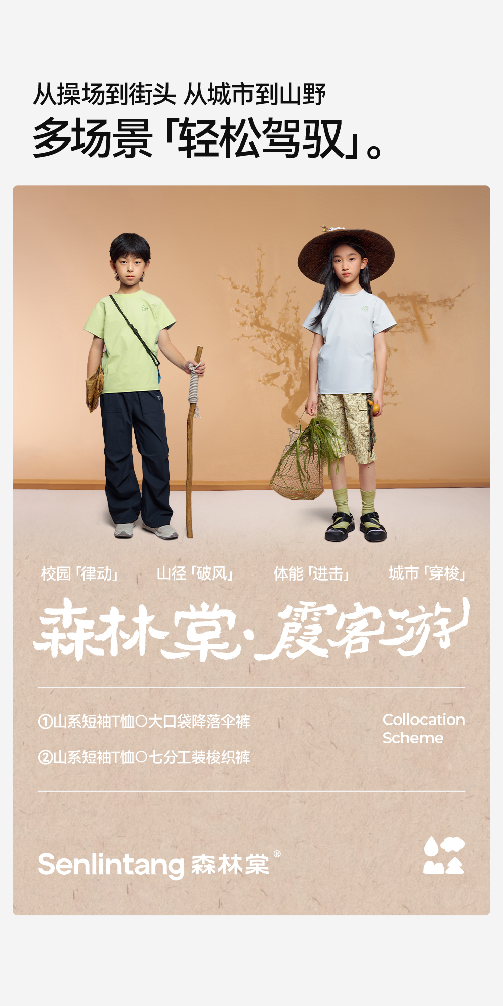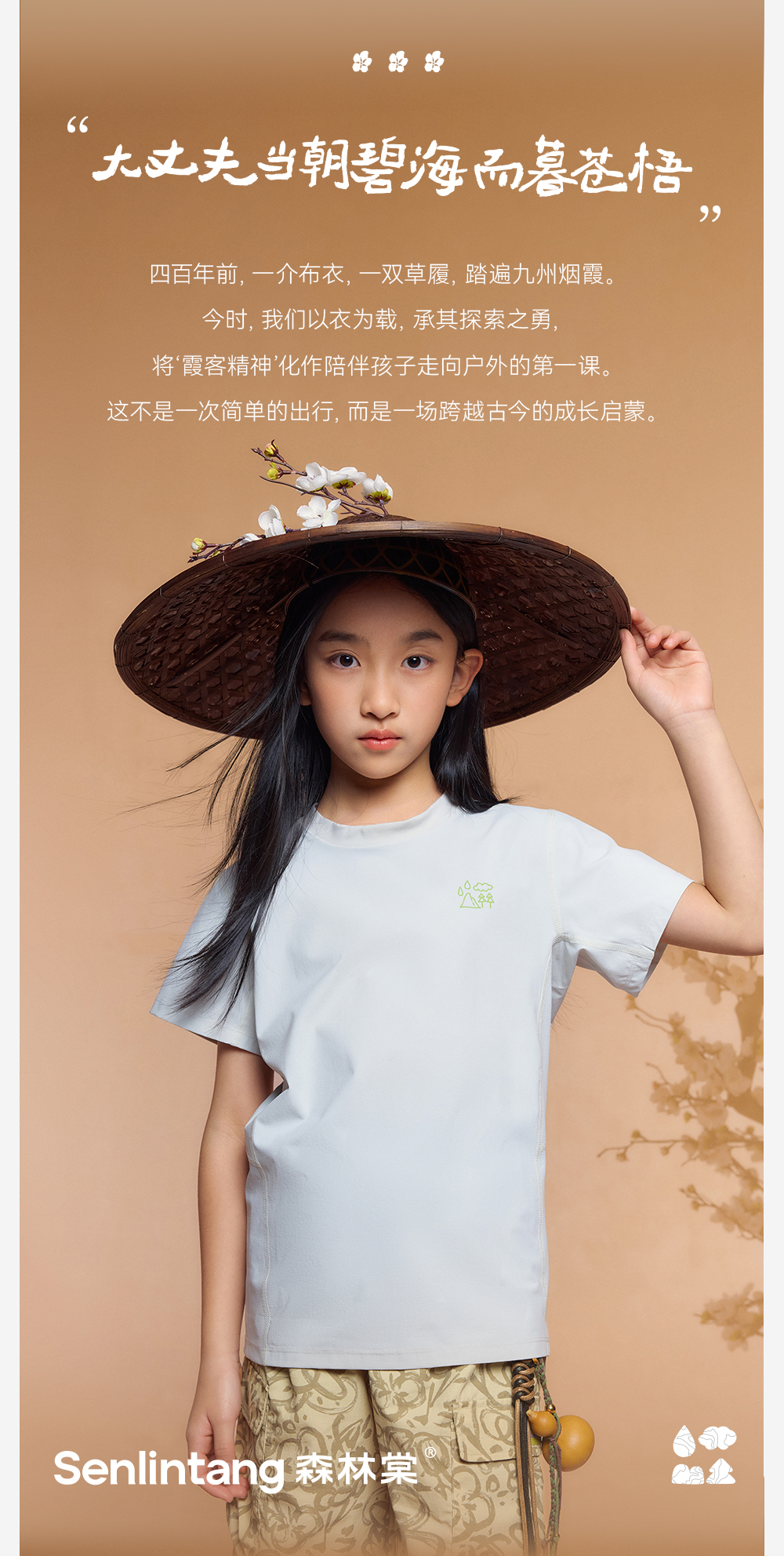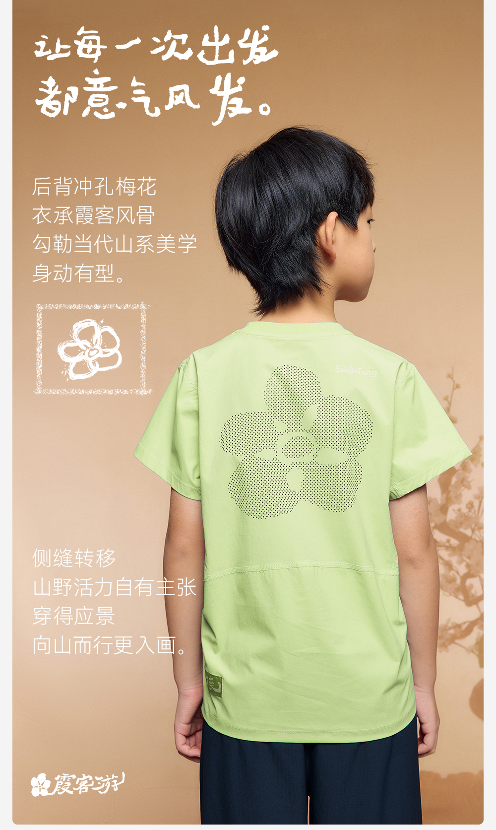【山系短袖T恤】森林棠26夏款霞客游四面弹干爽透气儿童户外休闲运动T恤40162362