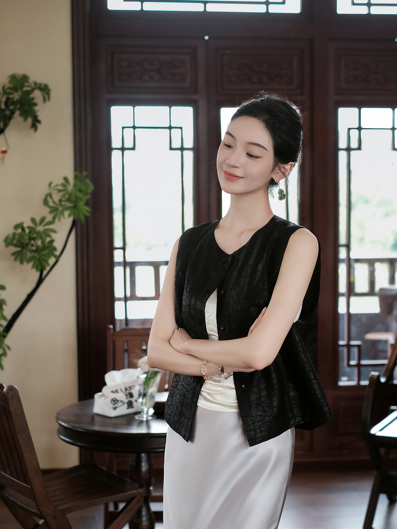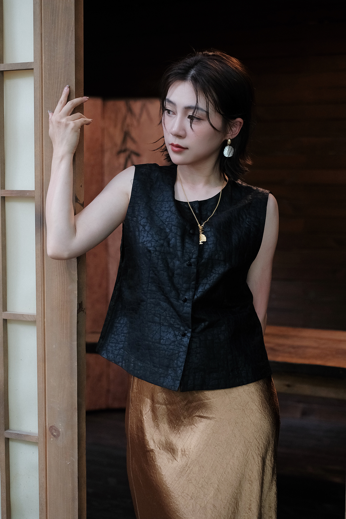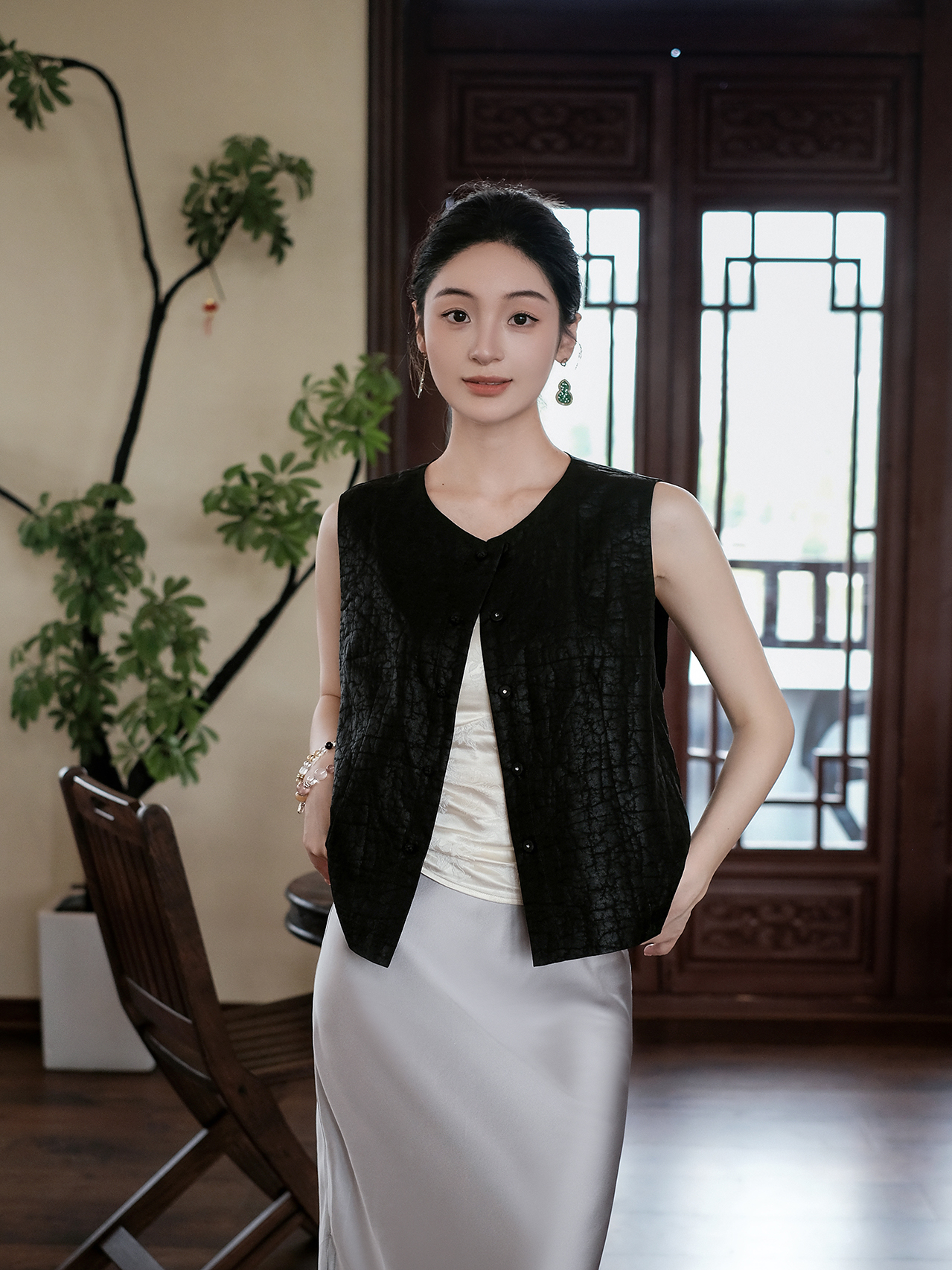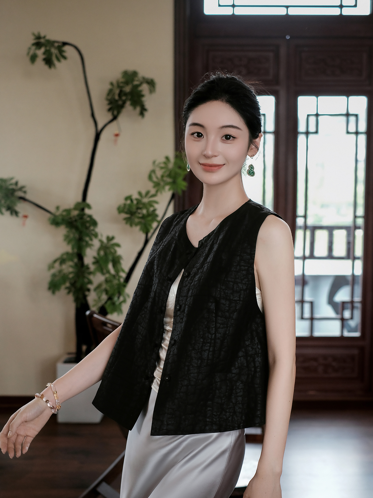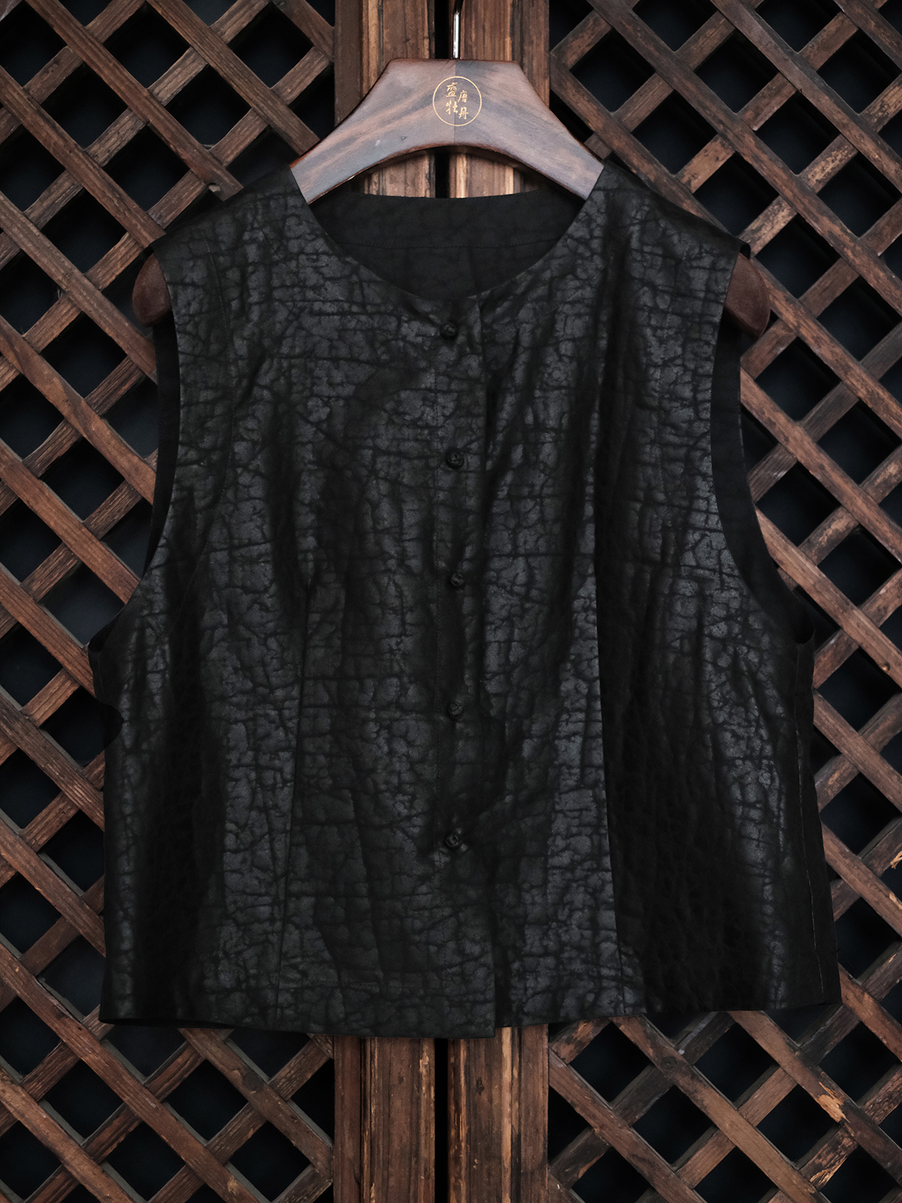 盛唐婧| 香云纱黑色龟裂纹百搭两面穿马甲