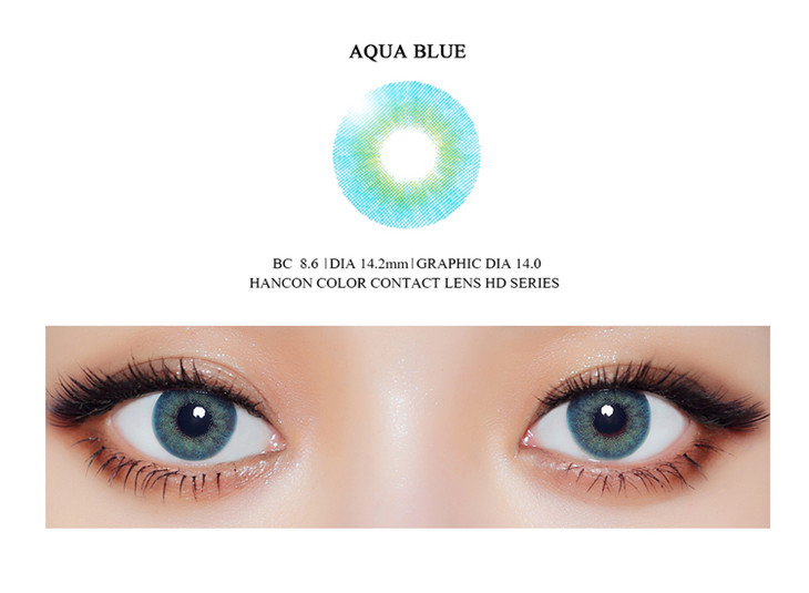 Blue是单色镜片 天空的蓝色 带灰 冷色明亮 比Aqua干净 是很多白人所追求的瞳色