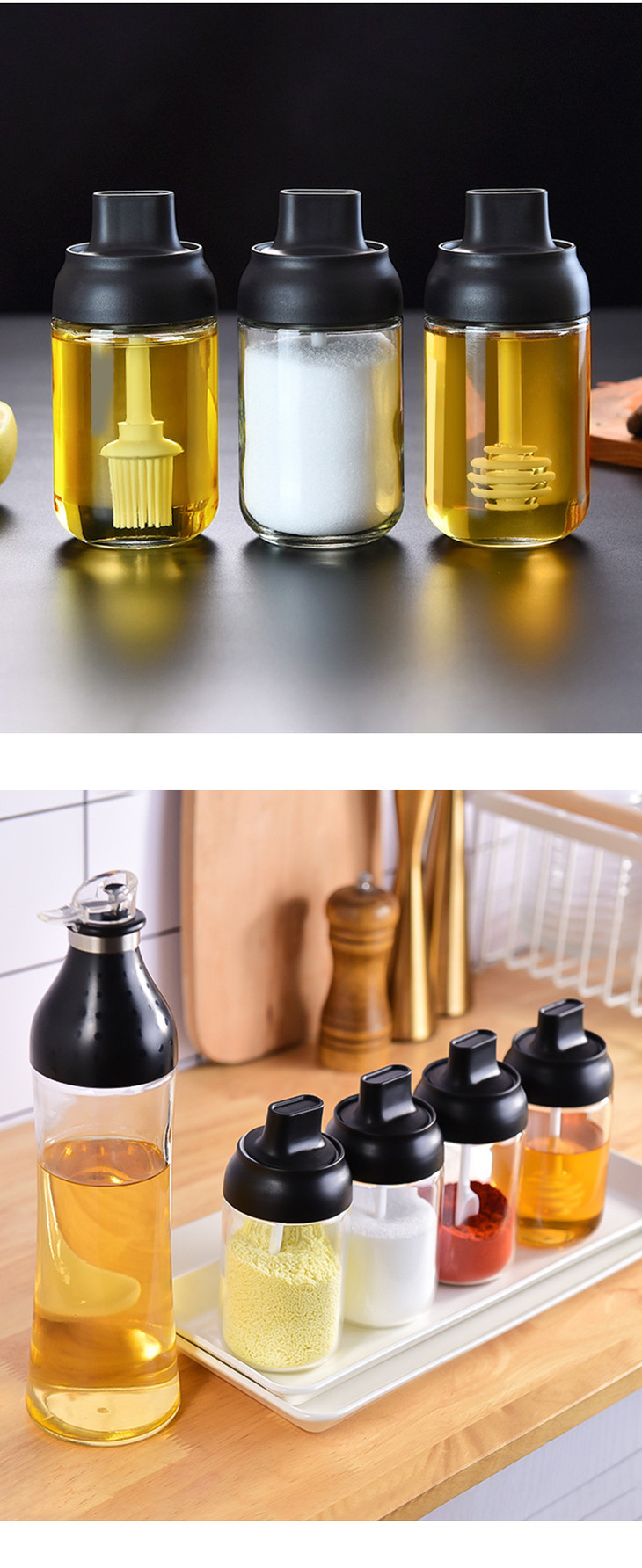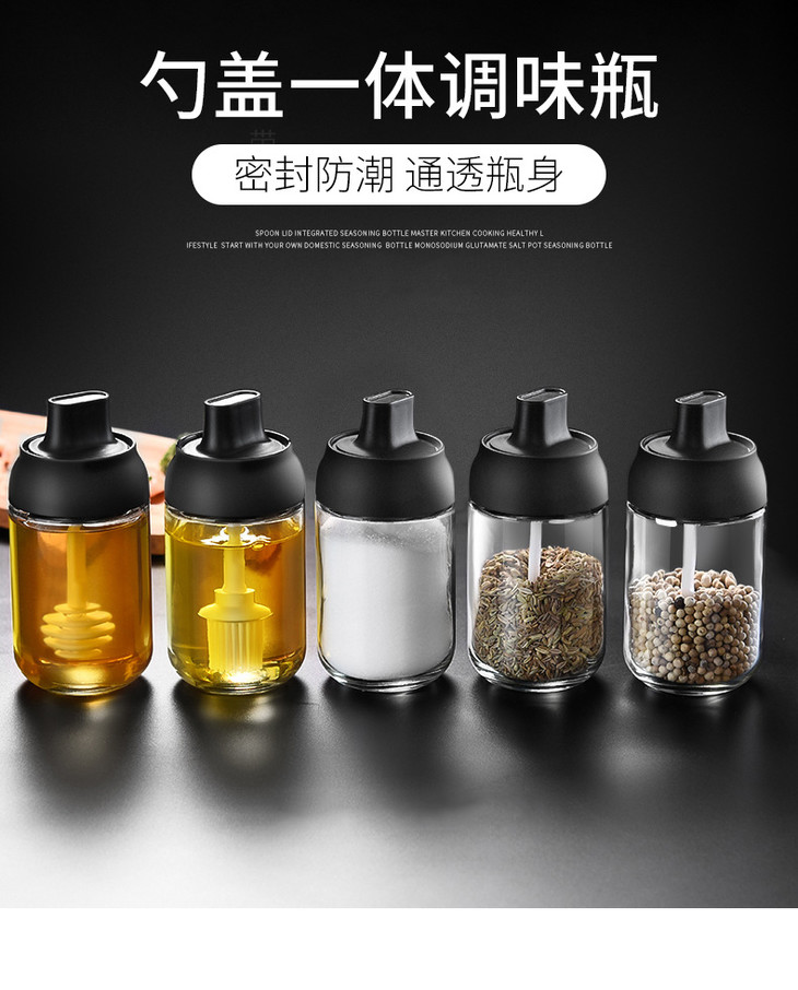 【调味罐】厨房调味罐玻璃密封调味瓶勺盖一体调料瓶刷油瓶蜂蜜瓶油壶