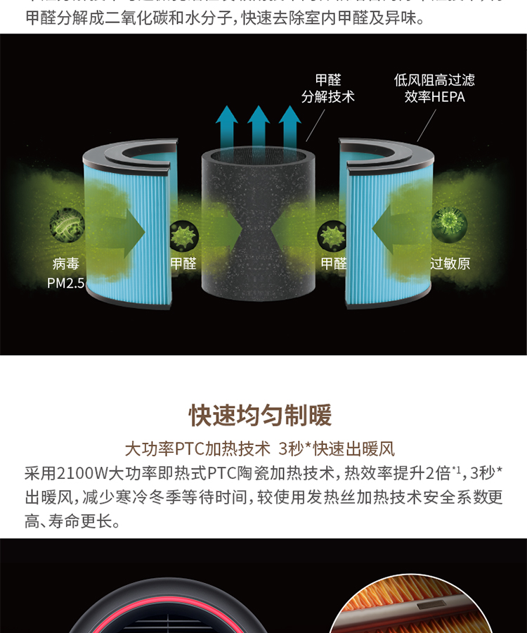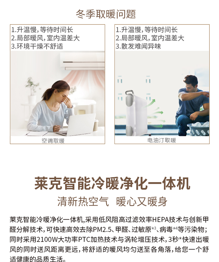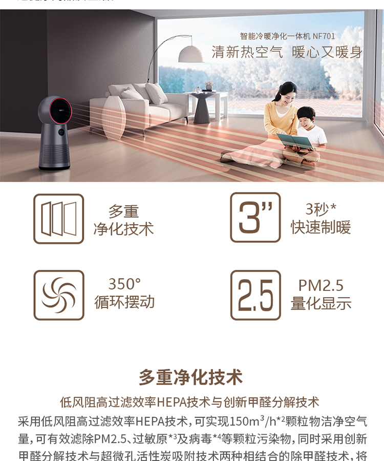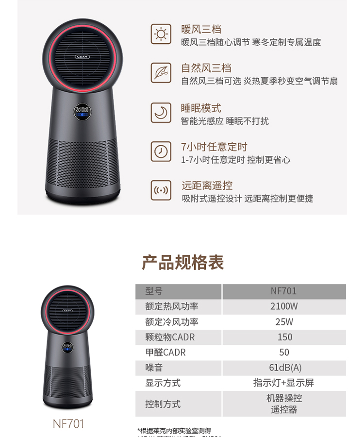 莱克(LEXY) 莱克智能暖风机家用节能办公室客厅空气净化凉风电暖取暖器 无叶电风扇 NF701
