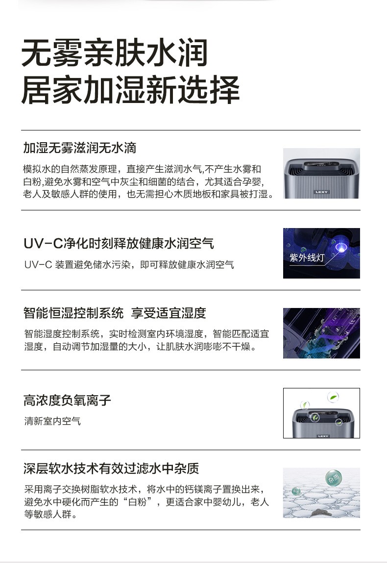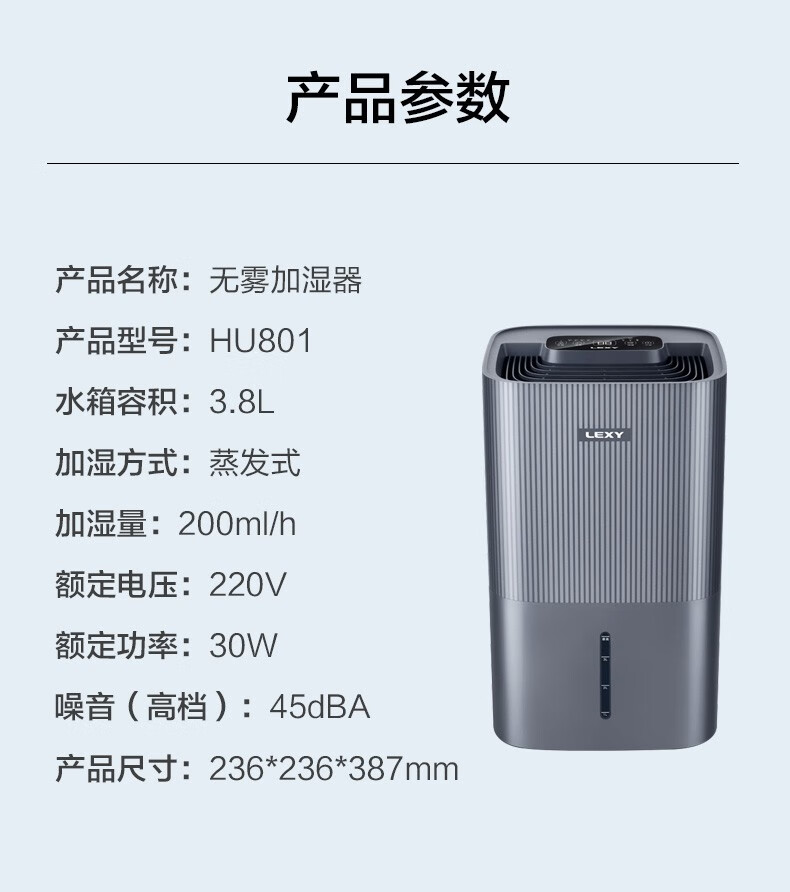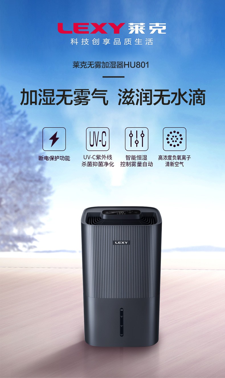 莱克(LEXY)无雾空气加湿器家用卧室婴儿大容量加湿负氧离子HU801