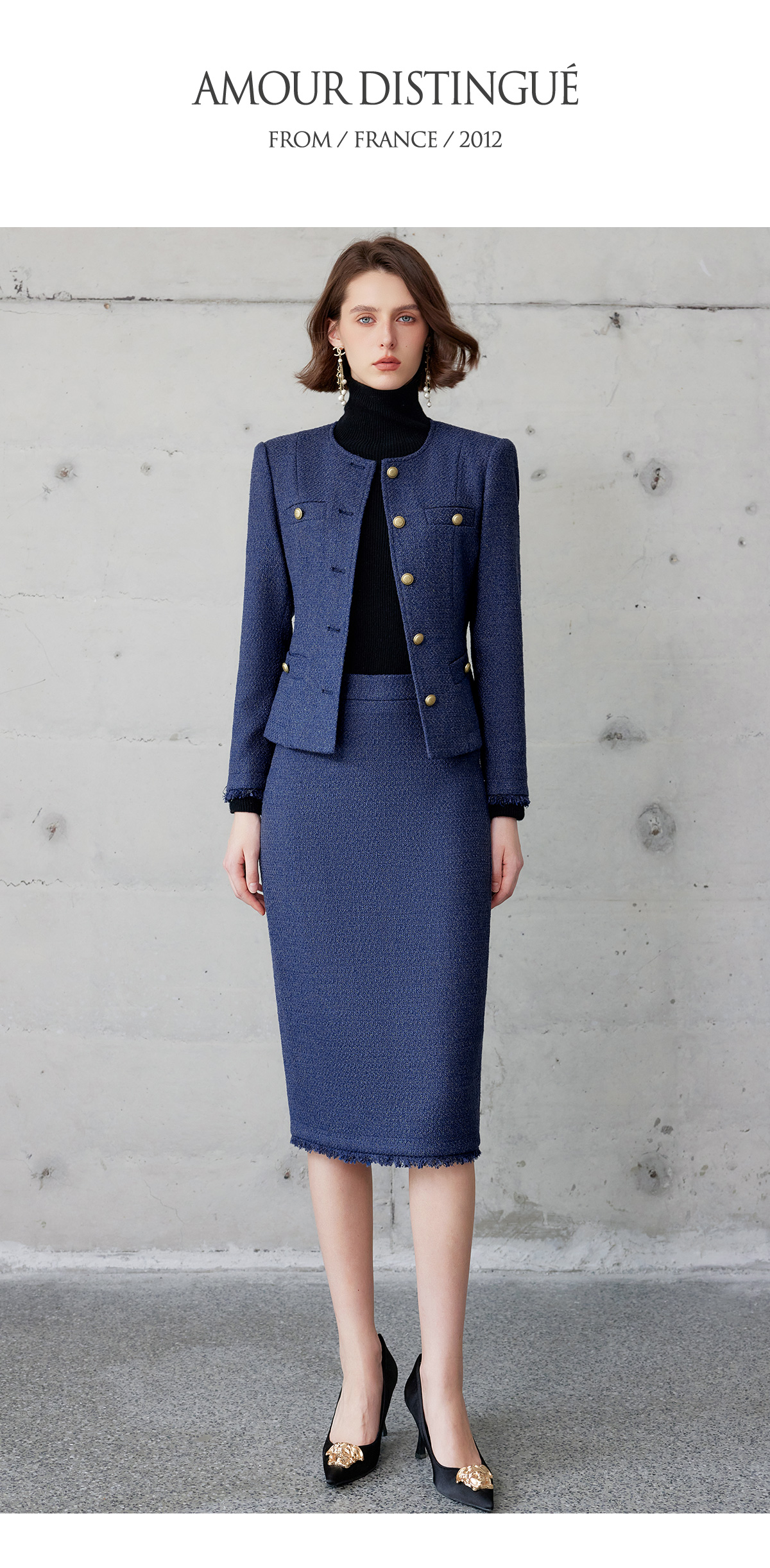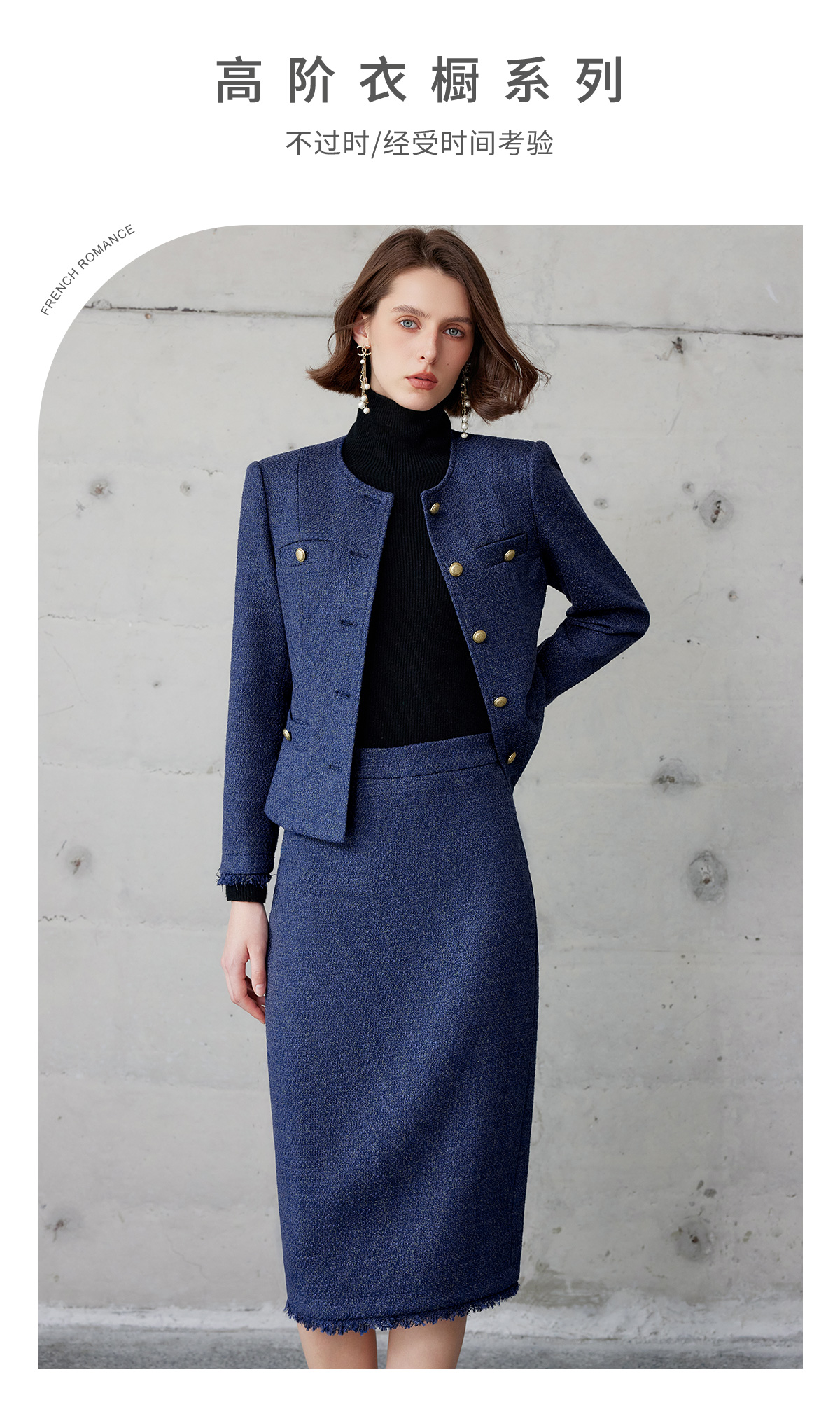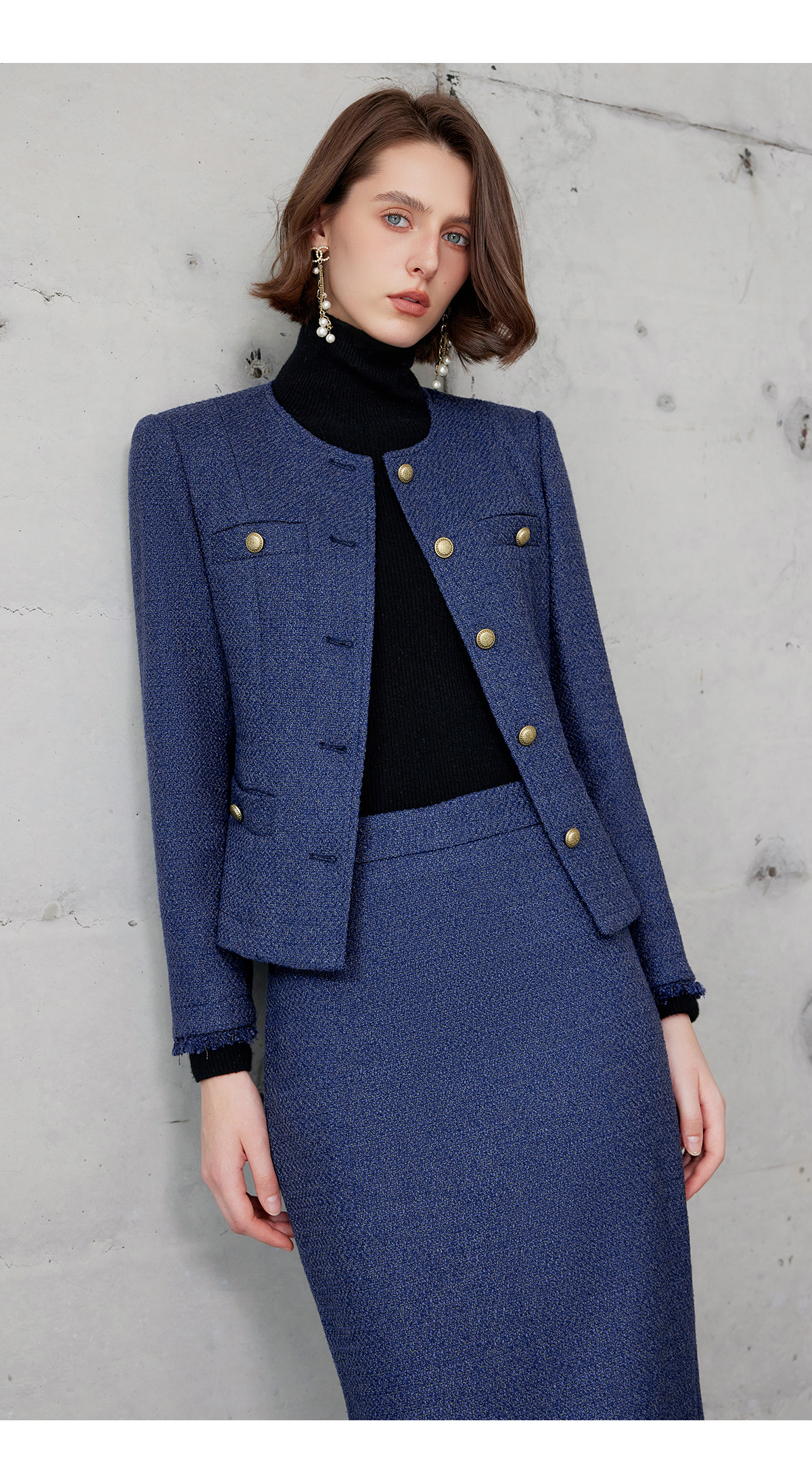 AD轻奢贵气金丝编织粗花呢套装2024冬季新款蓝色名媛小香风两件套