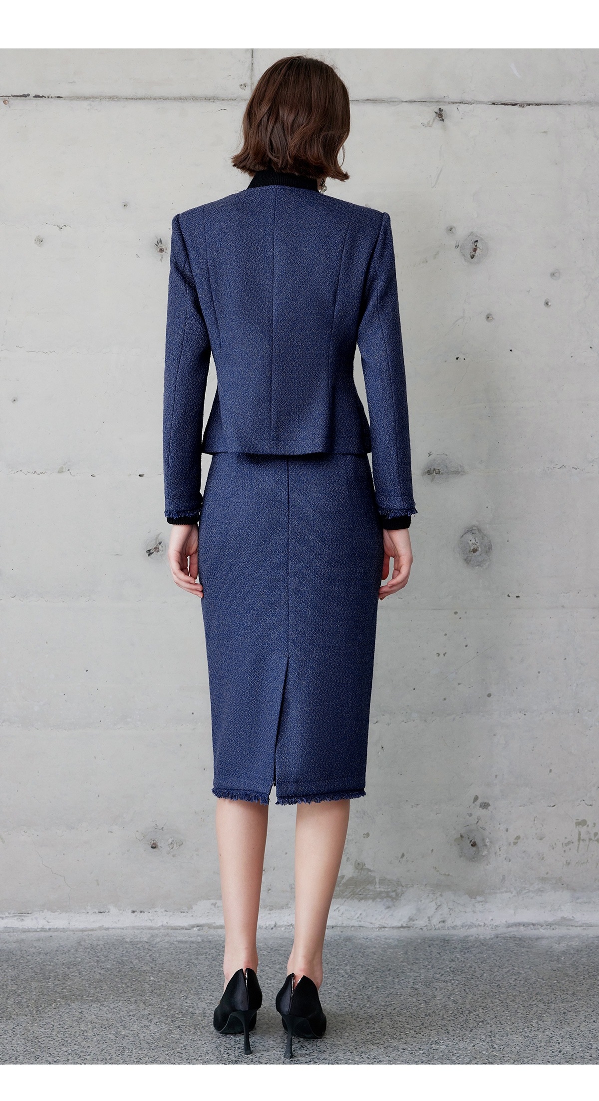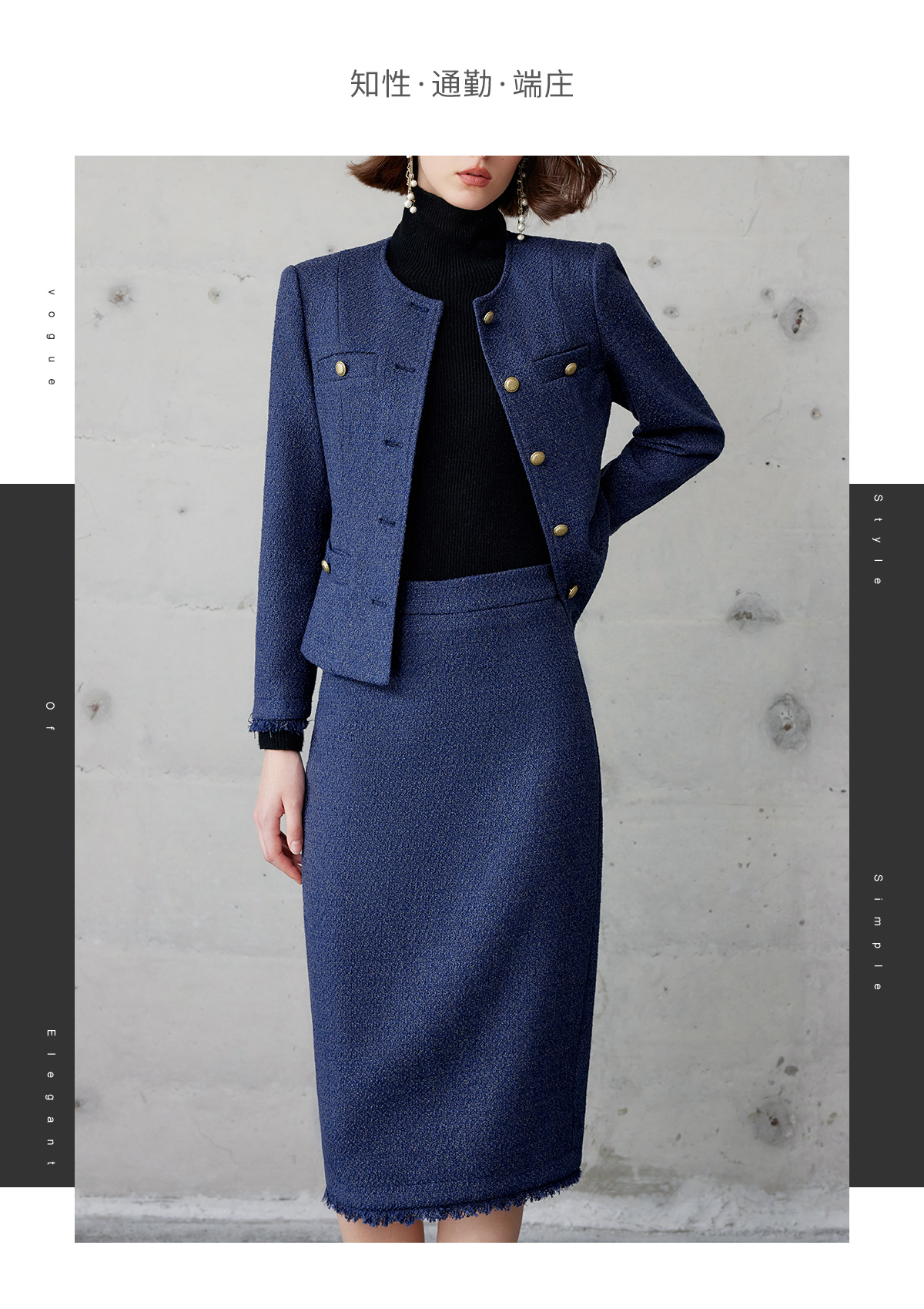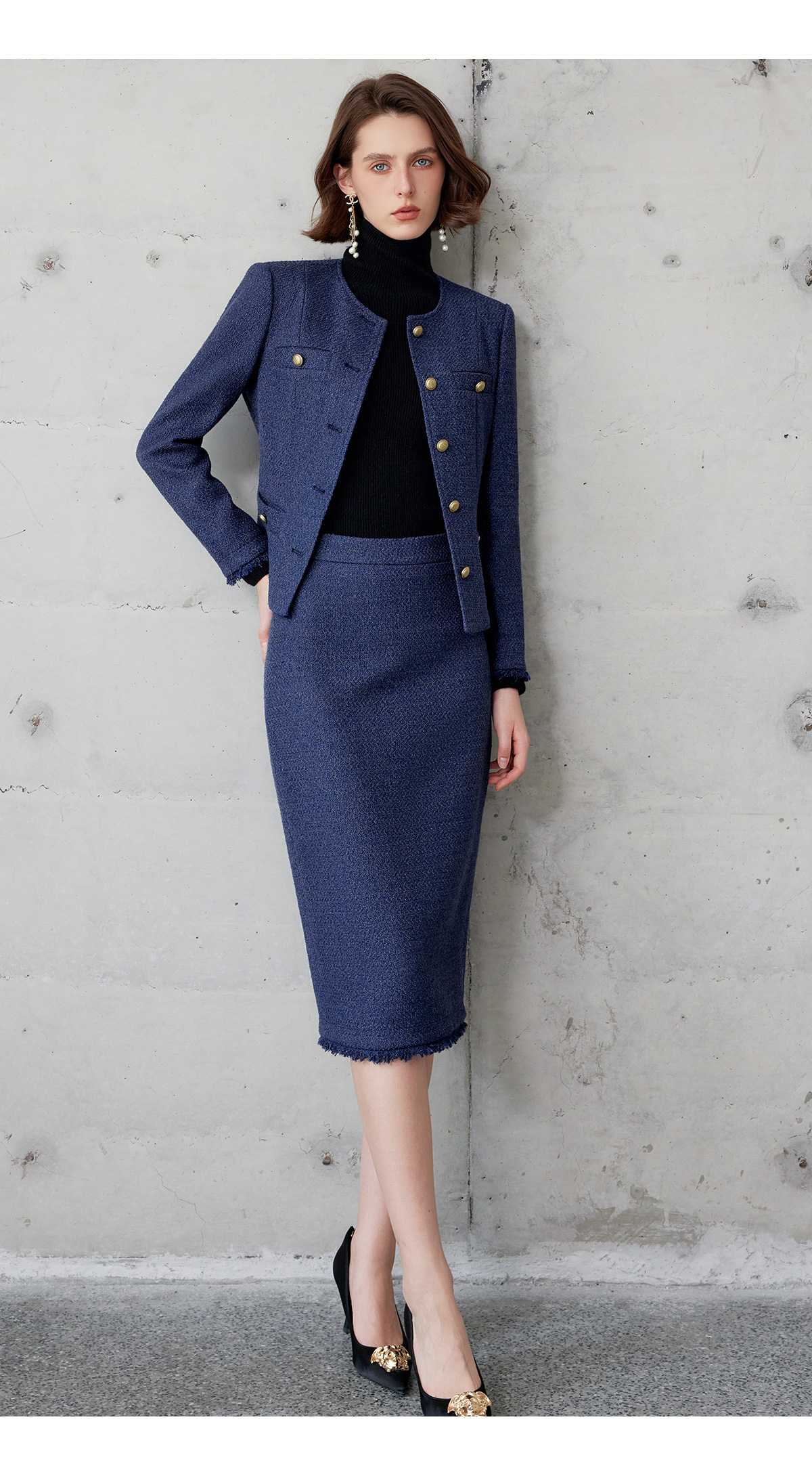AD轻奢贵气金丝编织粗花呢套装2024冬季新款蓝色名媛小香风两件套